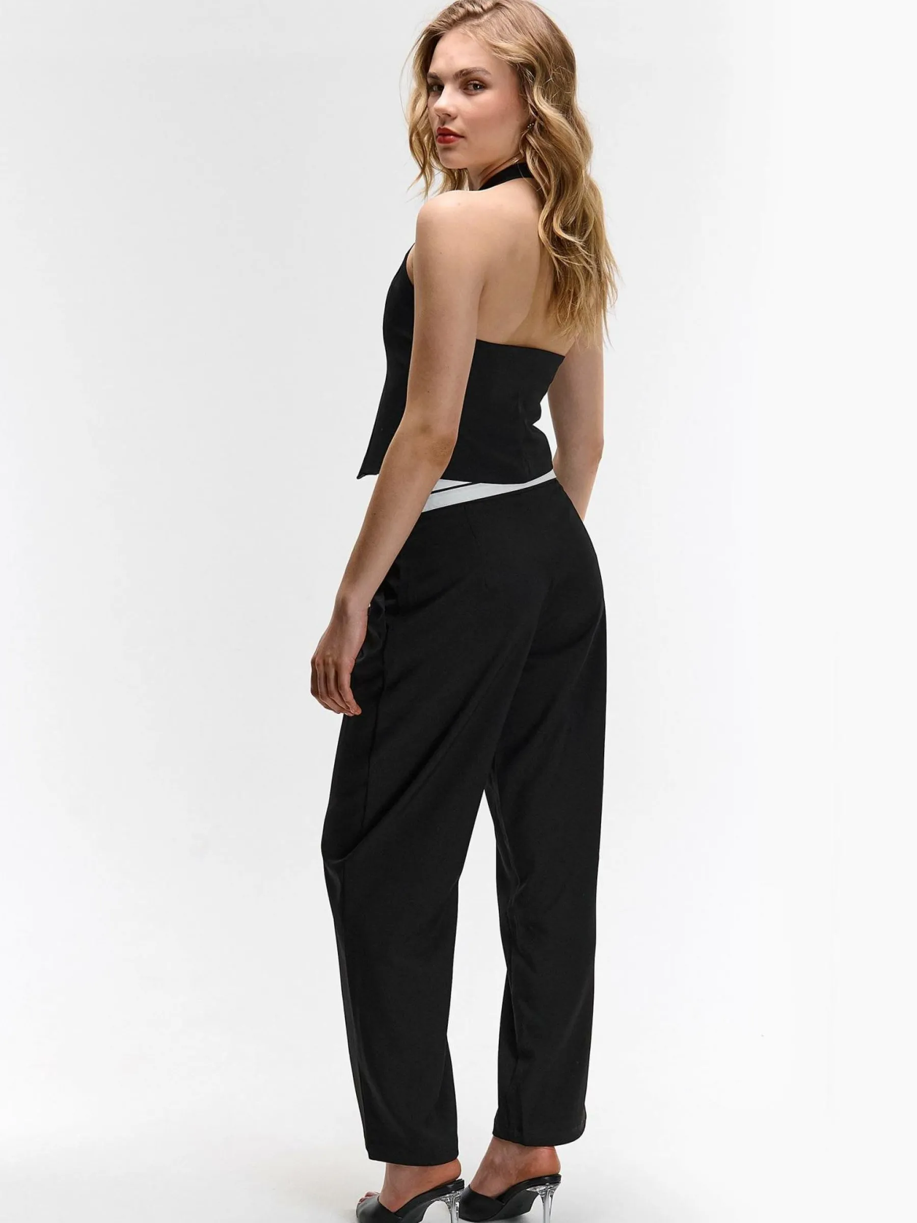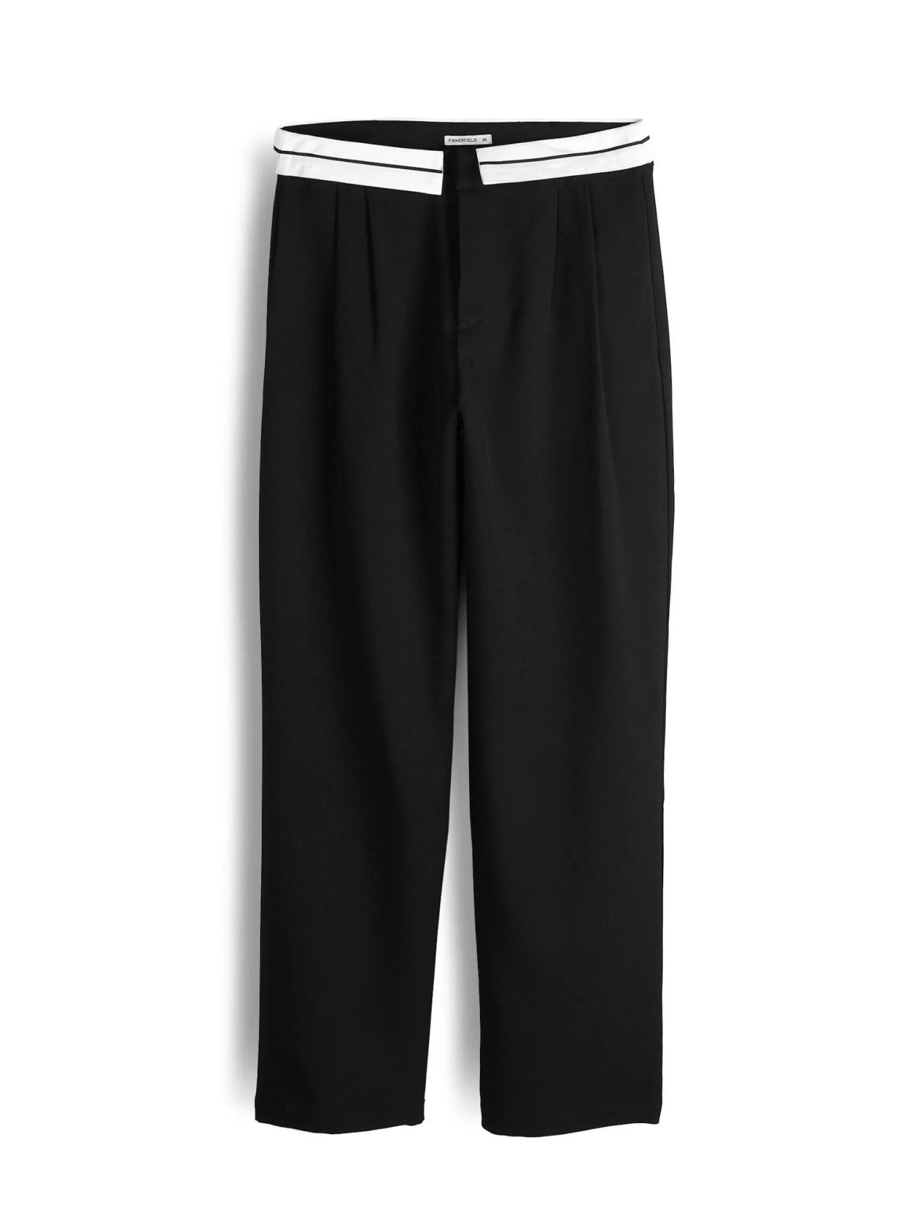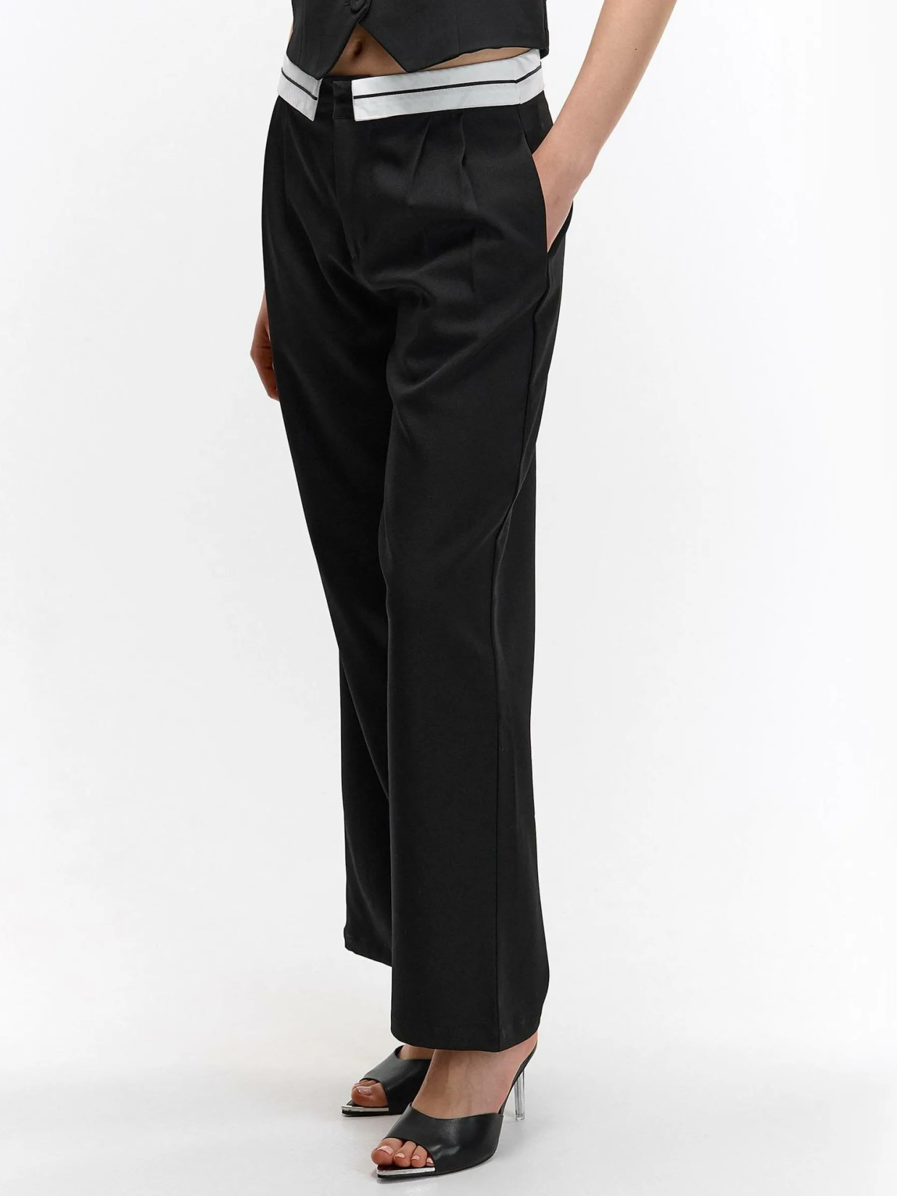 Kolor: czarnyKrój: straightTyp: spodnieDługość: dlugiePattern style: pojedynczy kolorDetal: na zamekMateriał: synte…