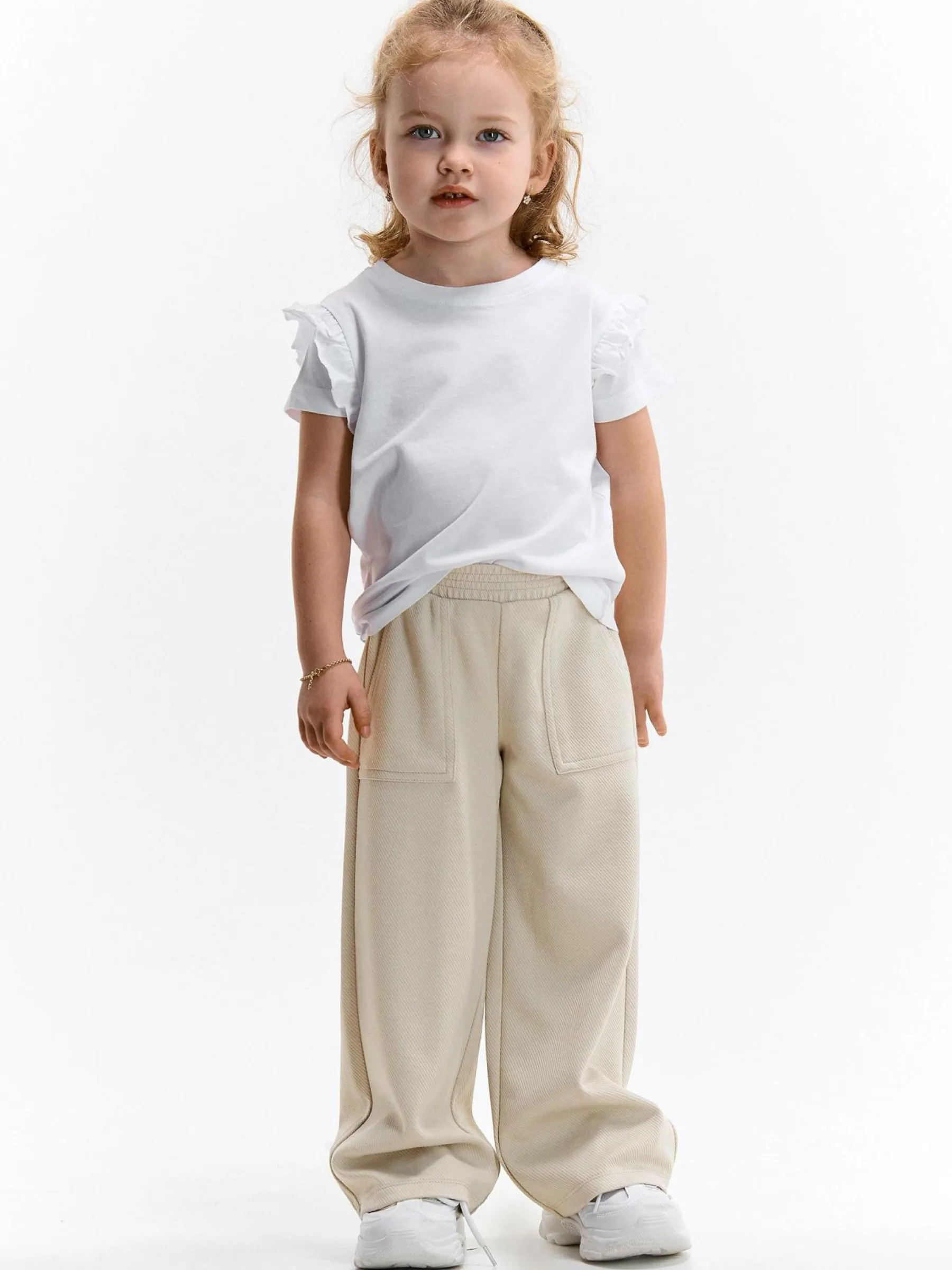 Kolor: beżowyKrój: szerokieTyp: spodnieDługość: dlugiePattern style: pojedynczy kolorDetal: z elastyczną opaską, …