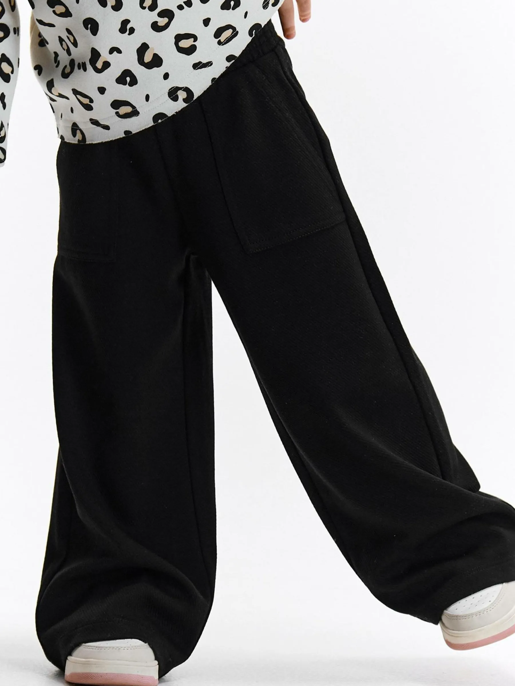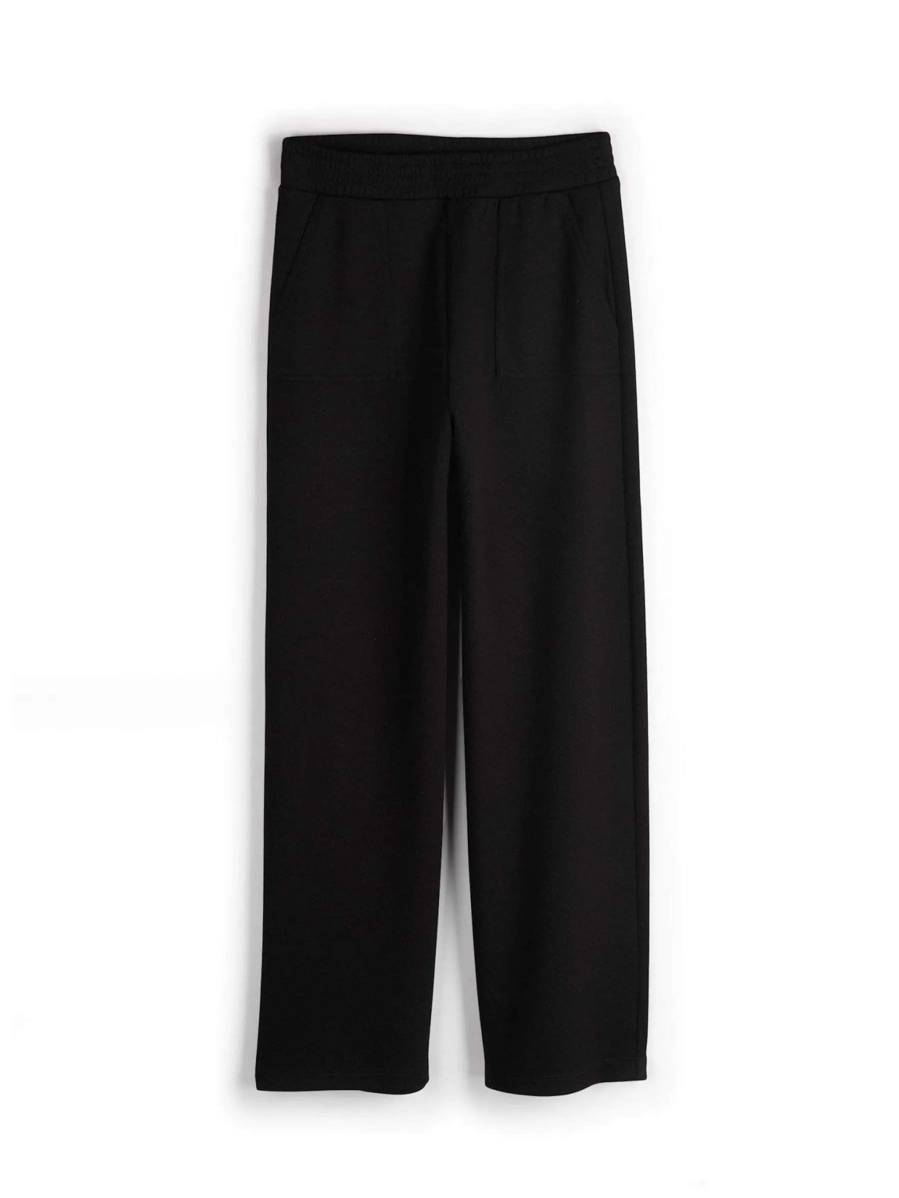 Kolor: czarnyKrój: szerokieTyp: spodnieDługość: dlugiePattern style: pojedynczy kolorDetal: z elastyczną opaską, z…