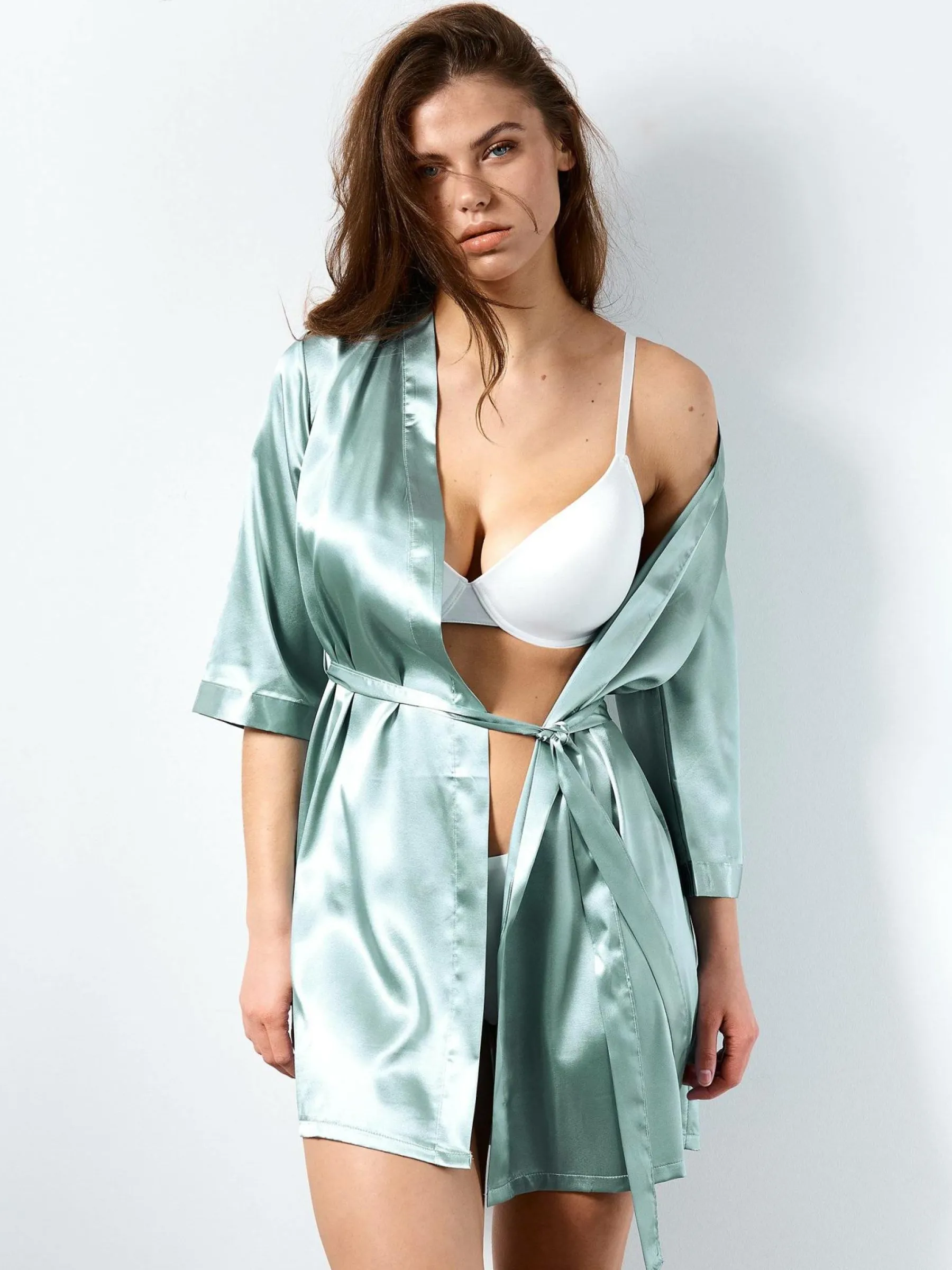 Kolor: zielonyKrój: podstawowyTyp: kąpielowy szlafrokRekaw: rękaw 3/4Długość: krótkiPattern style: pojedynczy kol…