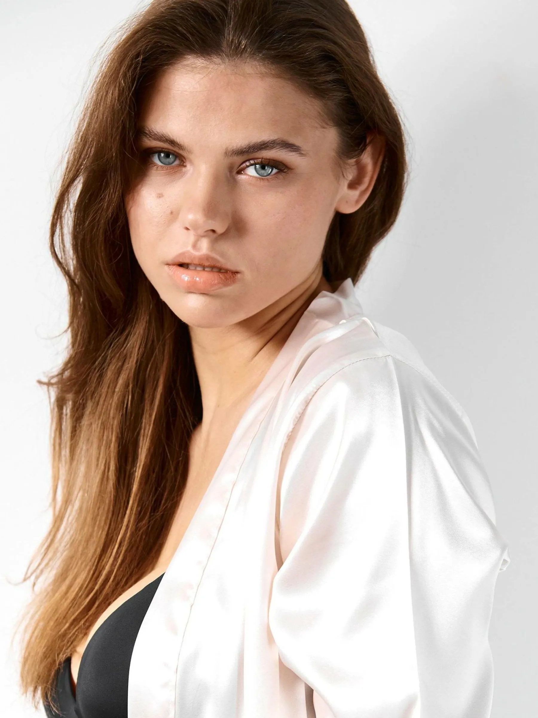 Kolor: beżowyKrój: podstawowyTyp: kąpielowy szlafrokRekaw: rękaw 3/4Długość: krótkiPattern style: pojedynczy kol…