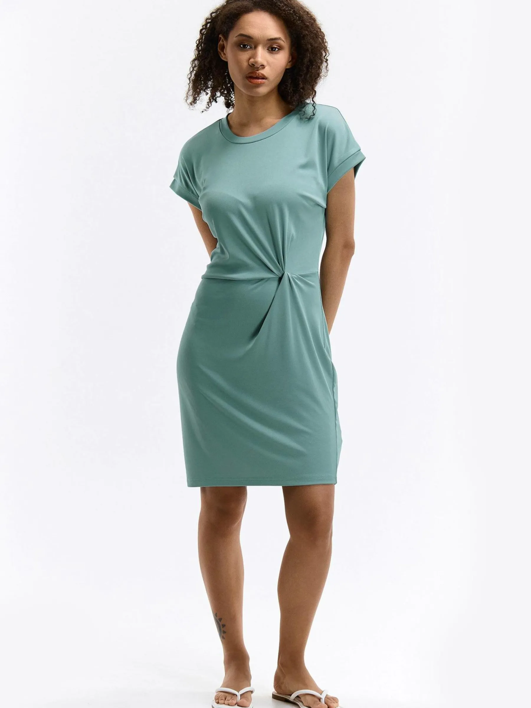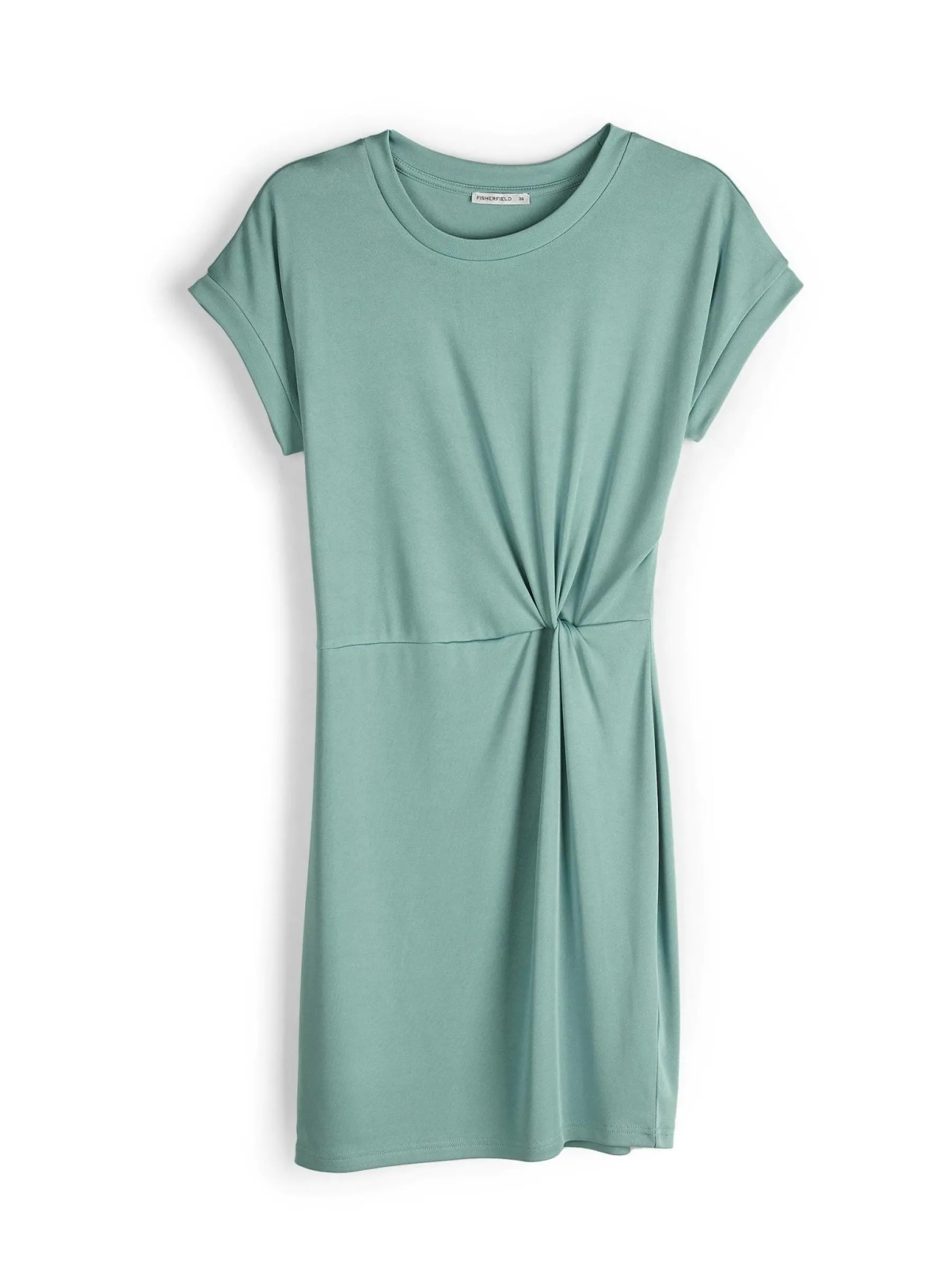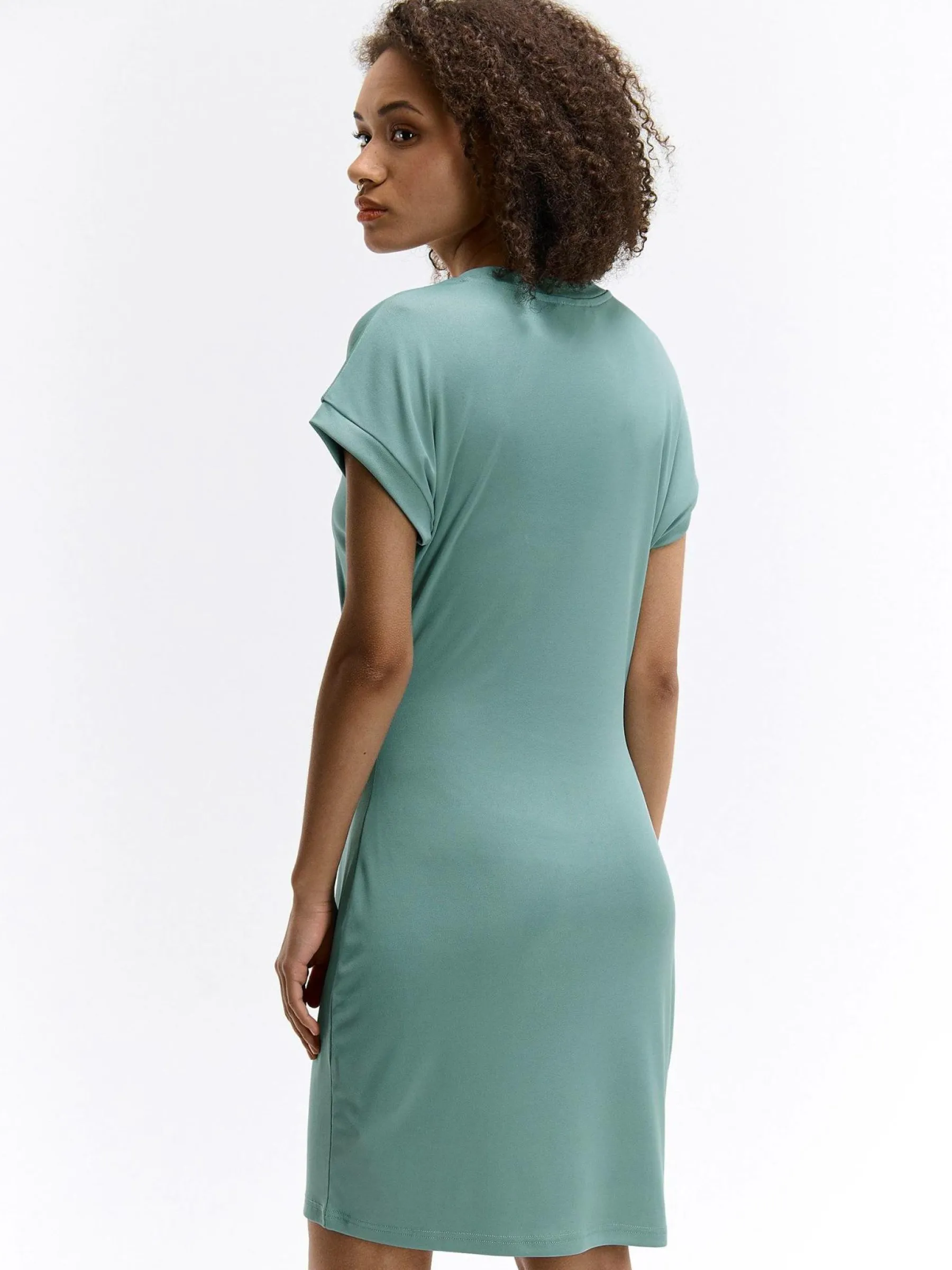 Kolor: zielonyTyp: sukienkaRekaw: krótki rękawDługość: miniPattern style: pojedynczy kolorDetal: nad głową, z fal…