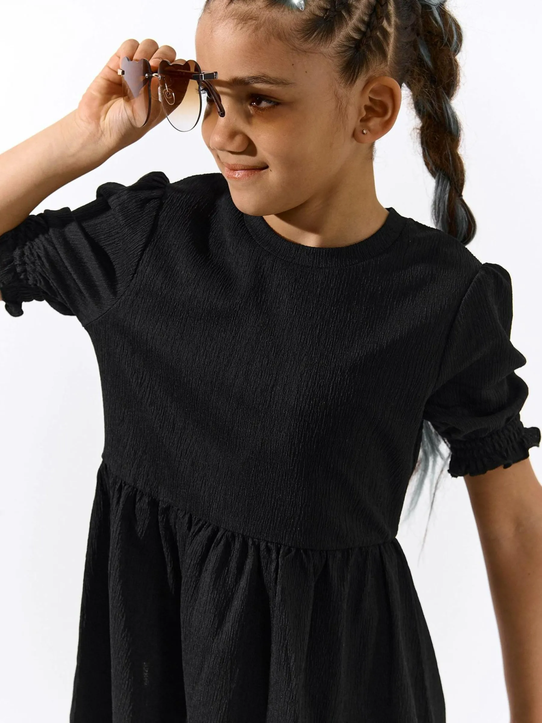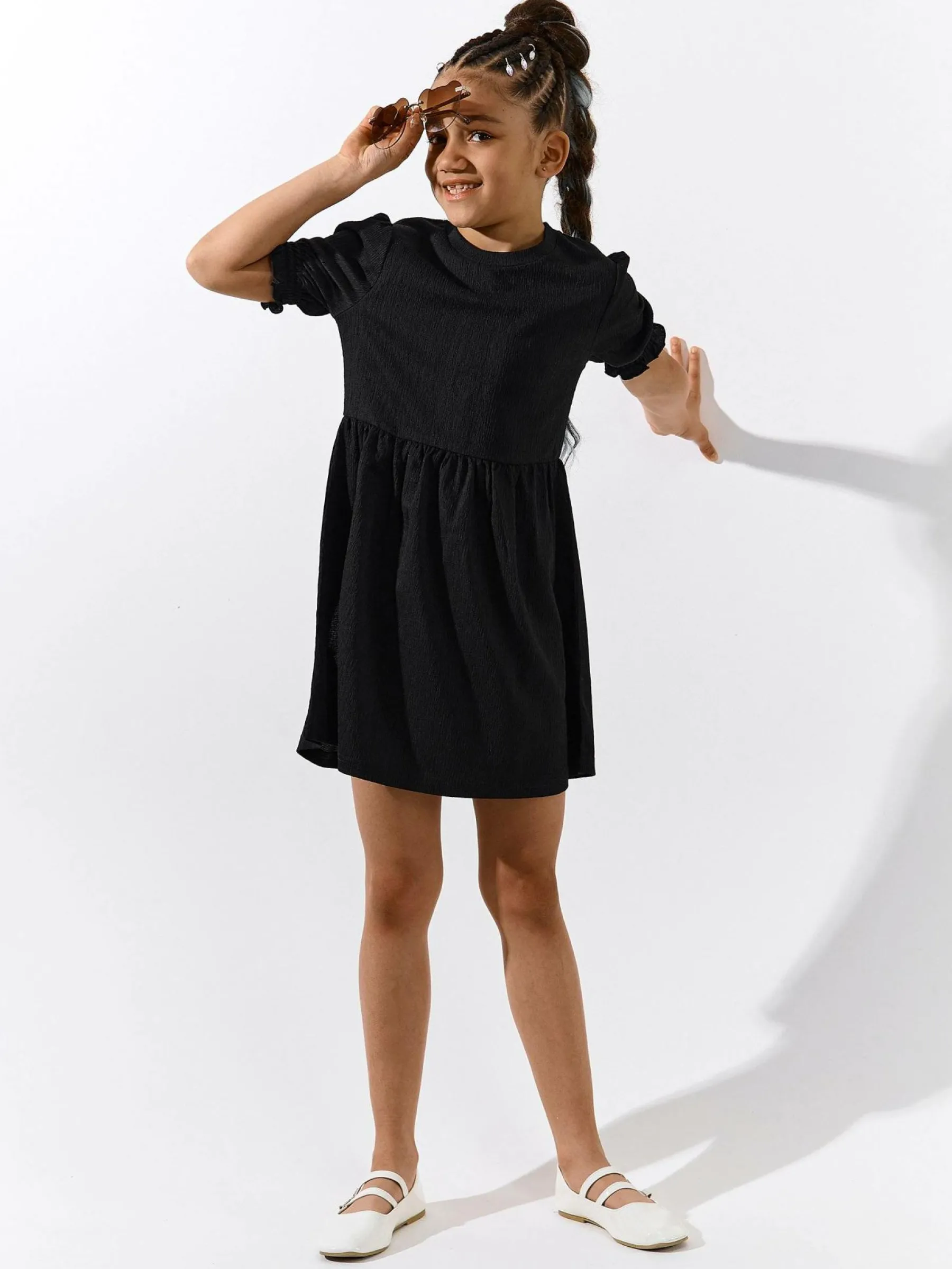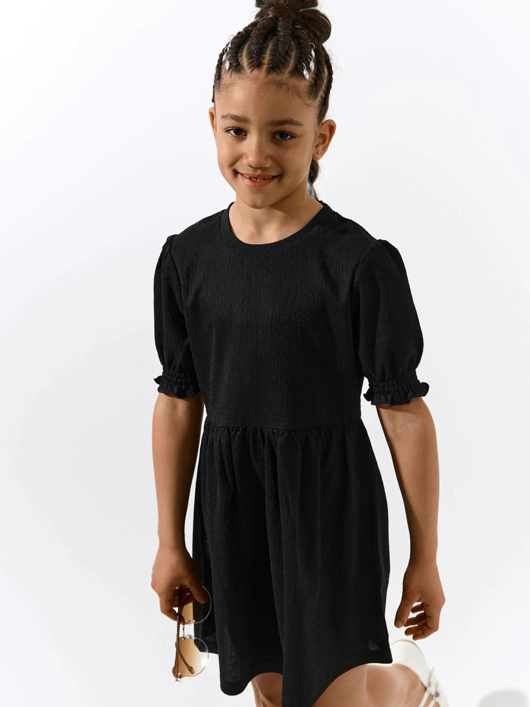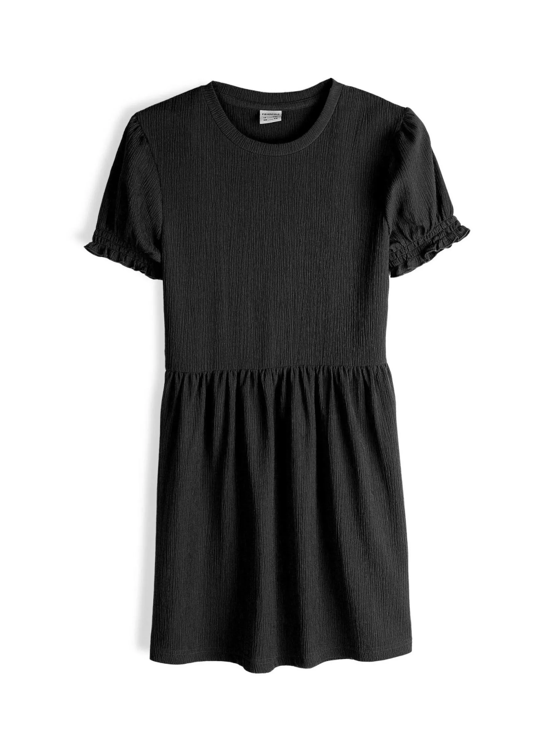 Kolor: czarnyKrój: asyTyp: sukienkaRekaw: krótki rękawDługość: miniPattern style: pojedynczy kolor, strukturowaneD…