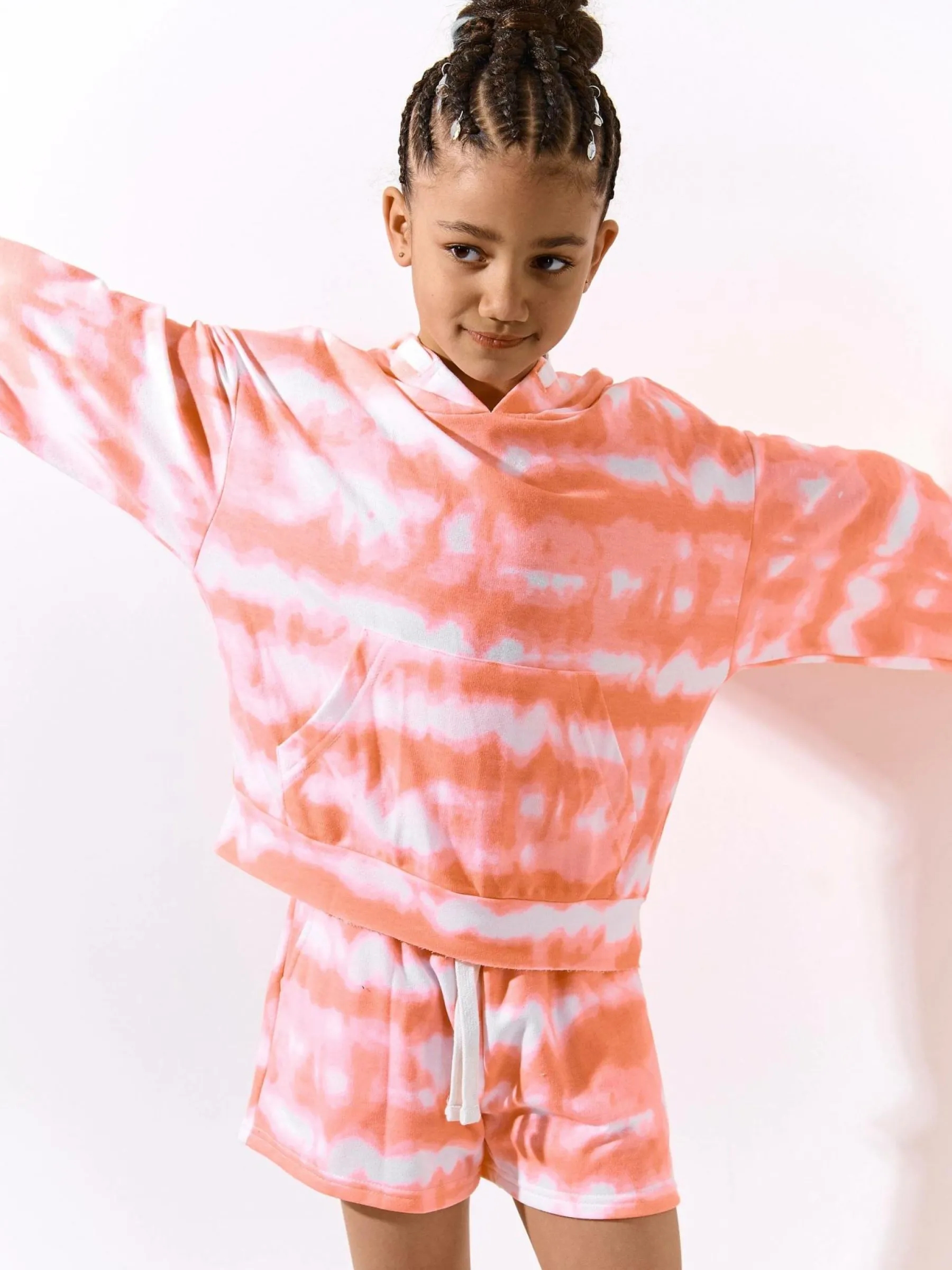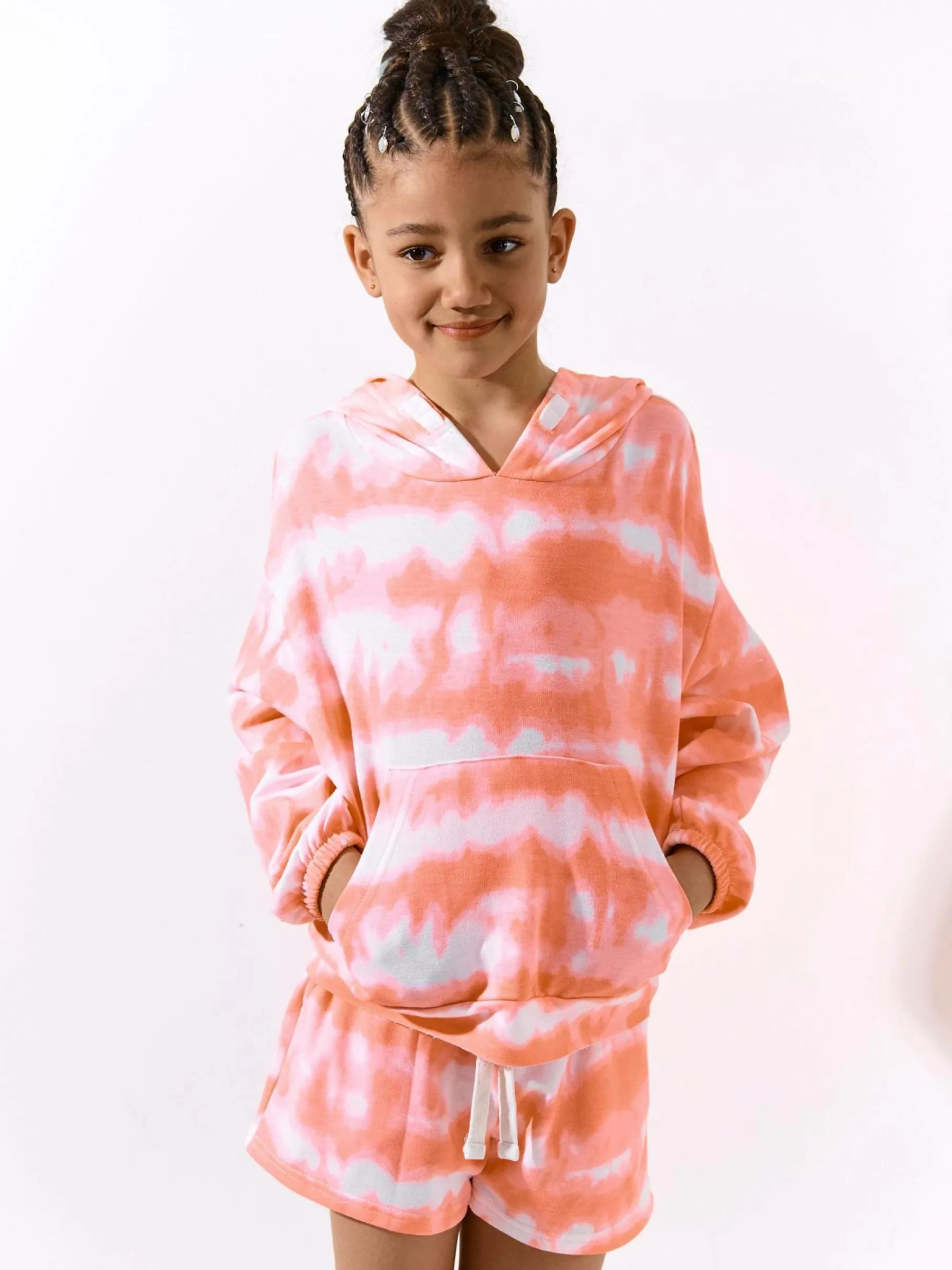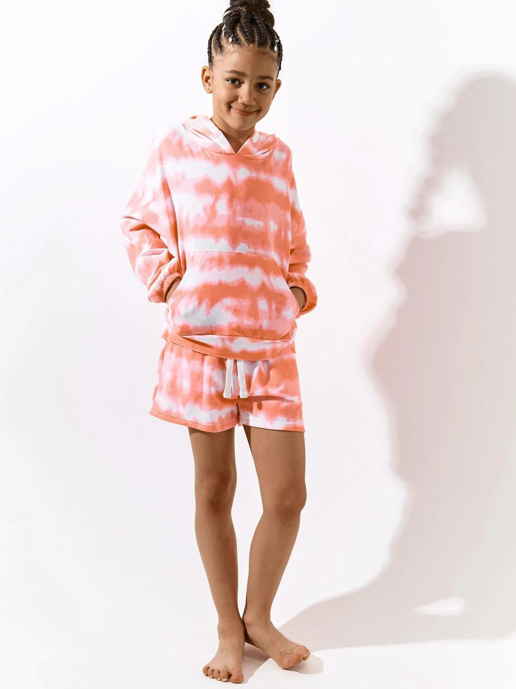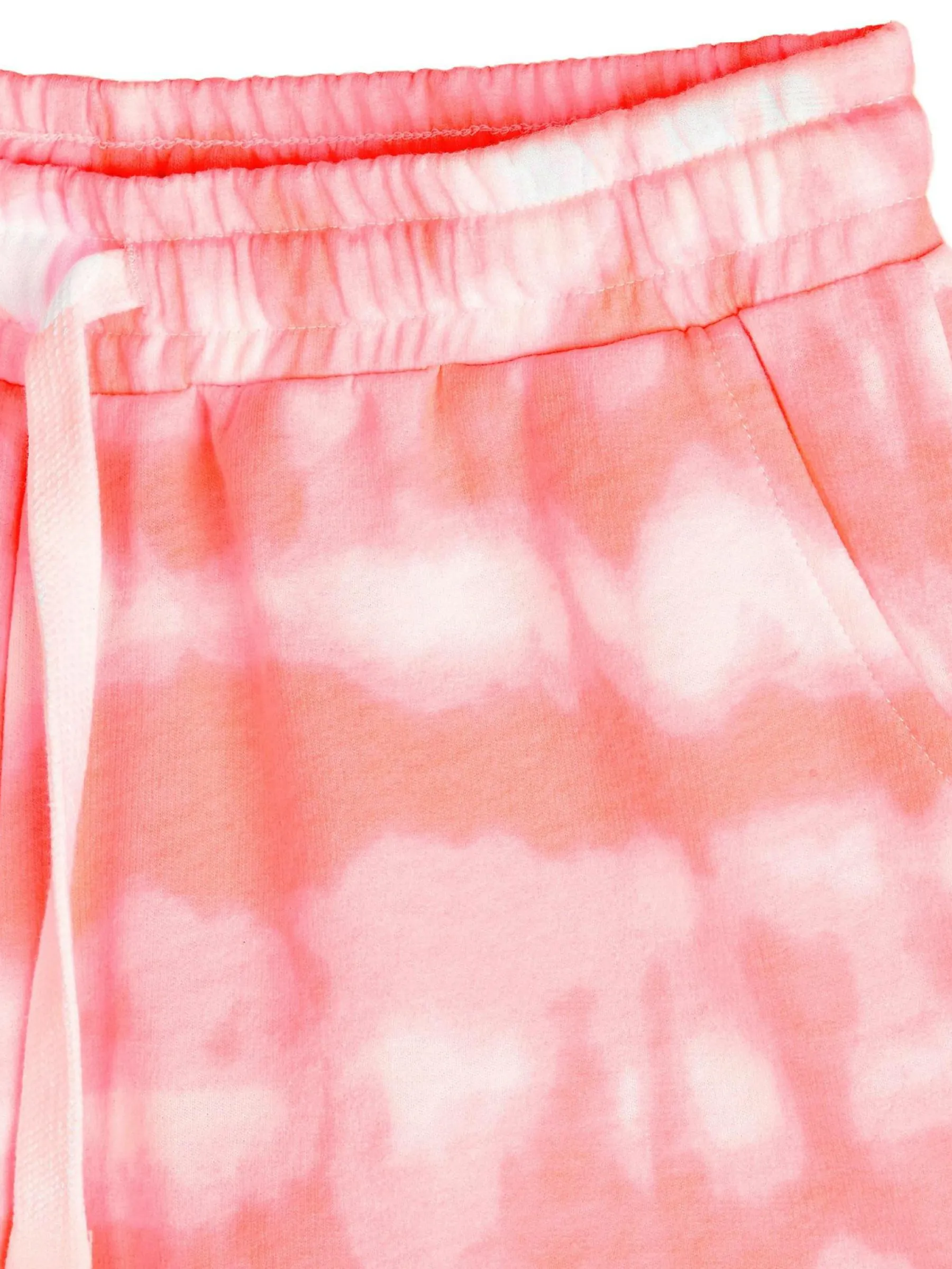 Kolor: różowyKrój: straightTyp: spodenkiDługość: krótkiPattern style: tie dyeDetal: ze sznurowaniemMateriał: mie…