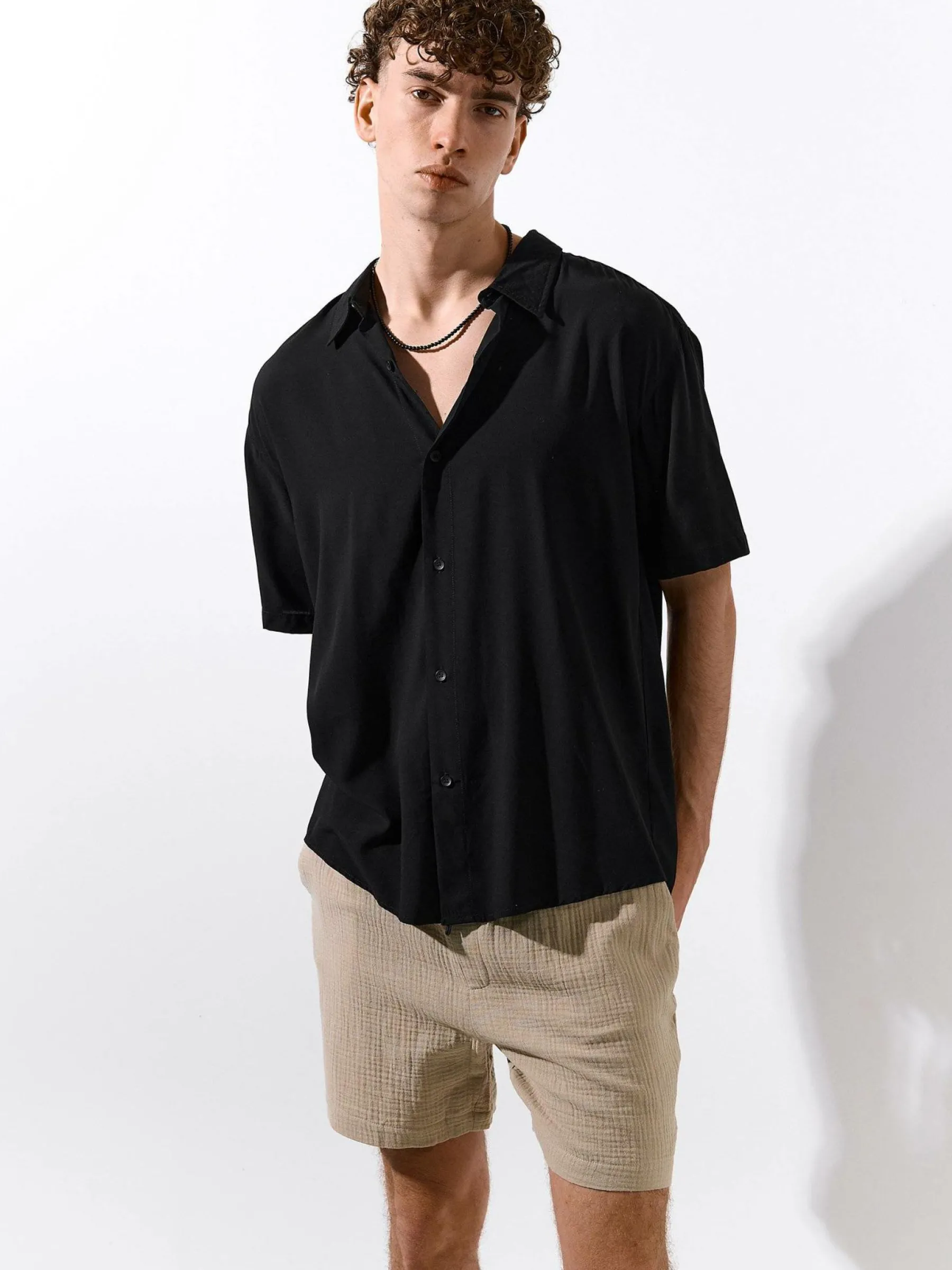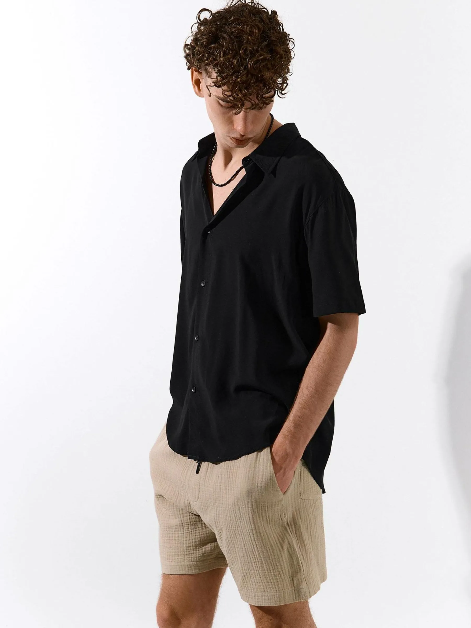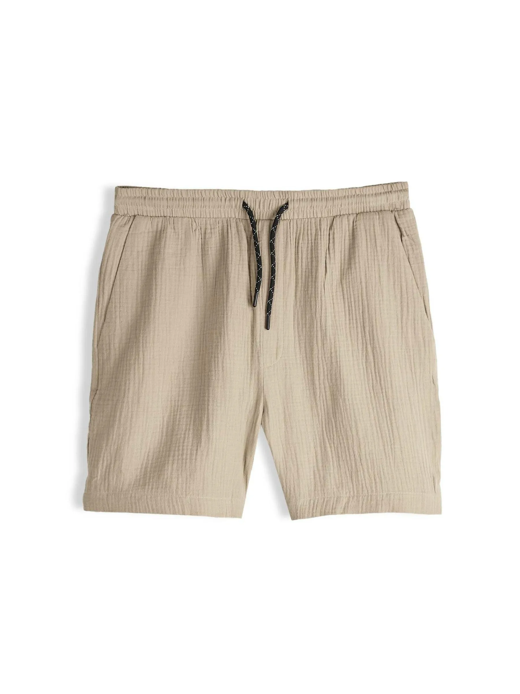 Kolor: beżowyKrój: regularTyp: spodenkiDługość: krótkiPattern style: pojedynczy kolor, strukturowaneDetal: ze sznu…