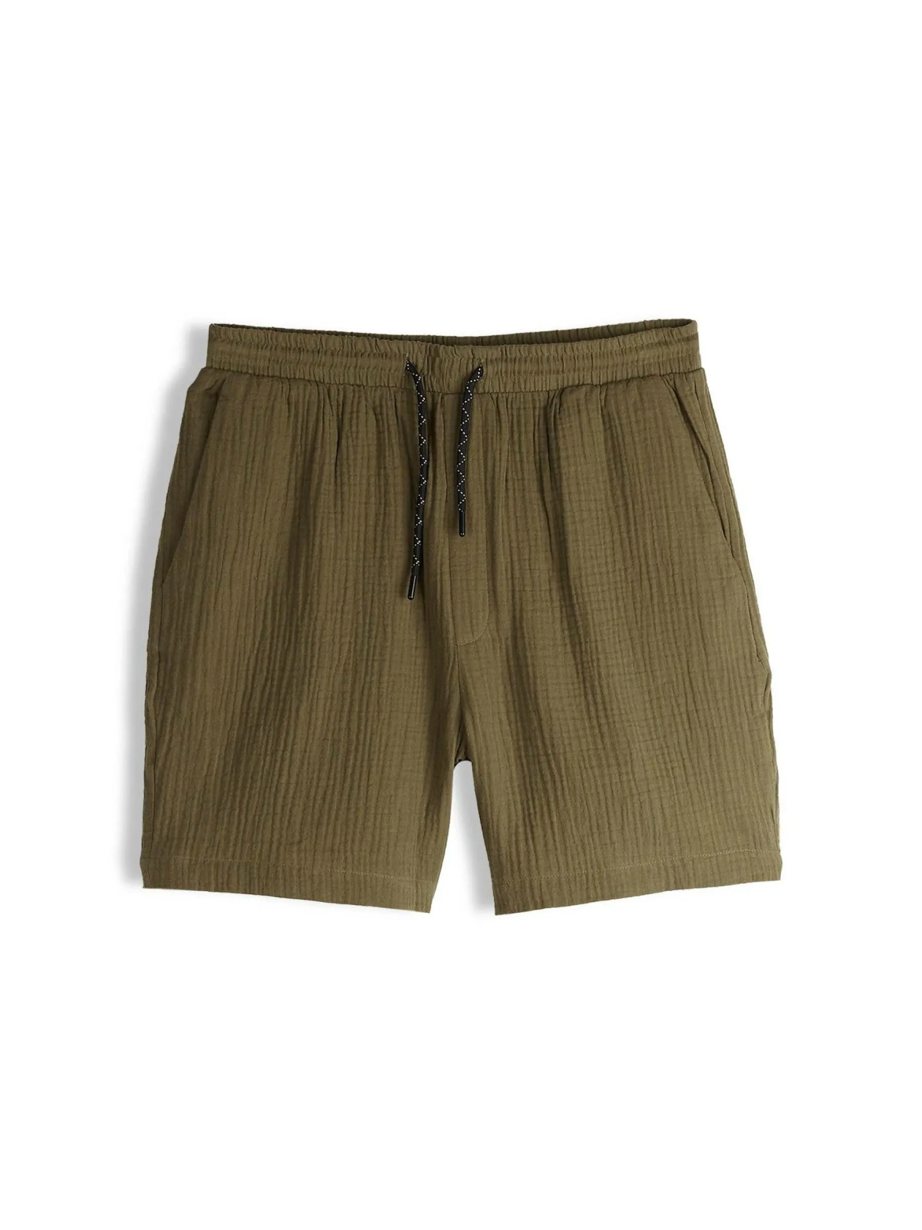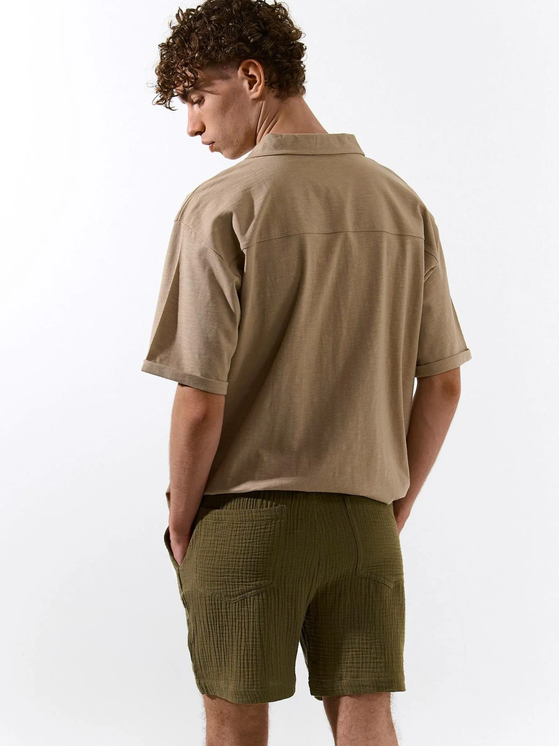 Kolor: khaki, zielonyKrój: regularTyp: spodenkiDługość: krótkiPattern style: pojedynczy kolor, strukturowaneDetal: …
