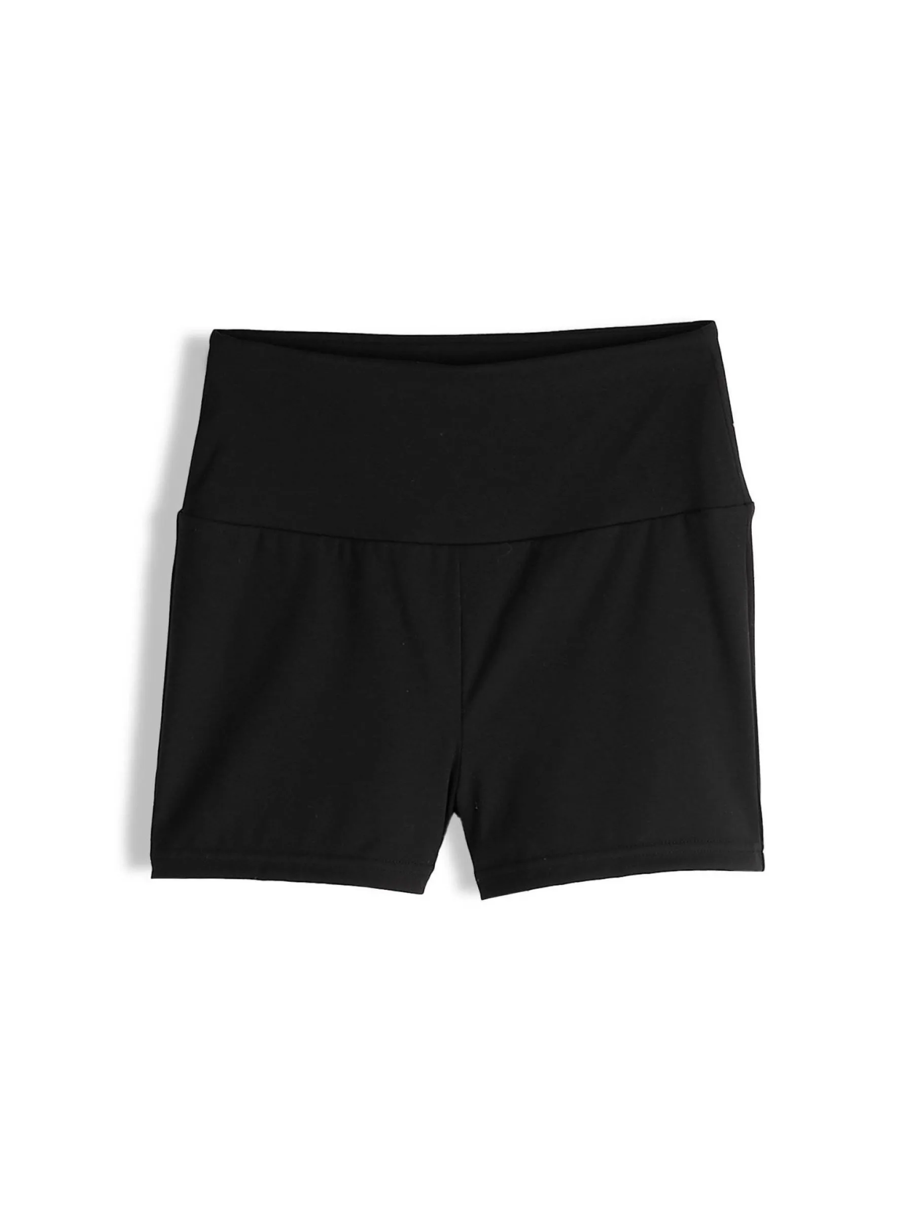 Kolor: czarnyKrój: bikerTyp: spodenkiDługość: krótkiPattern style: pojedynczy kolorDetal: z elastyczną opaskąMate…