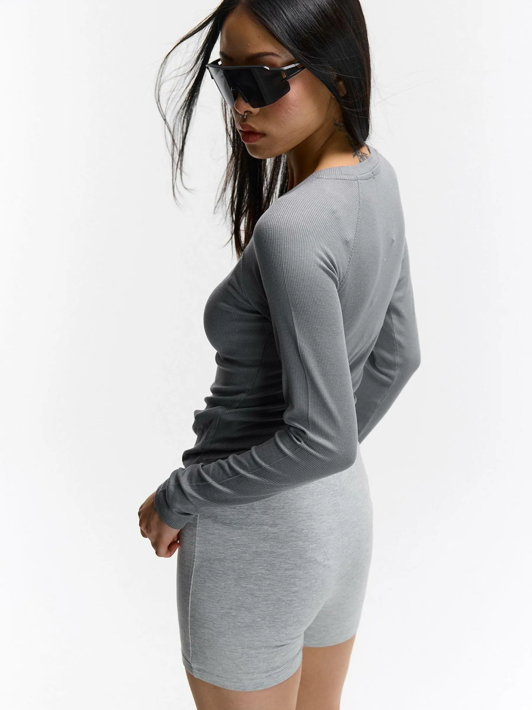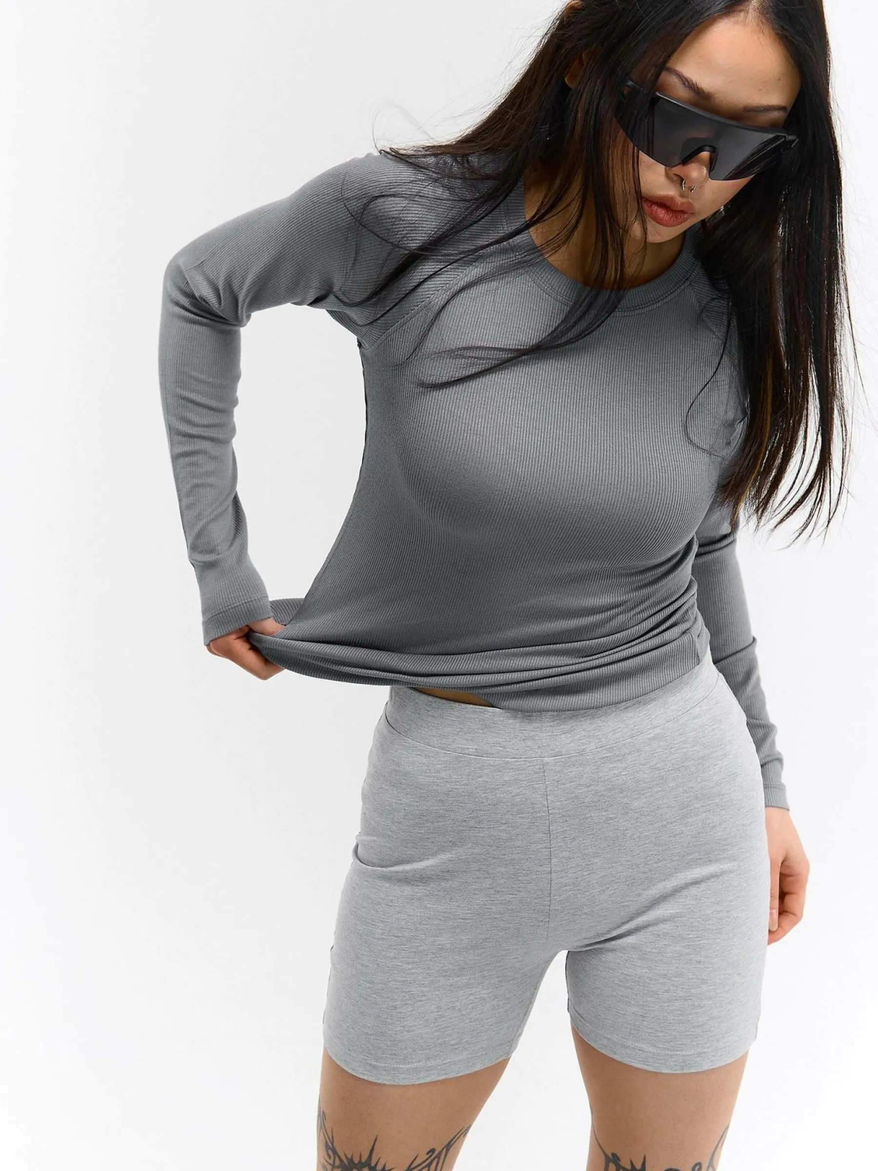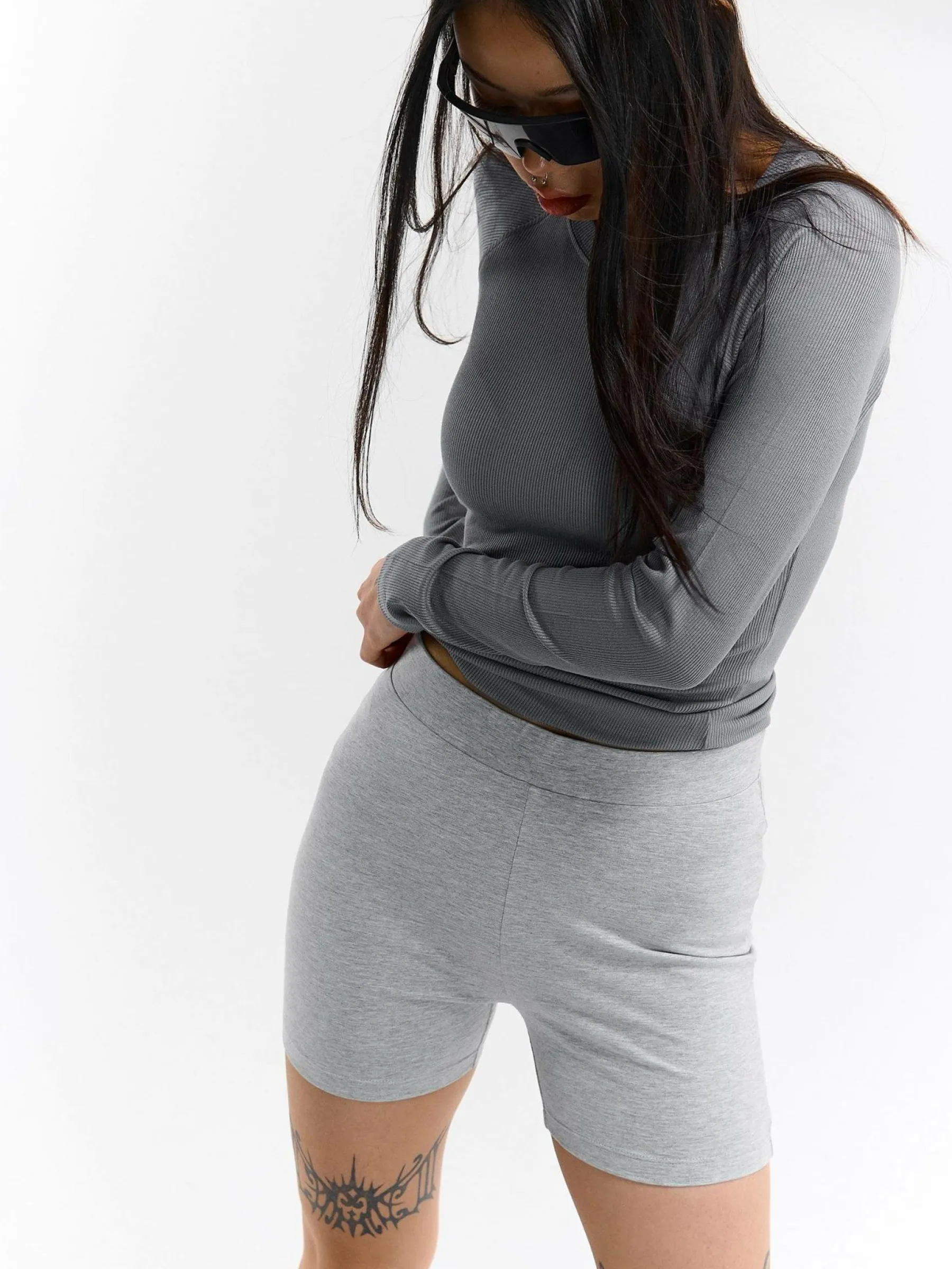 Kolor: szaryKrój: bikerTyp: spodenkiDługość: krótkiPattern style: pojedynczy kolorDetal: z elastyczną opaskąMater…