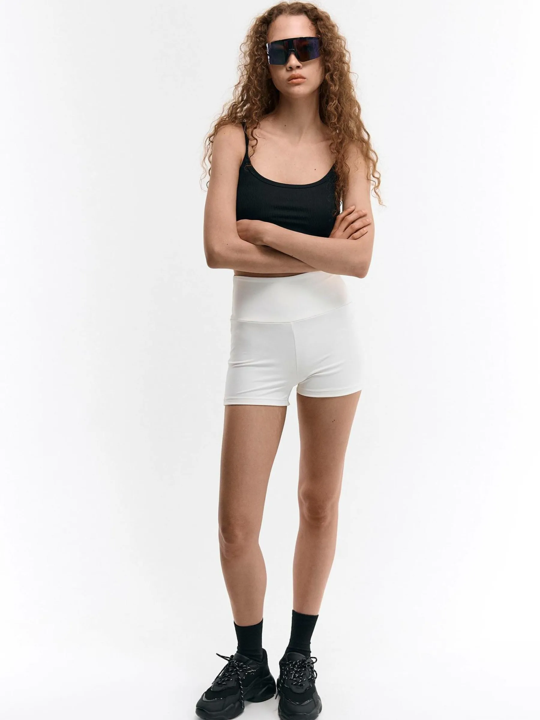 Kolor: beżowyKrój: bikerTyp: spodenkiDługość: krótkiPattern style: pojedynczy kolorDetal: z elastyczną opaskąMat…
