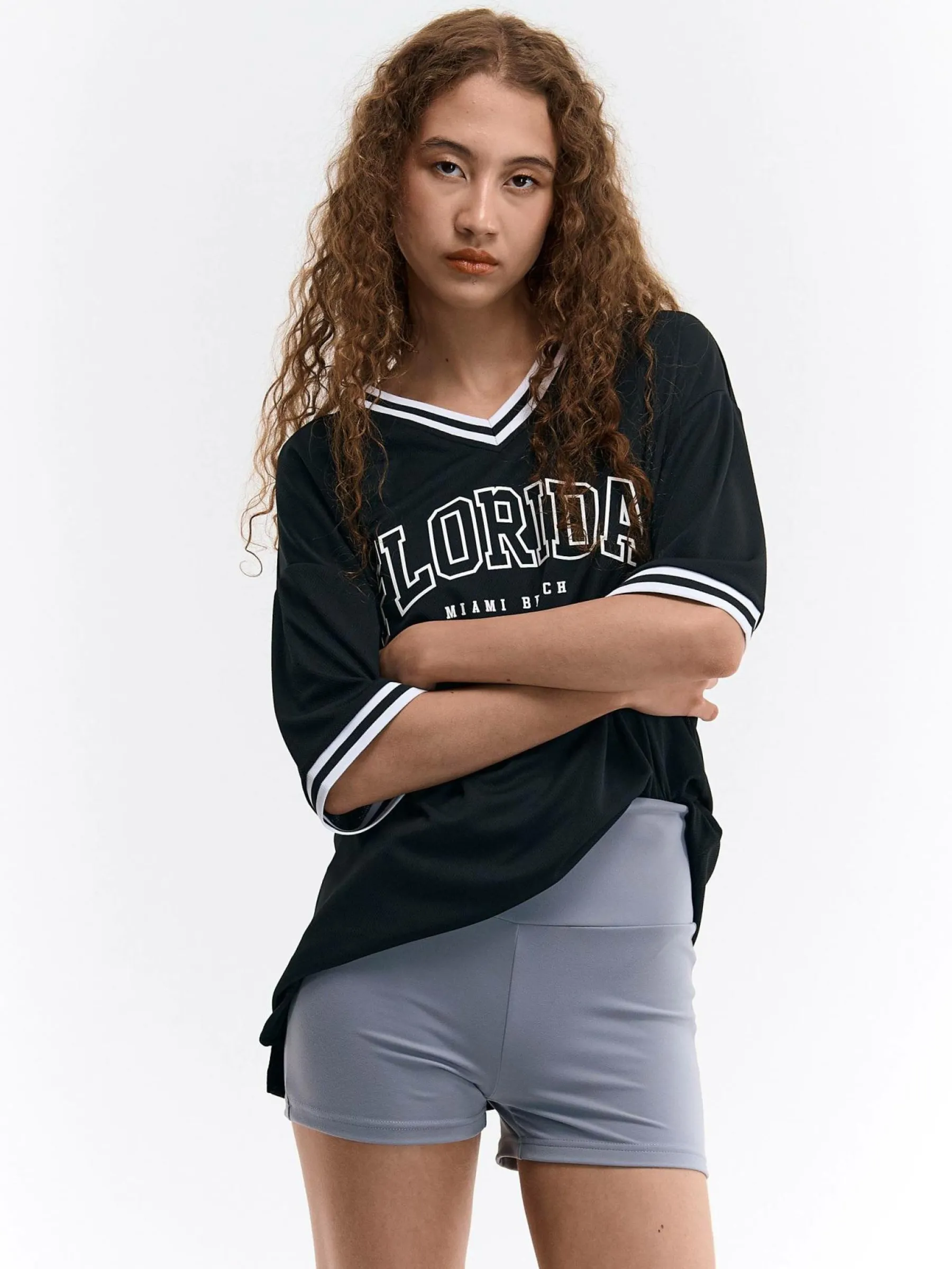 Kolor: szaryKrój: bikerTyp: spodenkiDługość: krótkiPattern style: pojedynczy kolorDetal: z elastyczną opaskąMater…