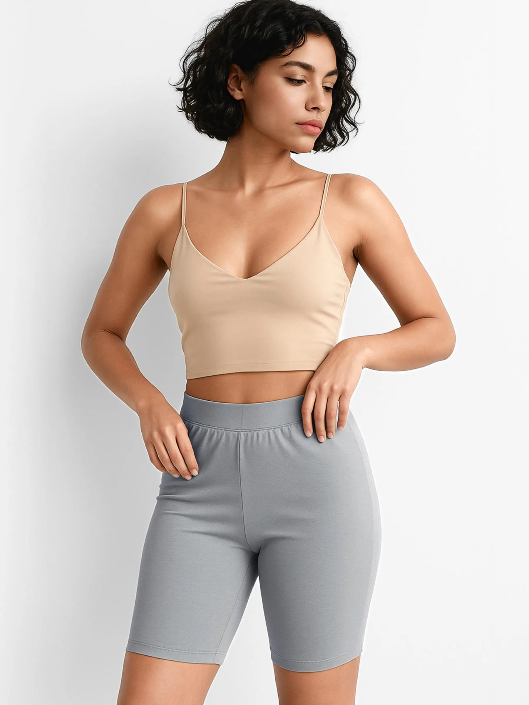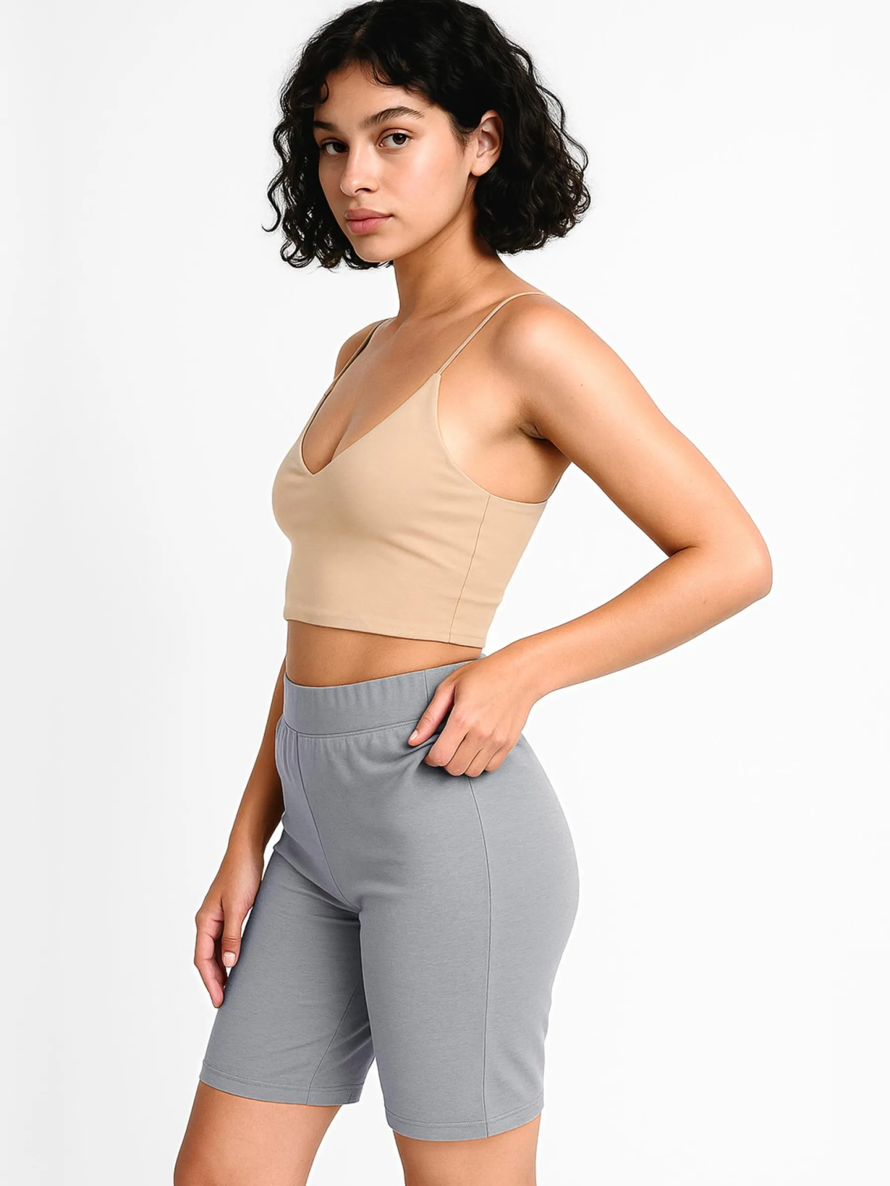 Kolor: szaryKrój: bikerTyp: spodenkiDługość: krótkiPattern style: pojedynczy kolorDetal: z elastyczną opaskąMater…
