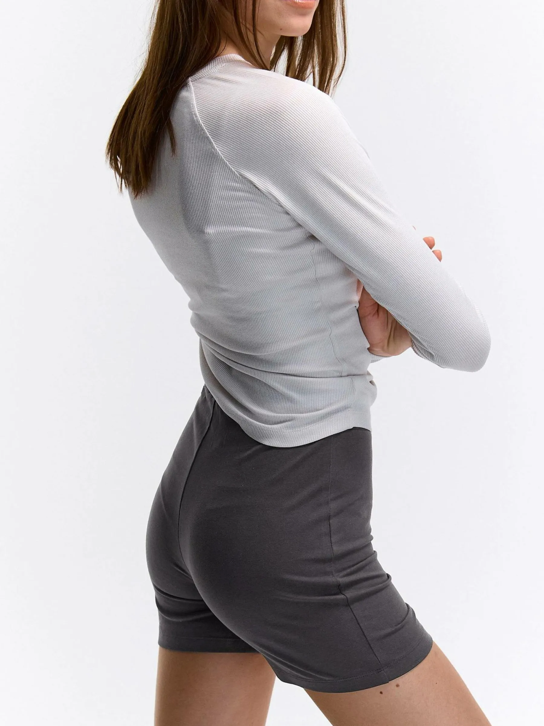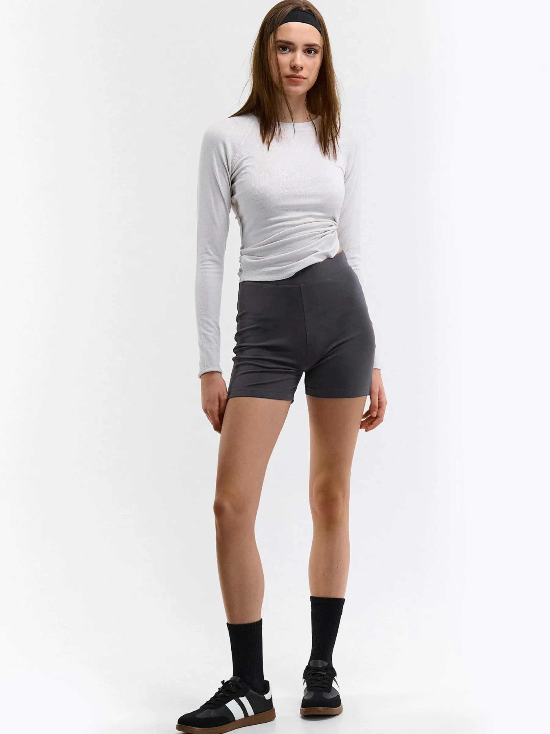 Kolor: szaryKrój: bikerTyp: spodenkiDługość: krótkiPattern style: pojedynczy kolorDetal: z elastyczną opaskąMater…