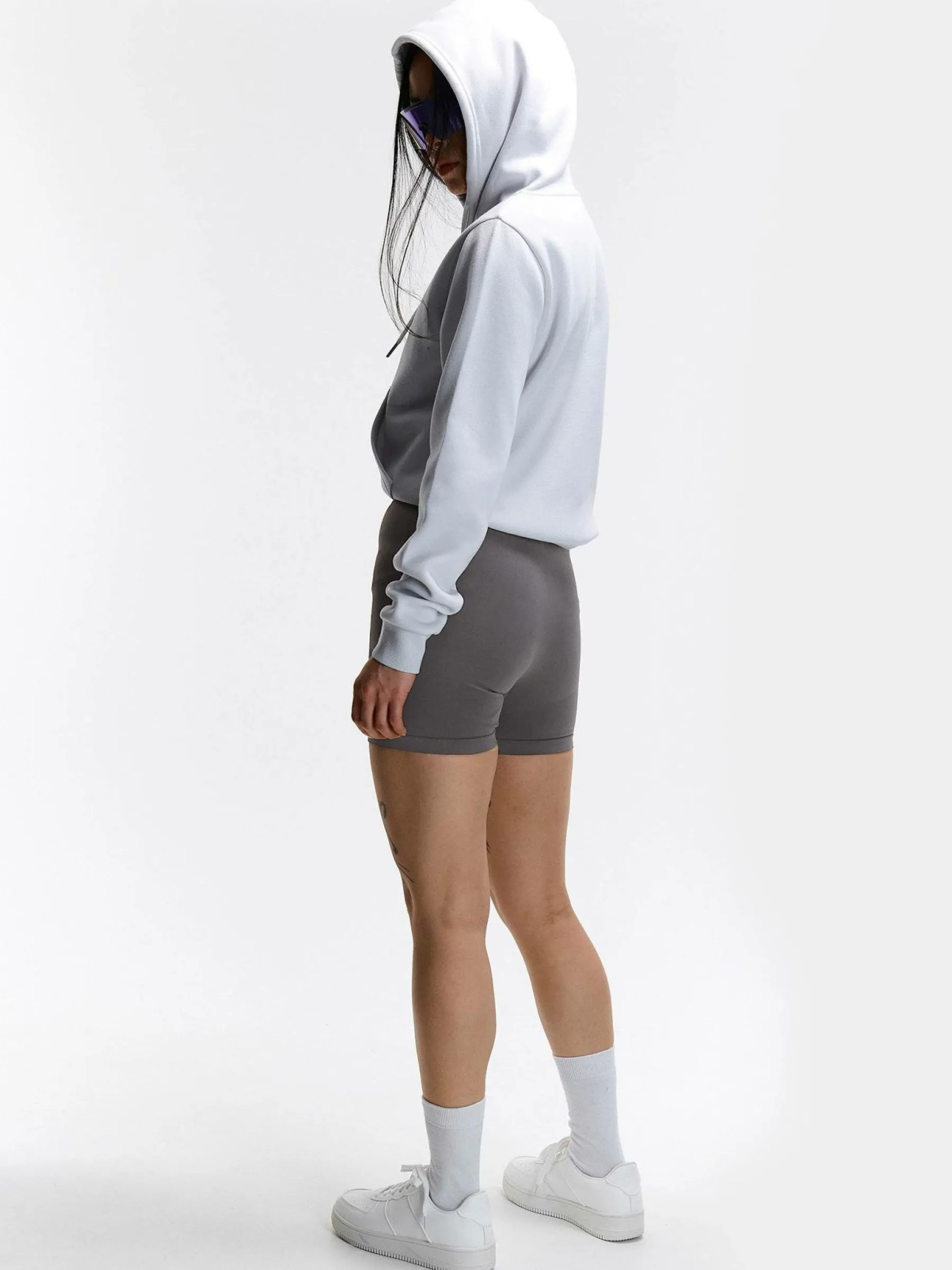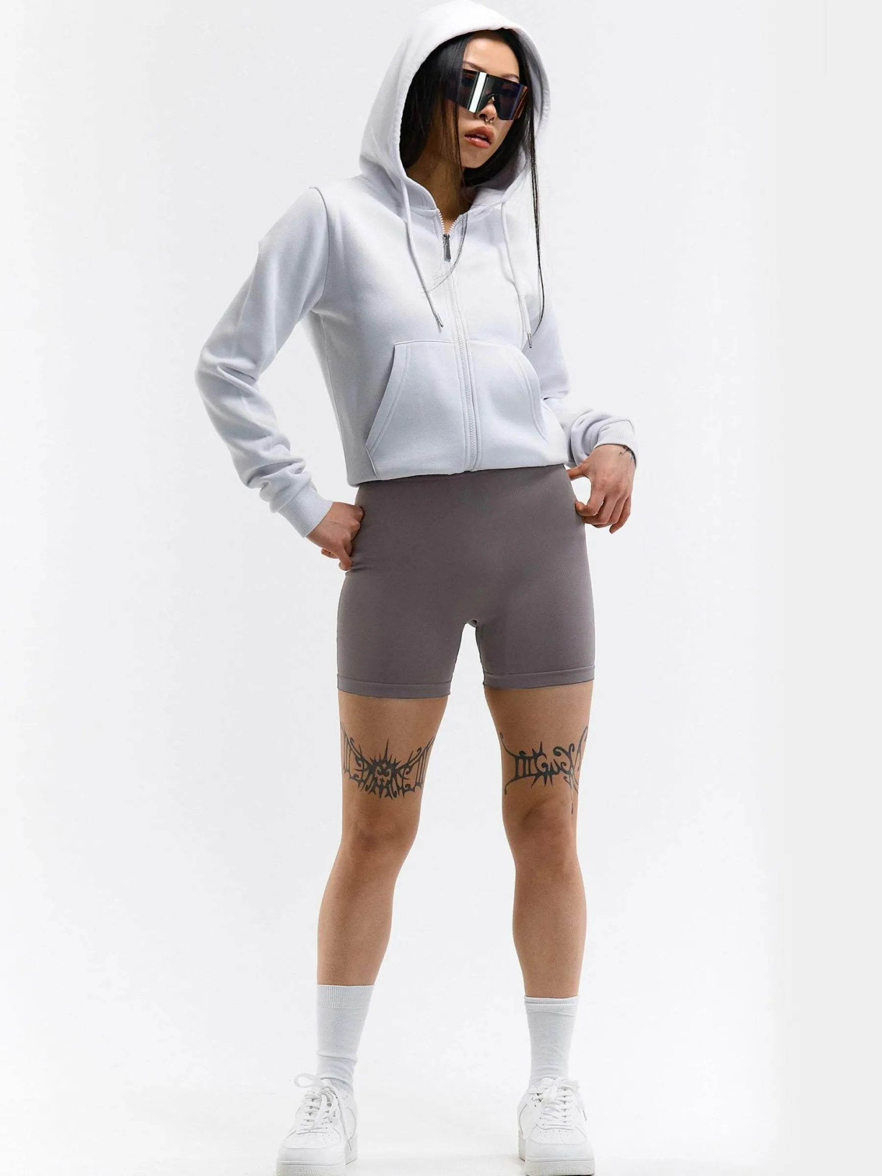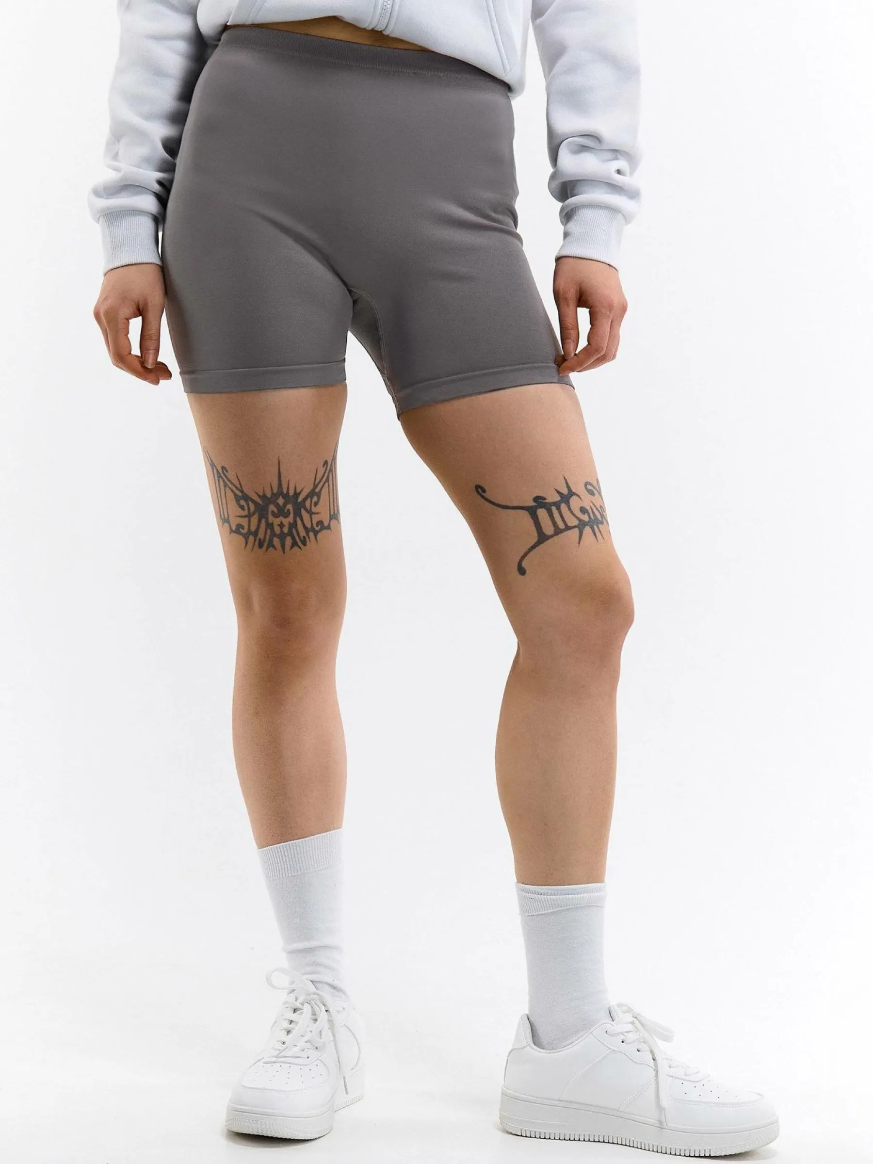 Kolor: szaryKrój: bikerTyp: spodenkiDługość: krótkiPattern style: pojedynczy kolorDetal: z elastyczną opaskąMater…