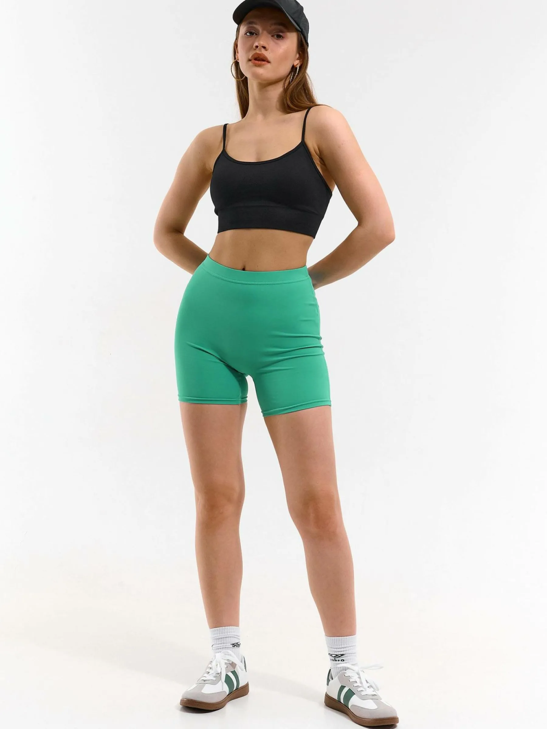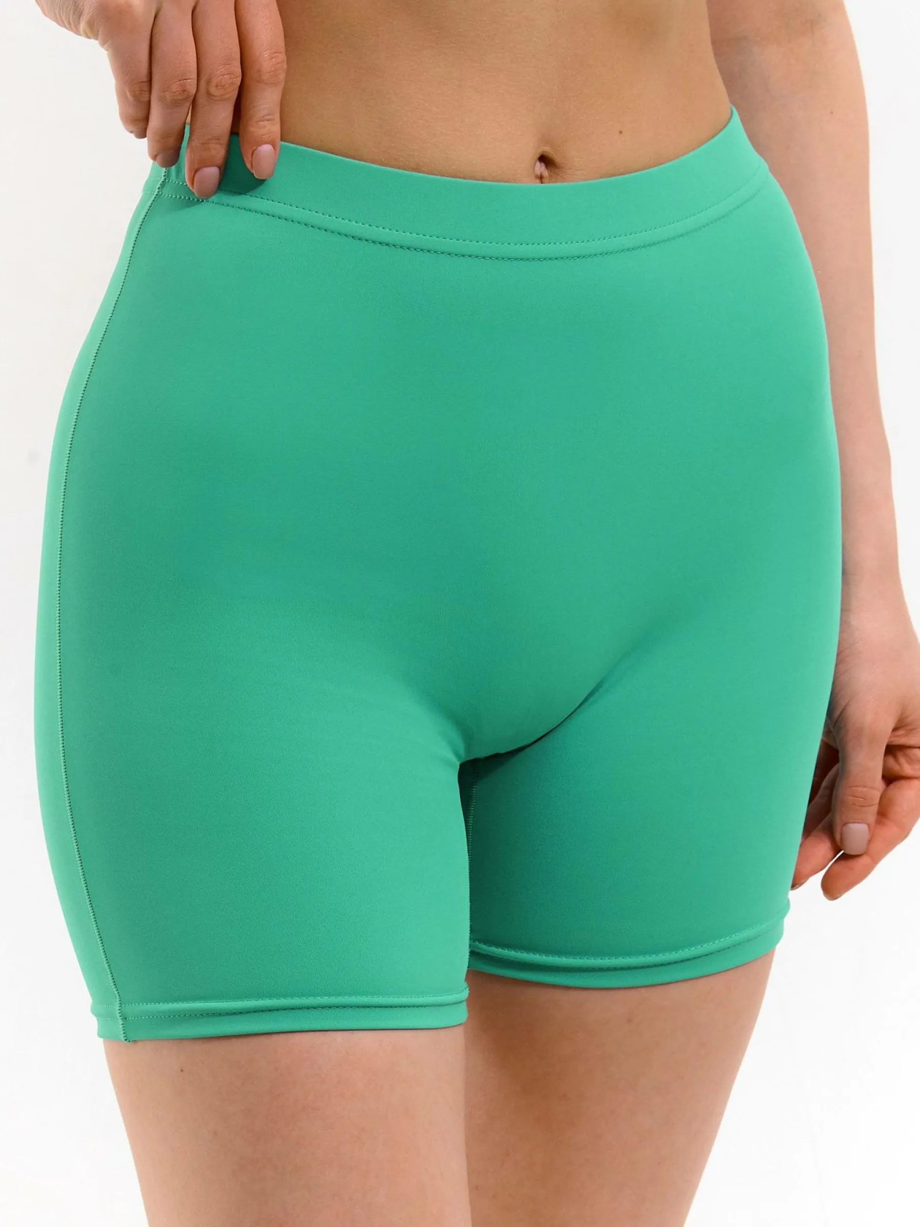 Kolor: zielonyKrój: bikerTyp: spodenkiDługość: krótkiPattern style: pojedynczy kolorMateriał: syntetycznePłeć: k…