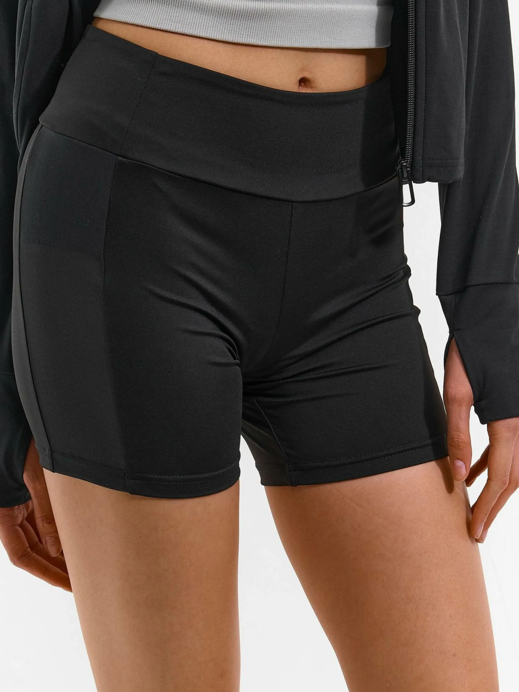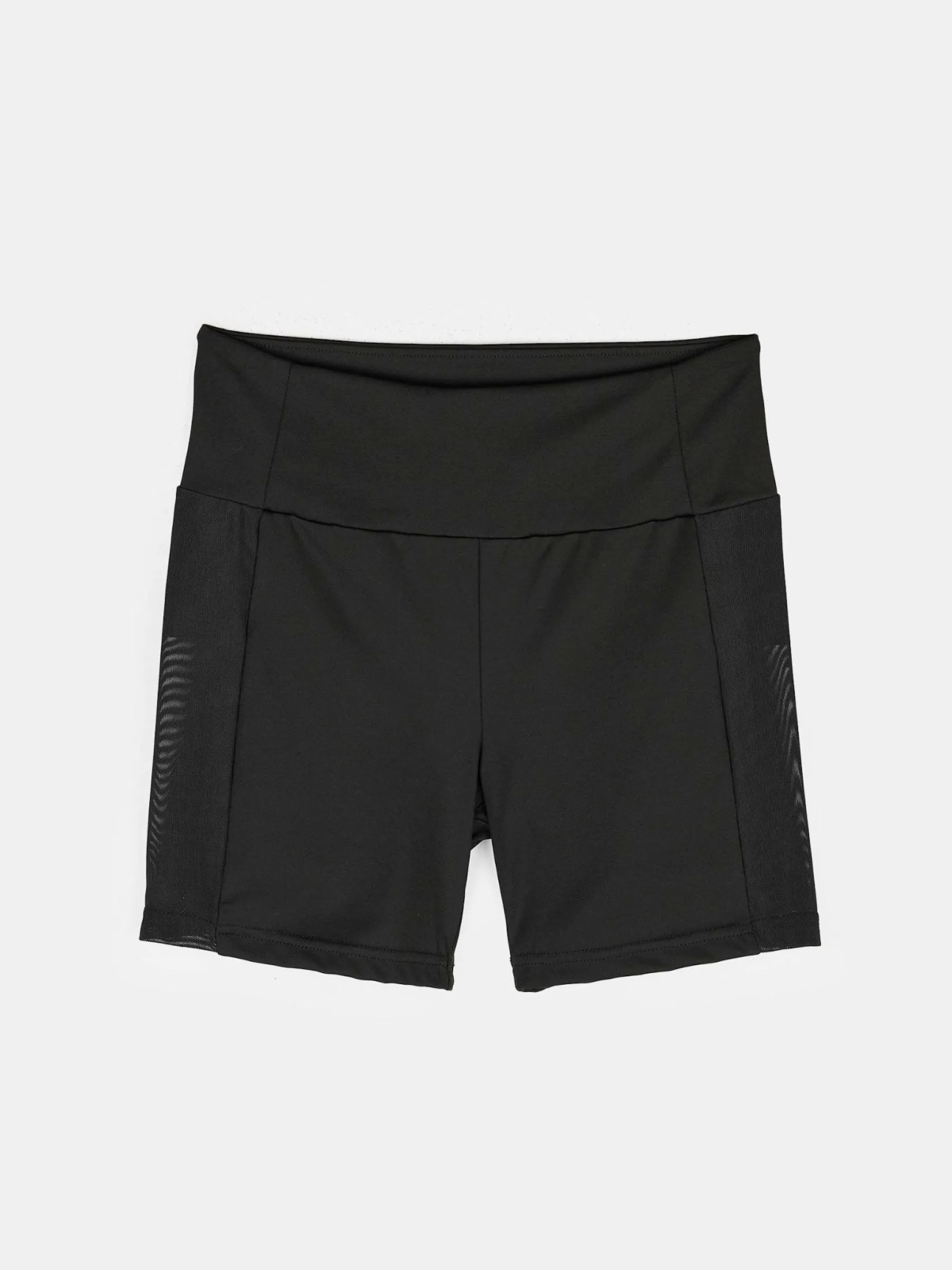 Kolor: czarnyKrój: bikerTyp: spodenkiDługość: midiPattern style: pojedynczy kolorMateriał: syntetycznePłeć: kobie…