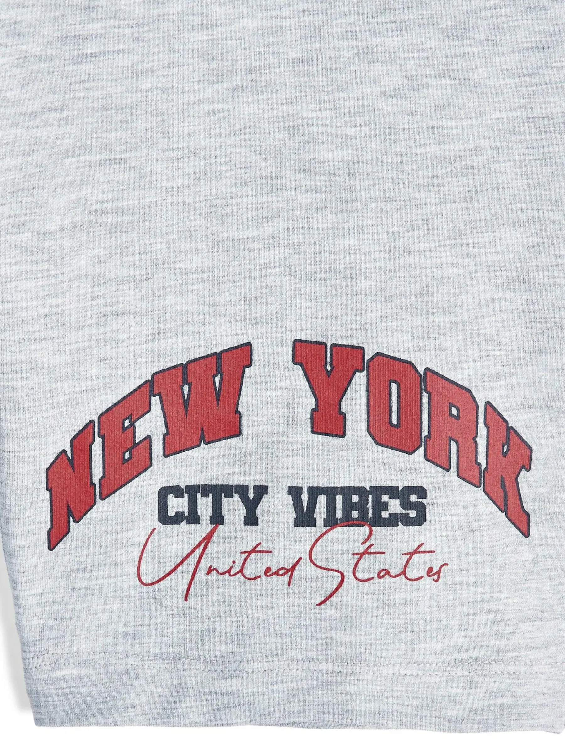 Kolor: szaryKrój: bikerTyp: spodenkiDługość: krótkiPattern style: z nadrukiemDetal: z elastyczną opaskąMateriał:…