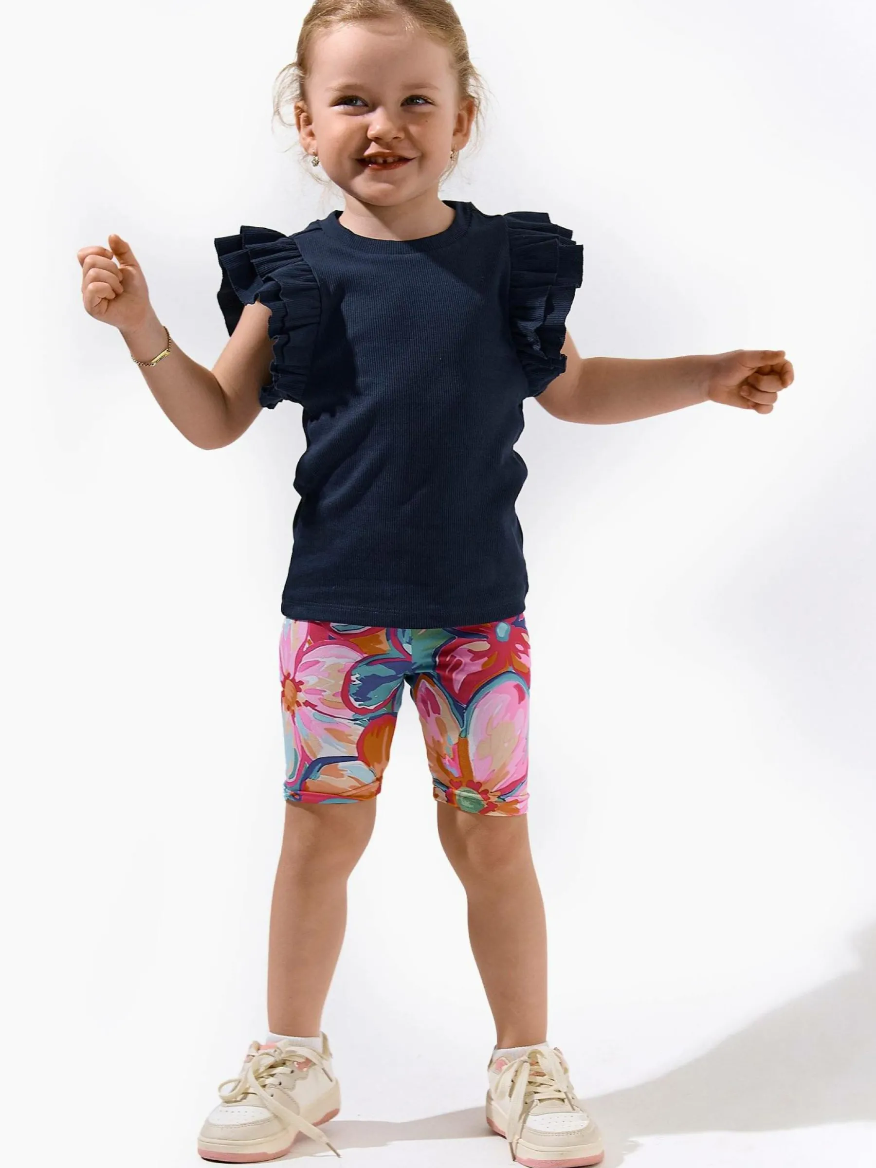 Kolor: różowyKrój: bikerTyp: spodenkiDługość: krótkiPattern style: z nadrukiem, kwiatoweDetal: z elastyczną opas…