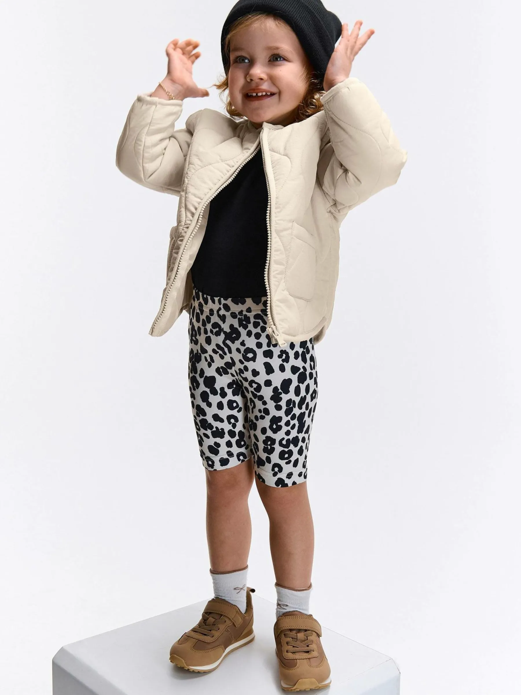 Kolor: beżowyKrój: bikerTyp: spodenkiDługość: krótkiPattern style: zwierzecy, z nadrukiemDetal: z elastyczną opas…