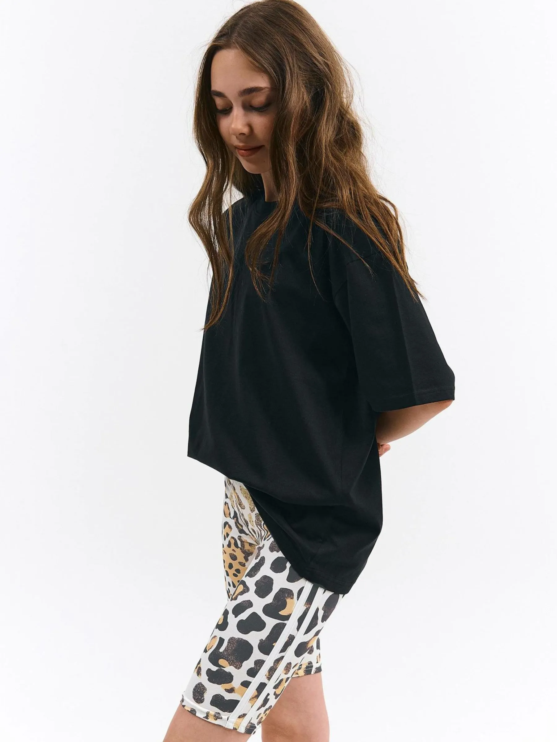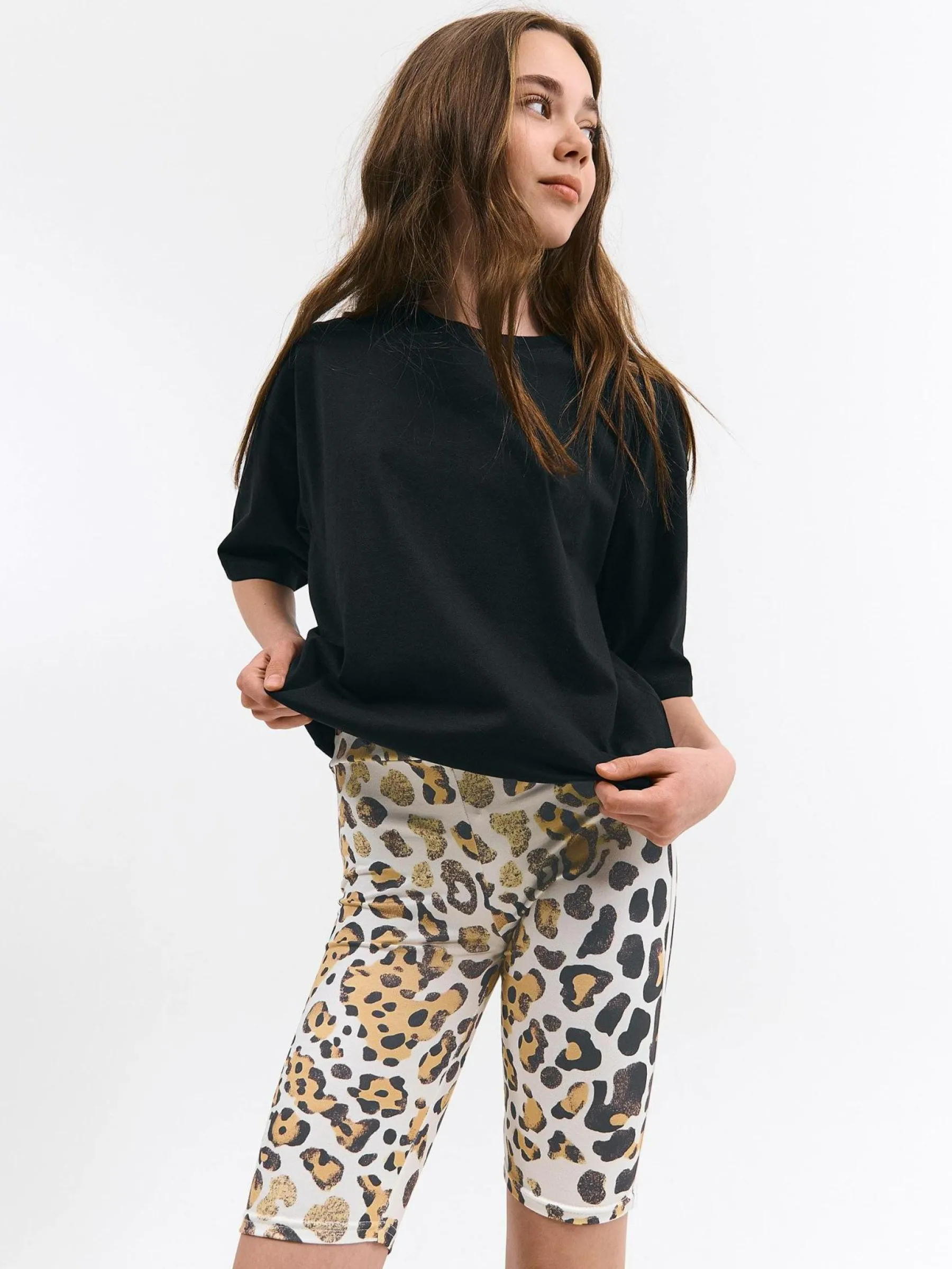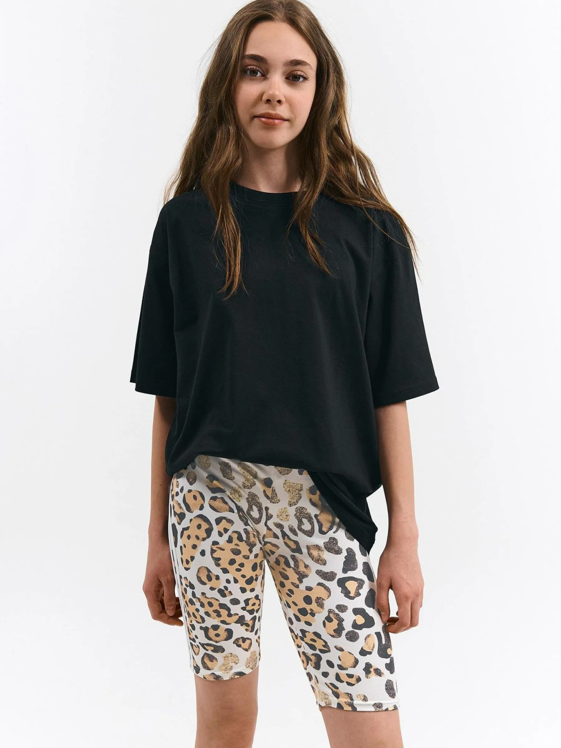 Kolor: beżowyKrój: bikerTyp: spodenkiDługość: krótkiPattern style: zwierzecyDetal: z elastyczną opaskąMateriał:…