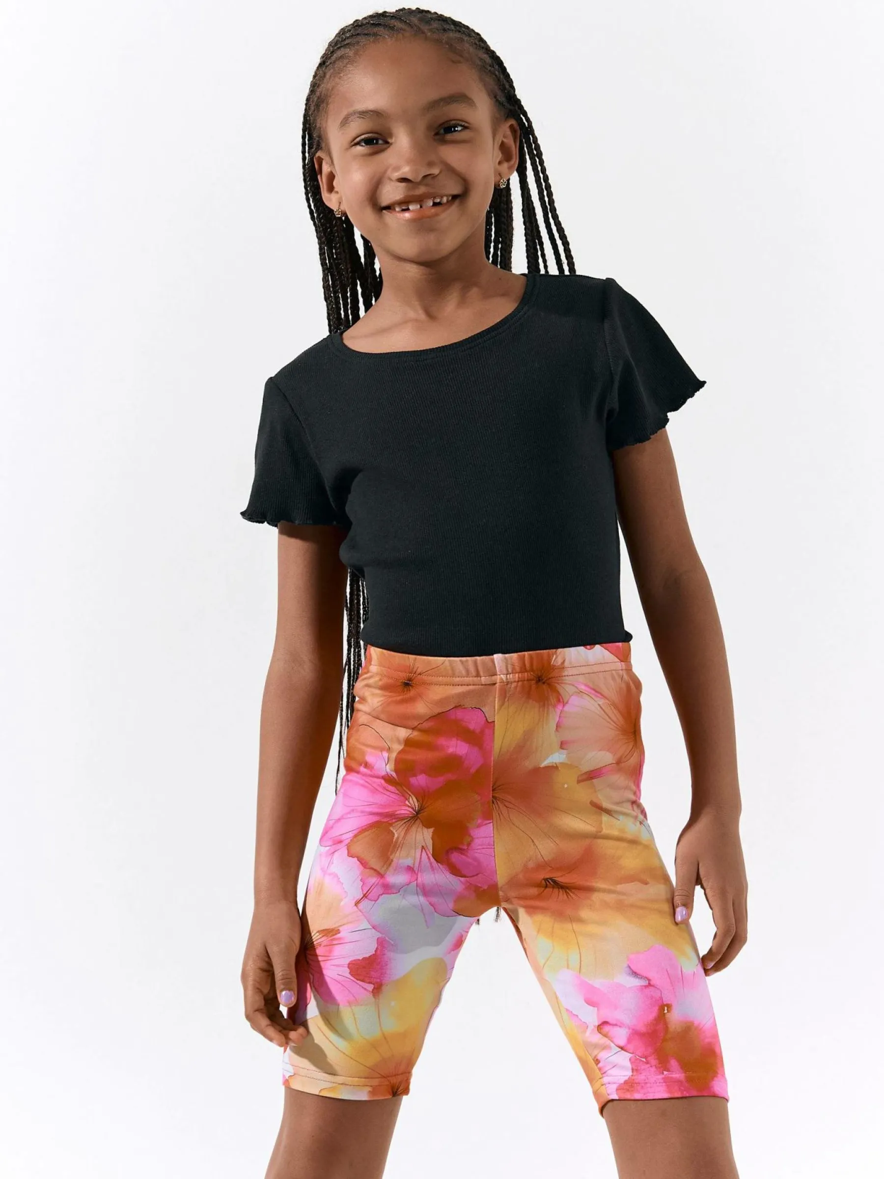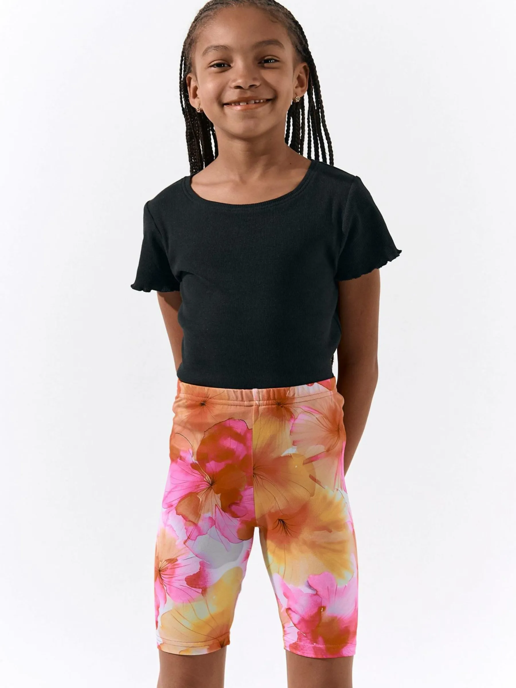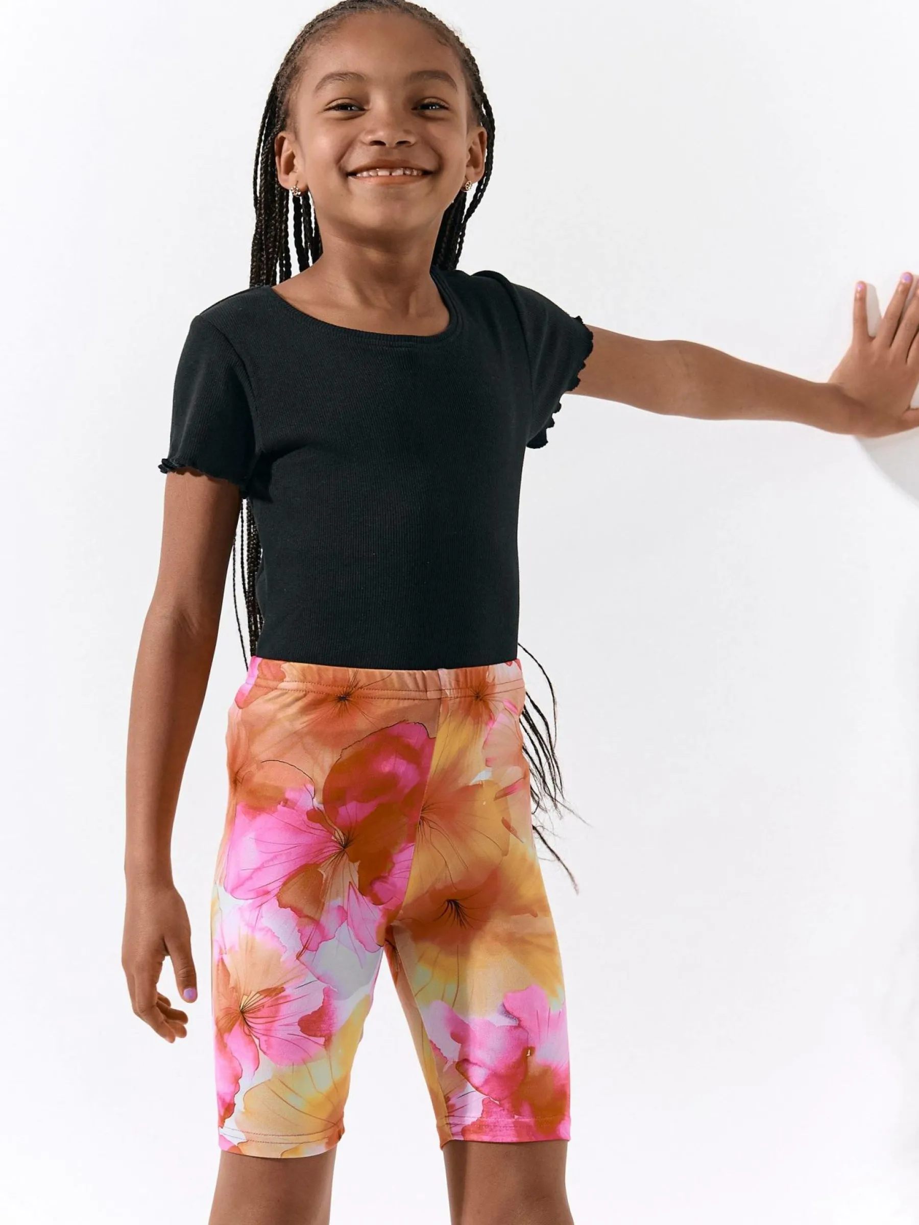 Kolor: różowyKrój: bikerTyp: spodenkiDługość: krótkiPattern style: kwiatoweDetal: z elastyczną opaskąMateriał:…