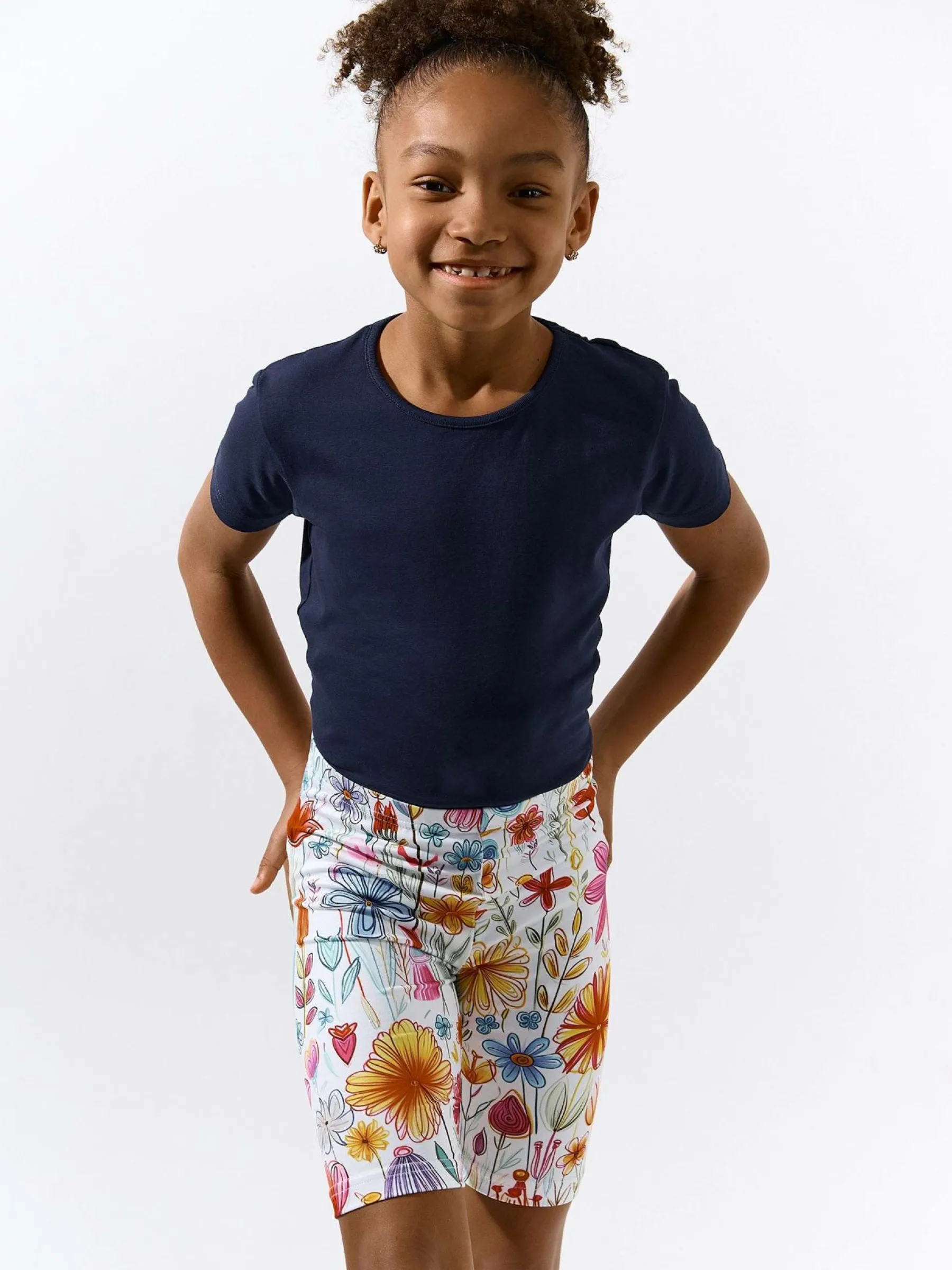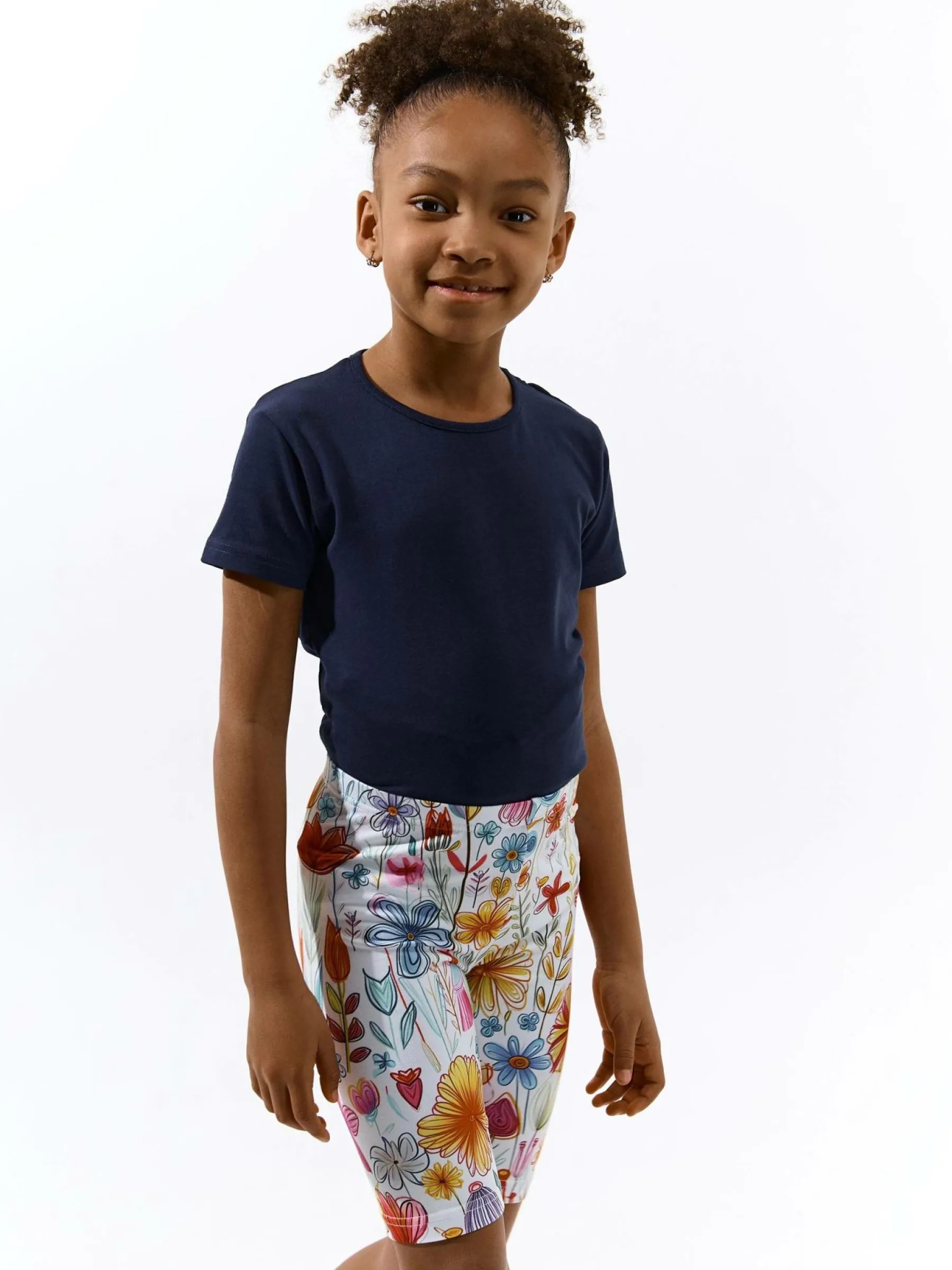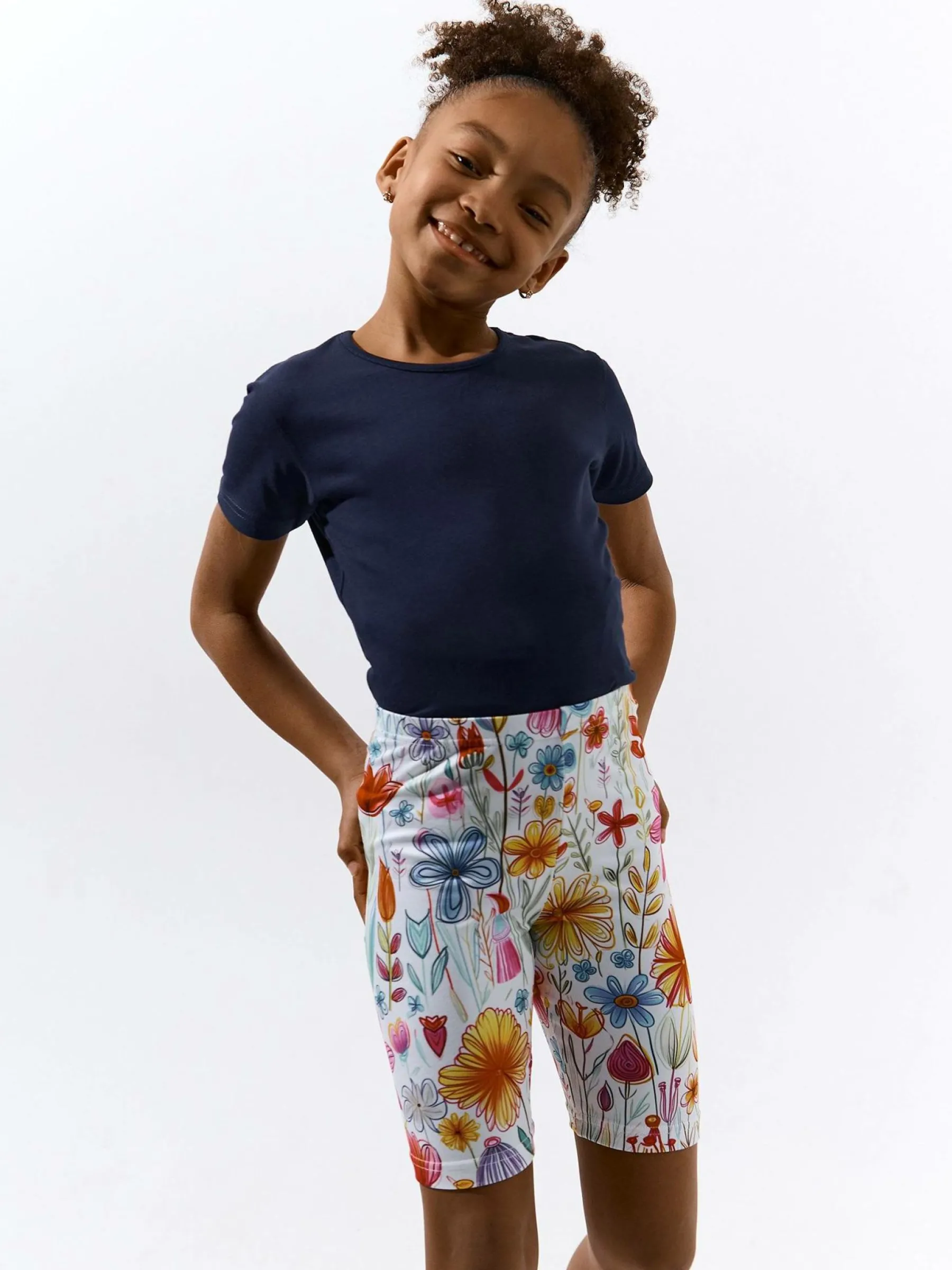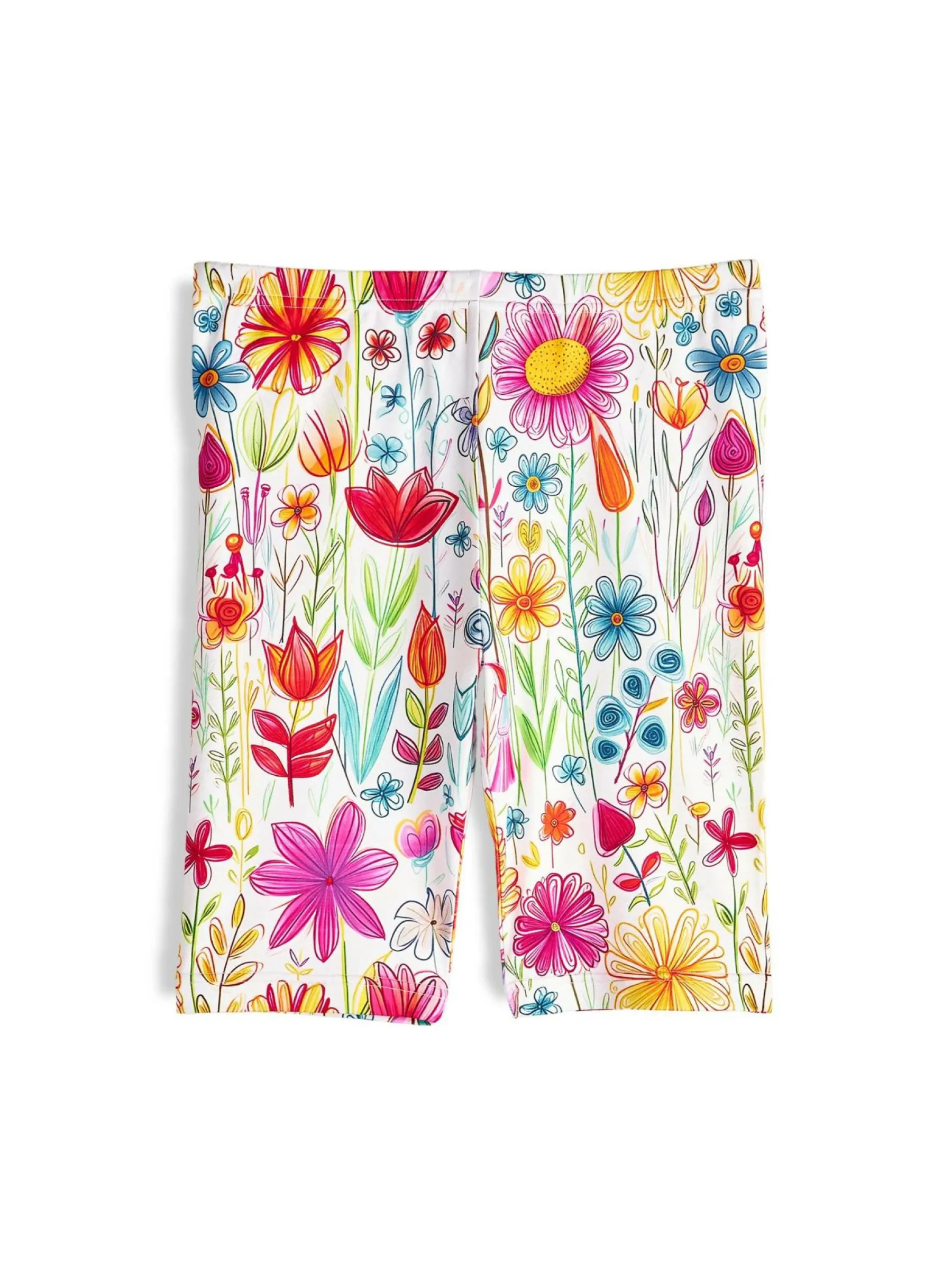 Kolor: białyKrój: bikerTyp: spodenkiDługość: krótkiPattern style: kwiatoweDetal: z elastyczną opaskąMateriał: s…