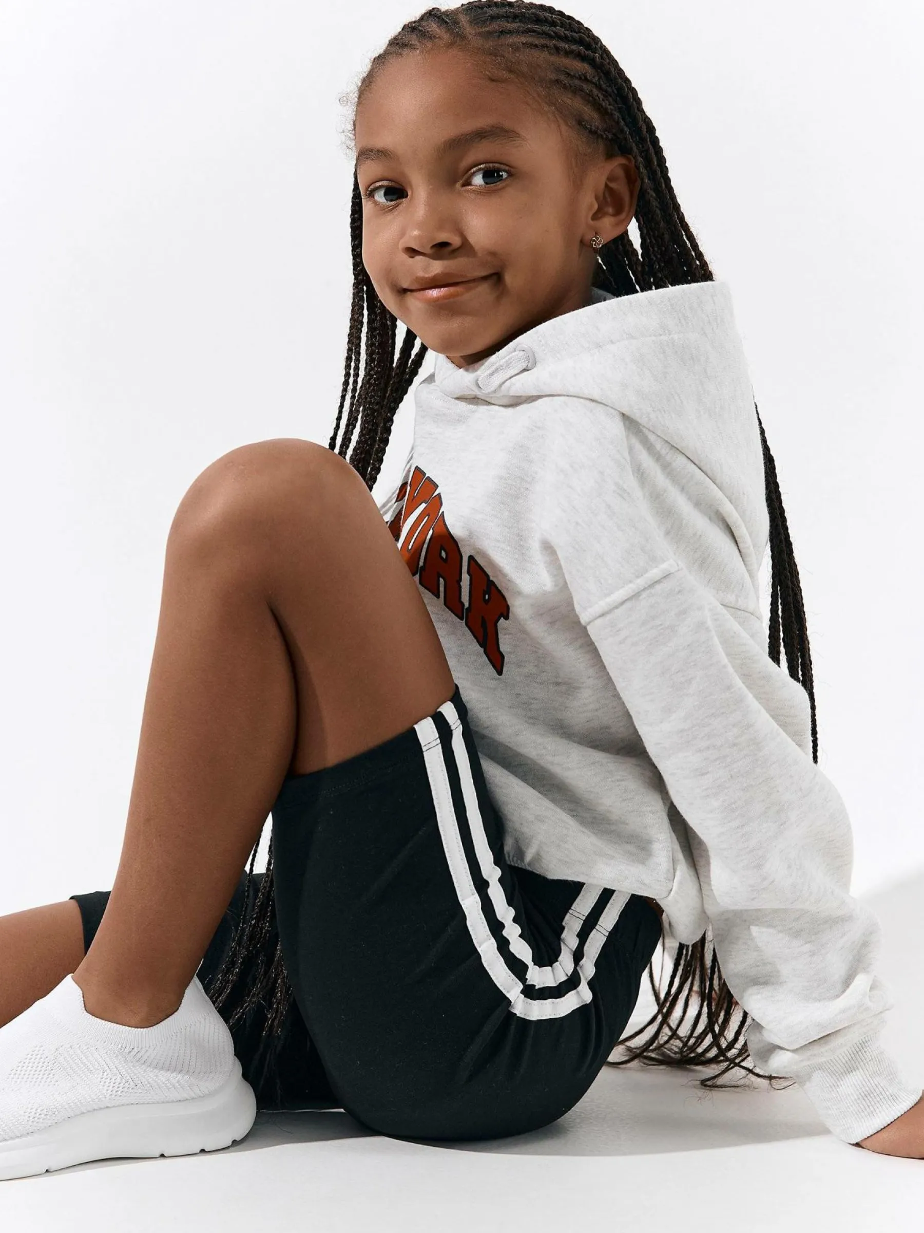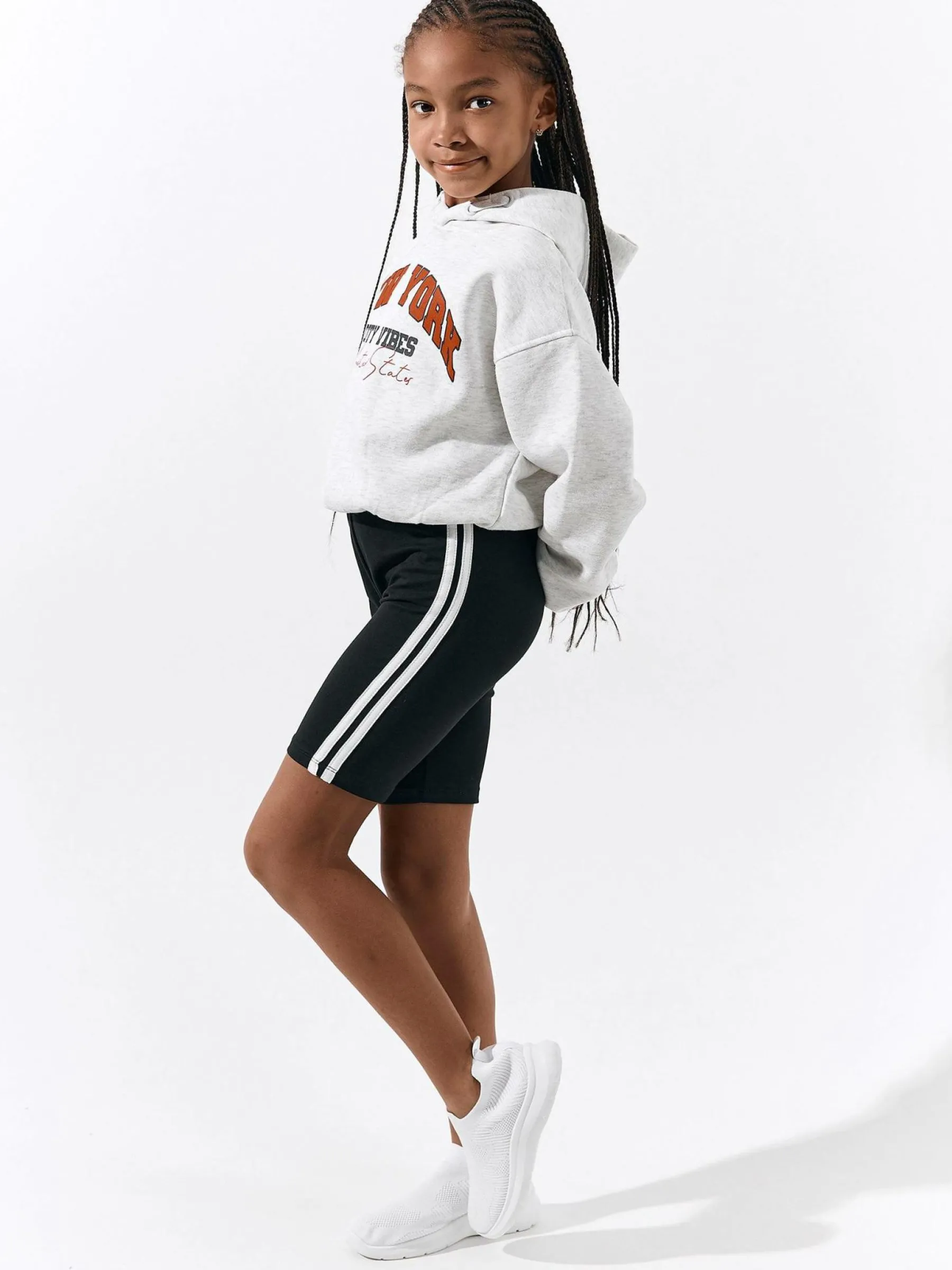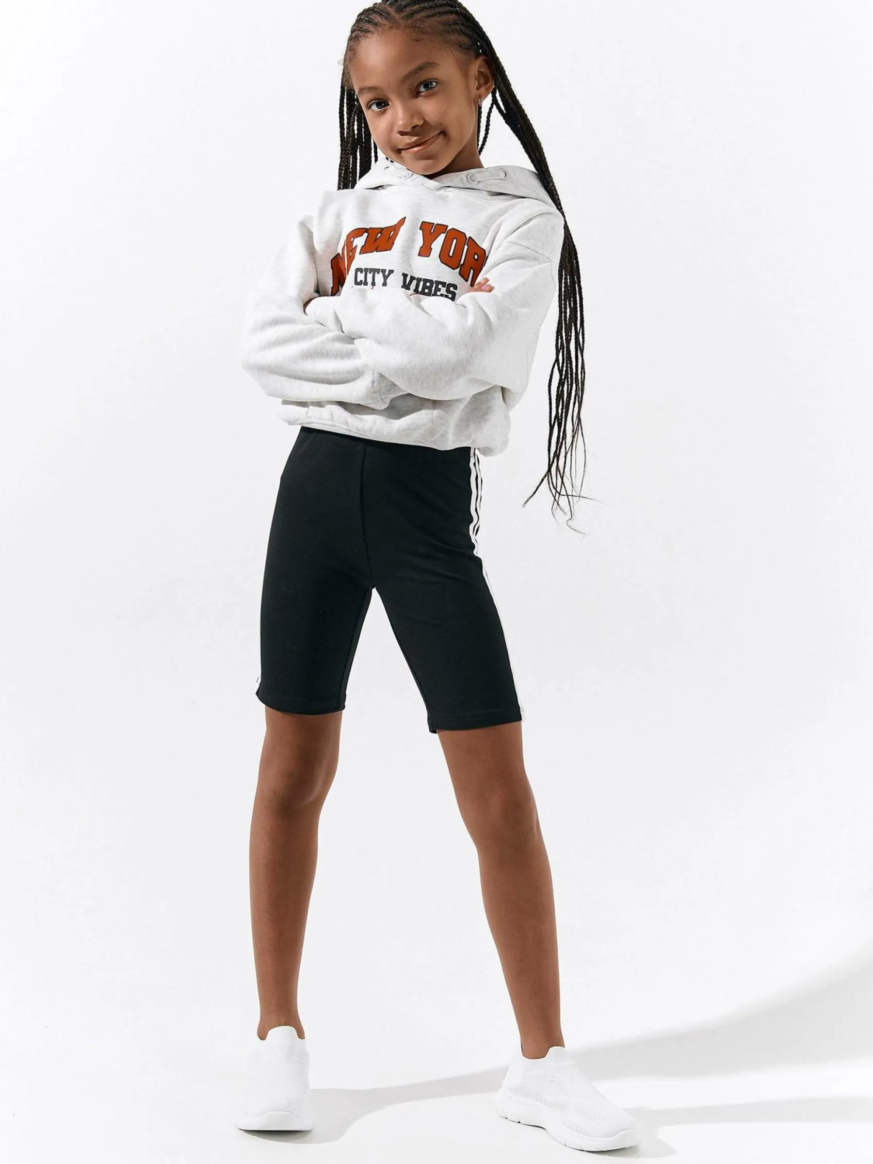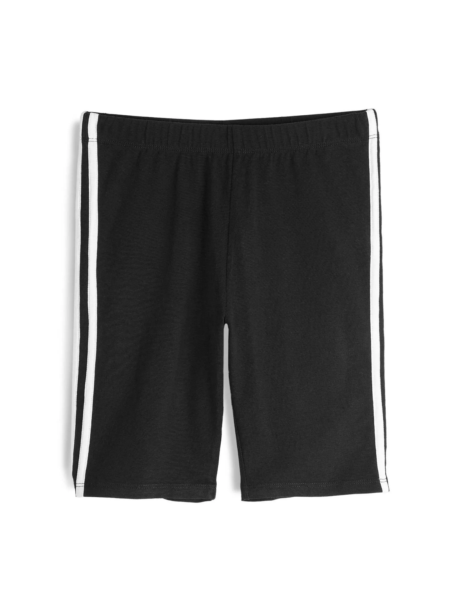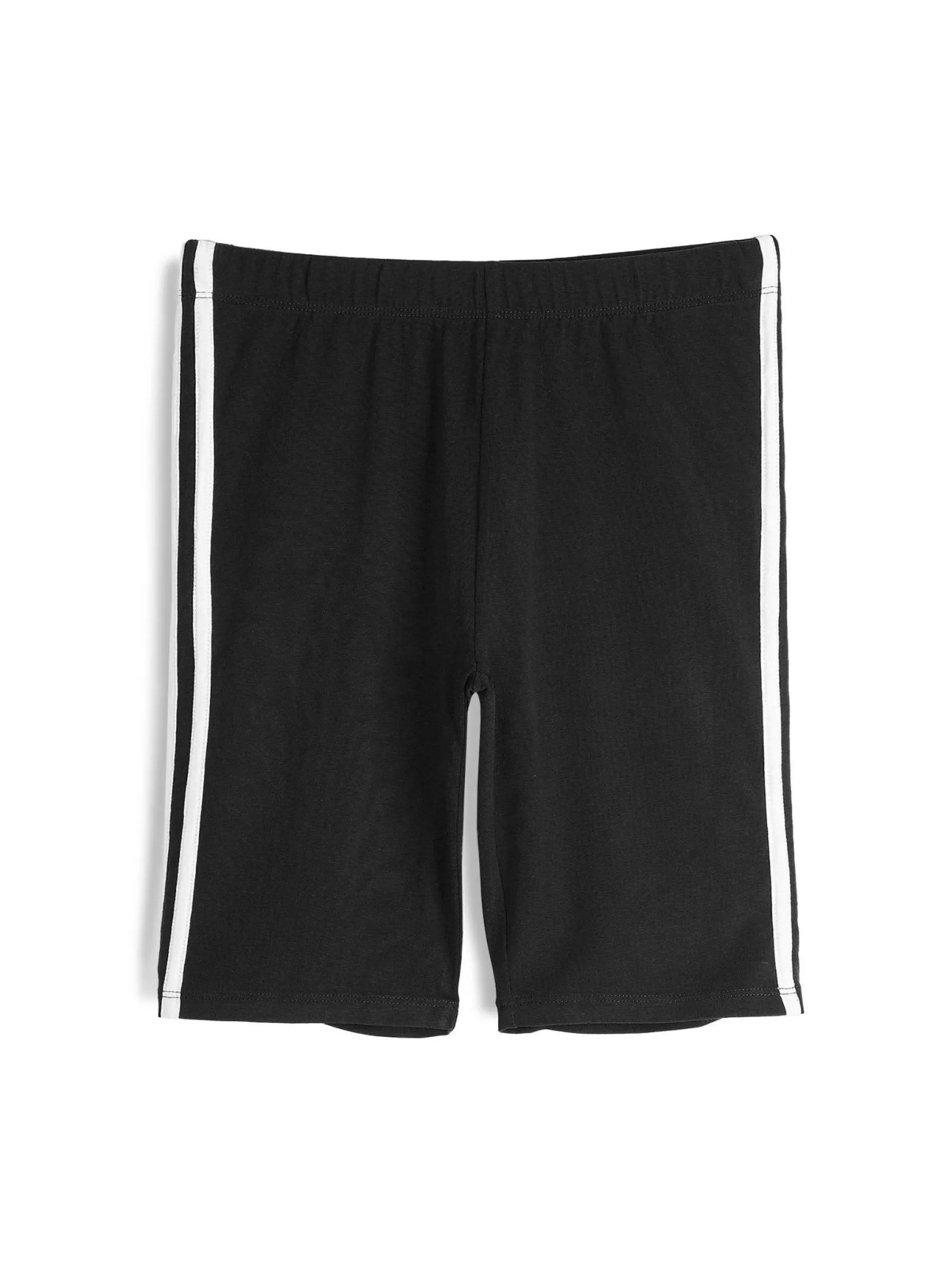 Kolor: czarnyKrój: bikerTyp: spodenkiDługość: krótkiPattern style: pojedynczy kolorDetal: z elastyczną opaską, z …