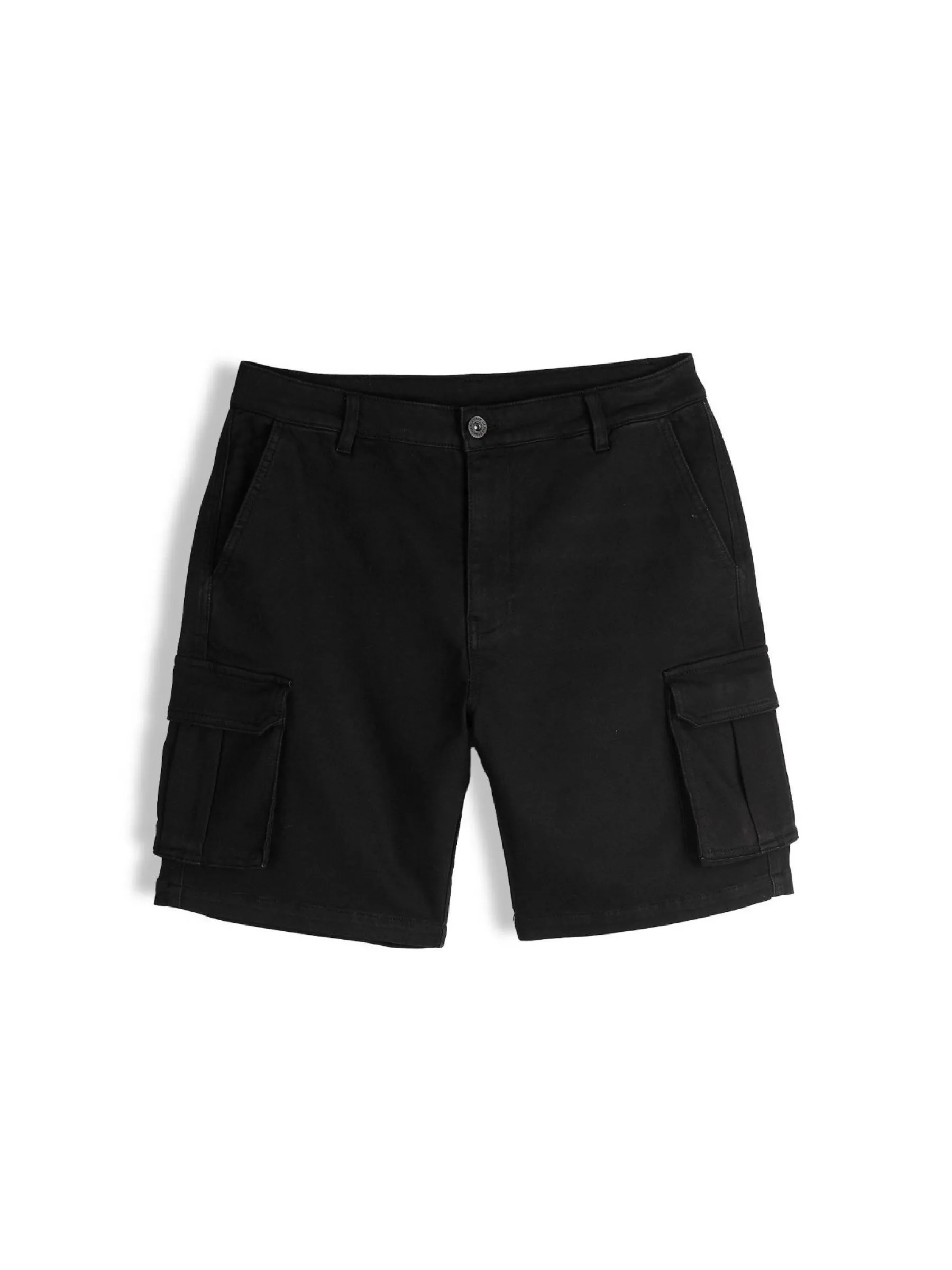 Kolor: czarnyKrój: cargoTyp: spodenkiDługość: krótkiPattern style: pojedynczy kolorDetal: na zamek, z kieszeniamiMa…