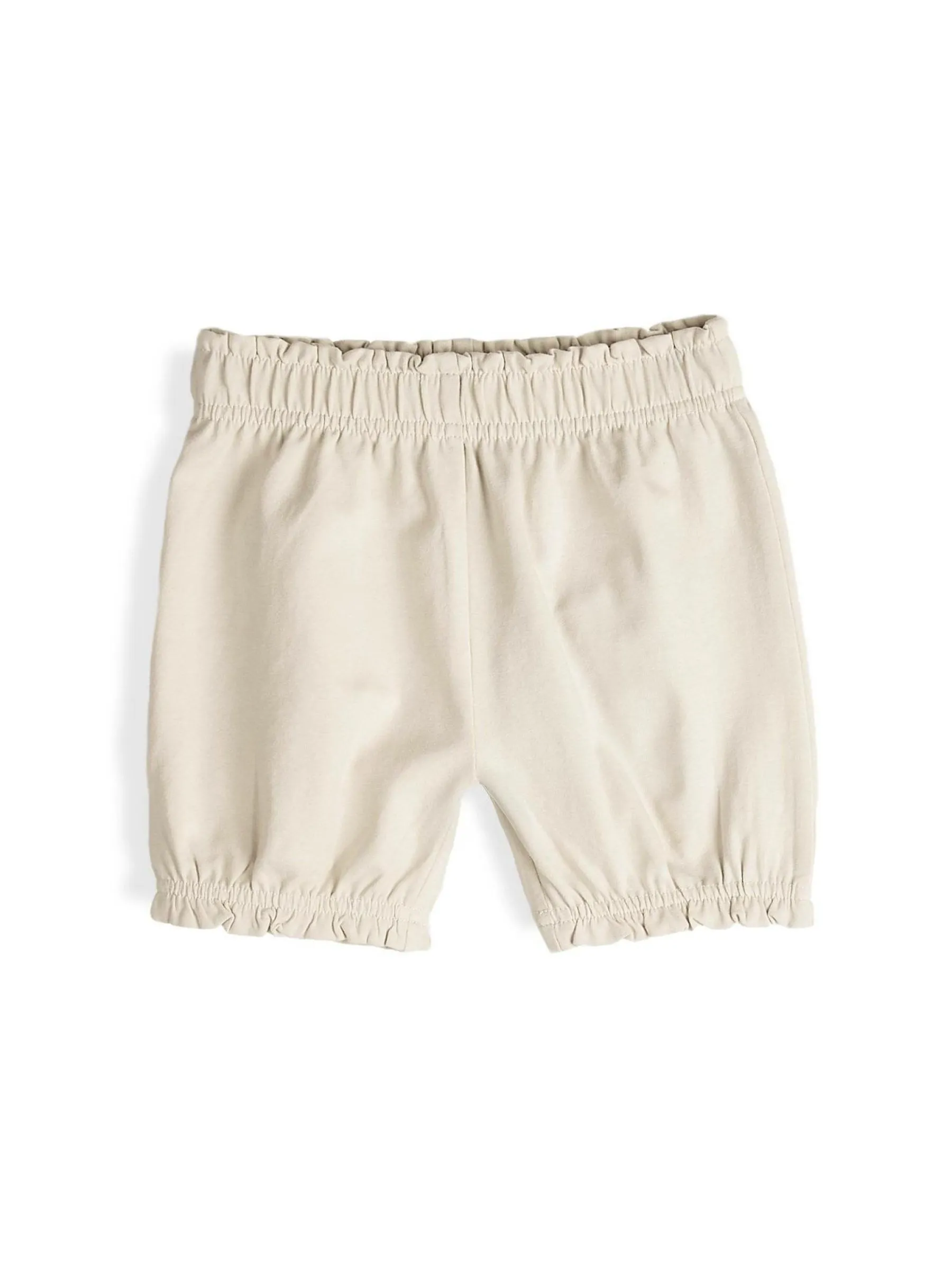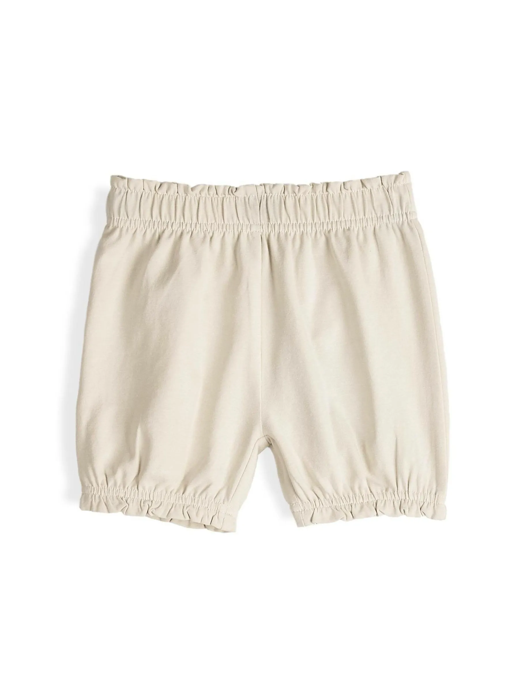 Kolor: beżowyKrój: z marszczeniemTyp: spodenkiDługość: krótkiPattern style: pojedynczy kolorDetal: z elastyczną o…