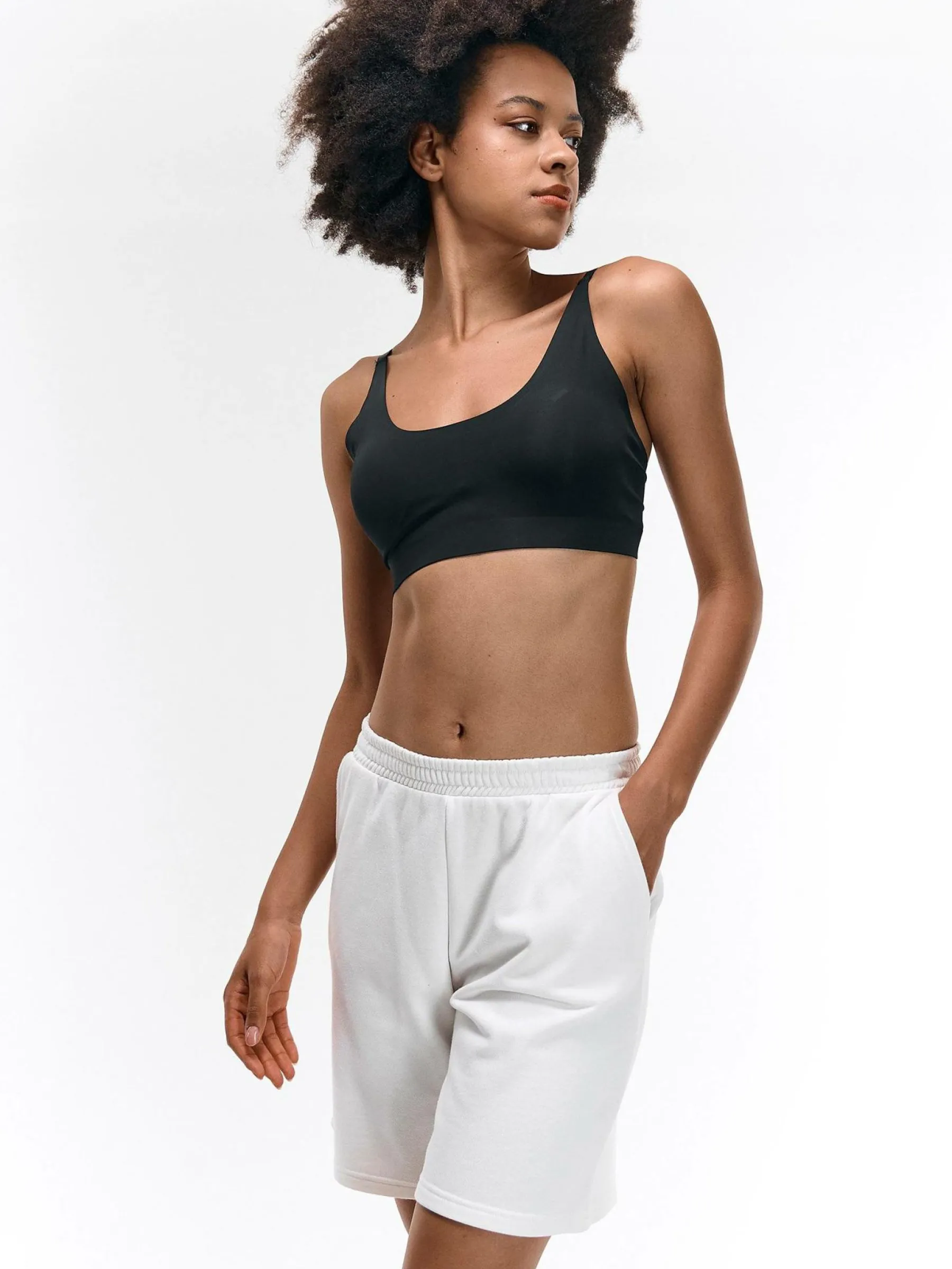 Kolor: beżowy, białyKrój: regularTyp: spodenkiDługość: krótkiPattern style: pojedynczy kolorDetal: z elastyczną …