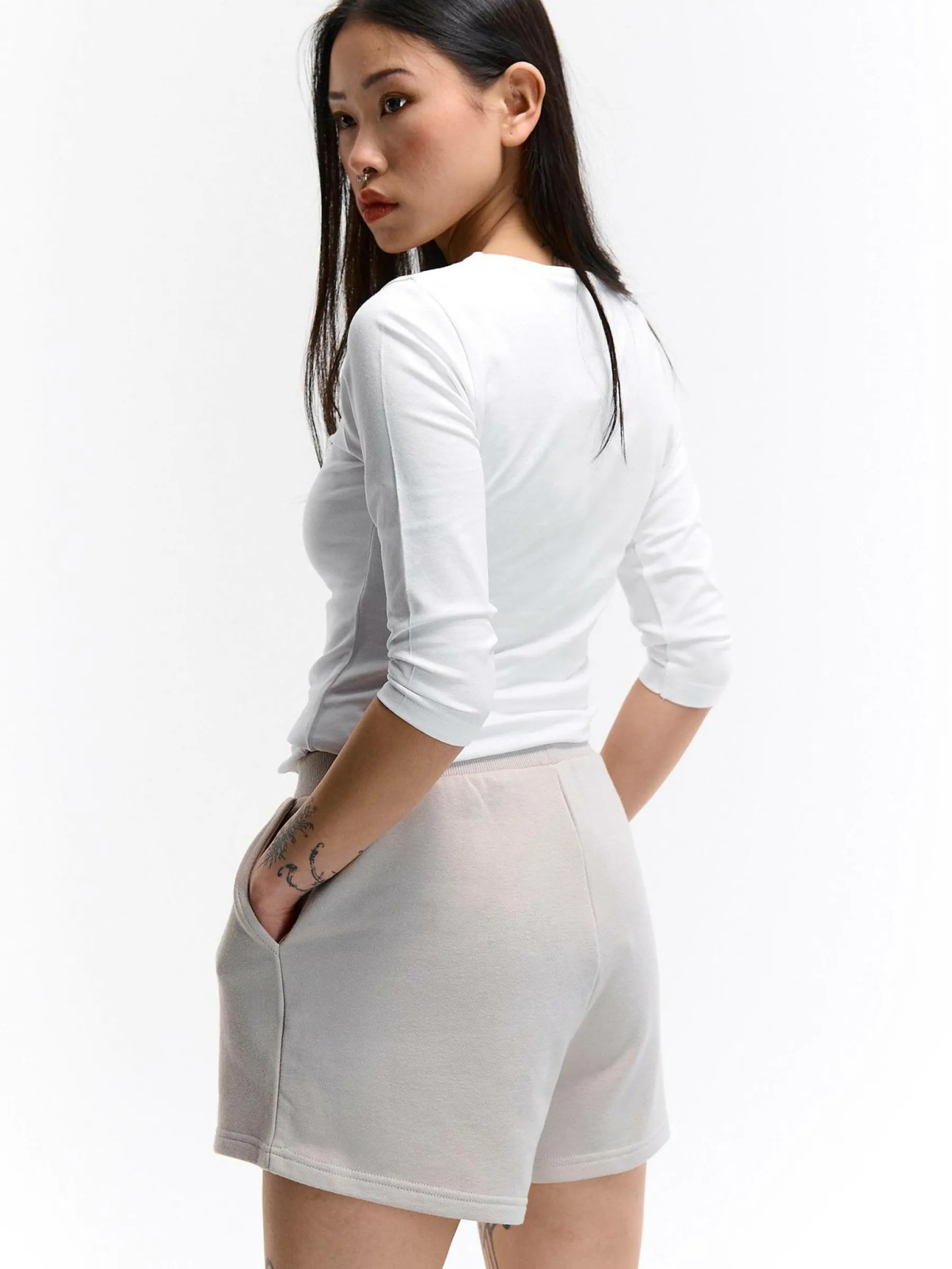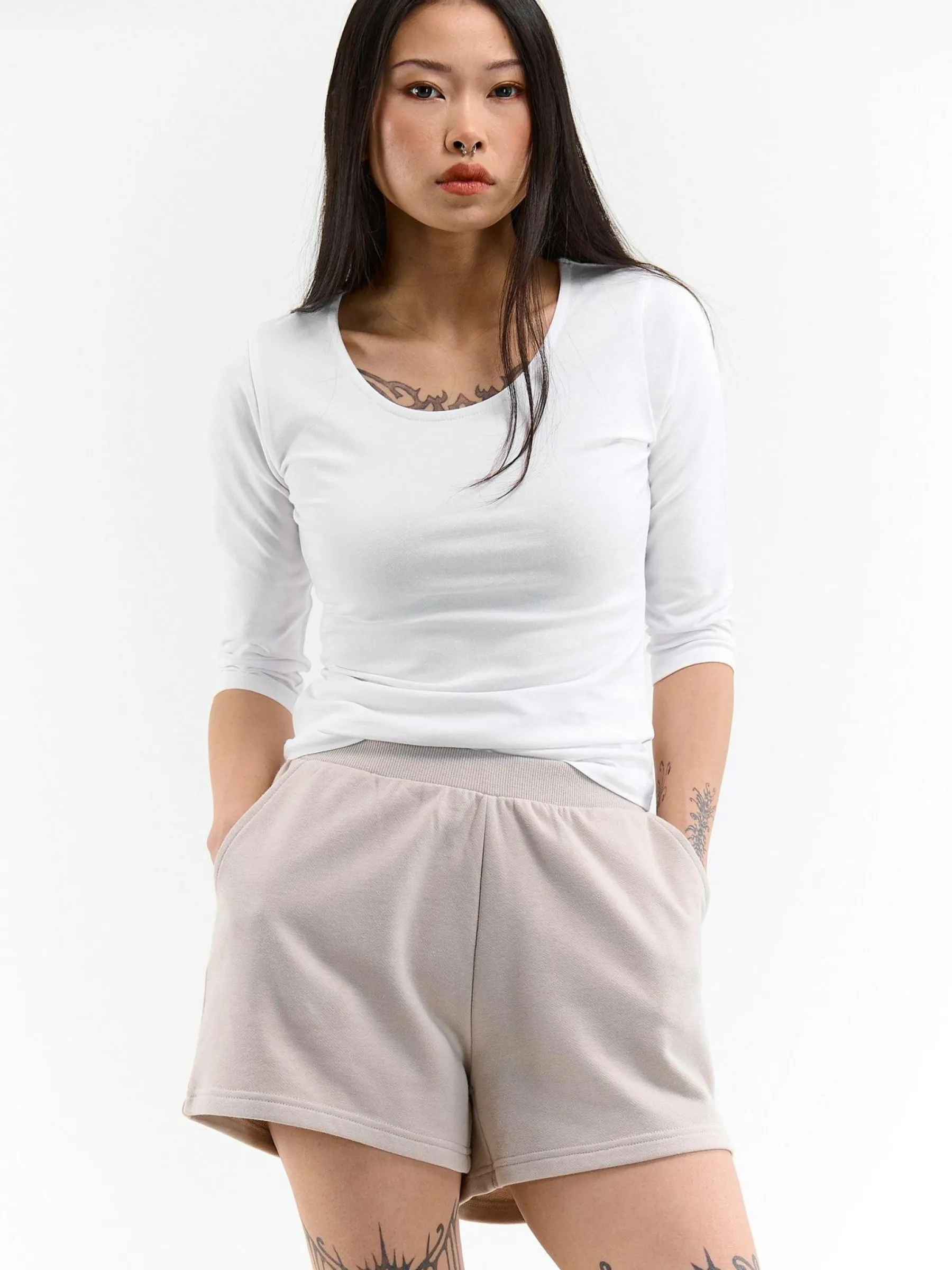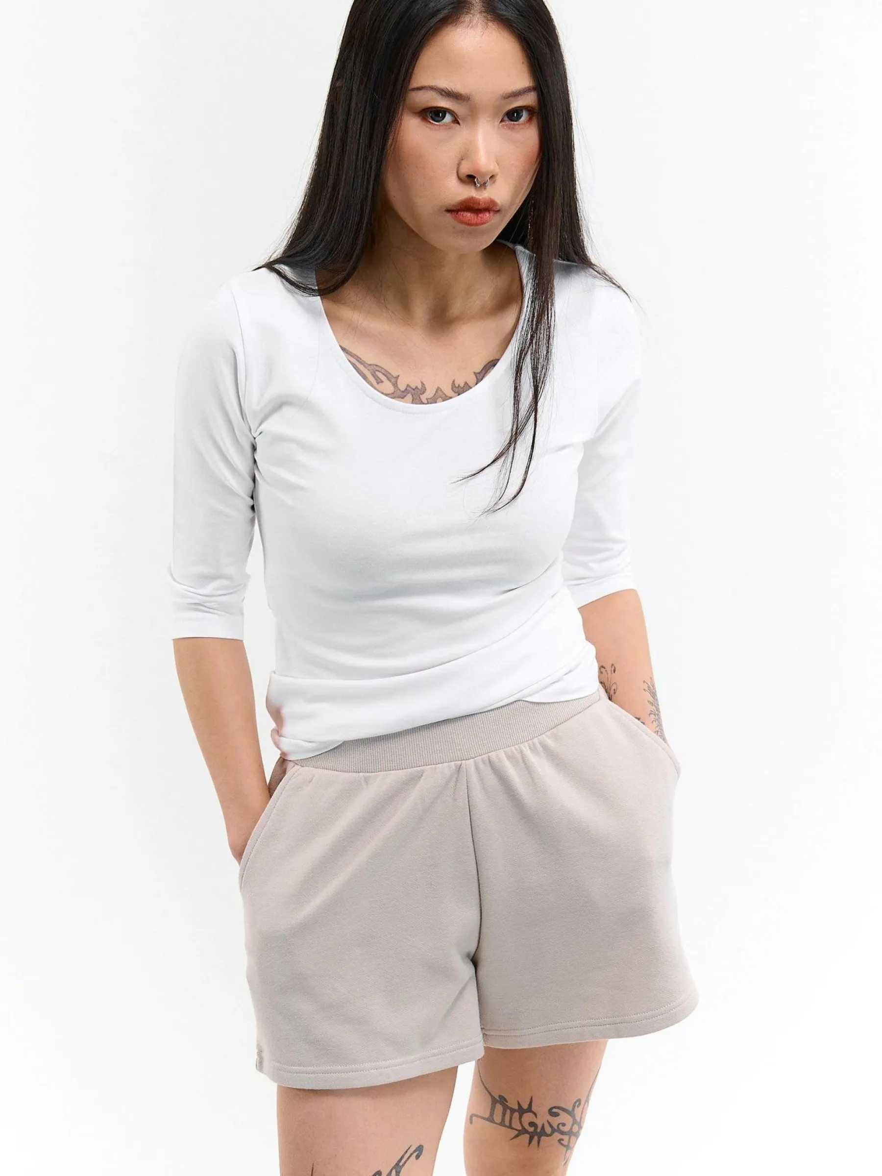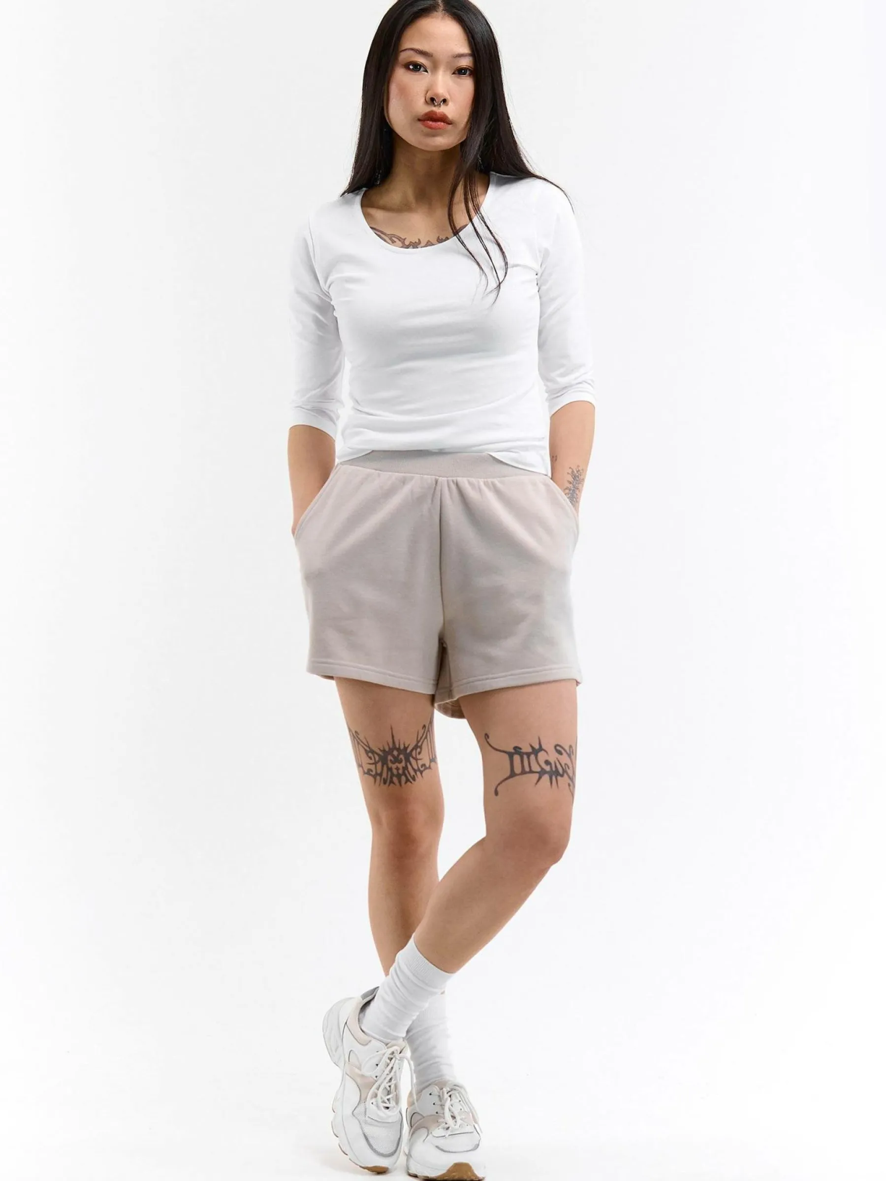 Kolor: beżowyKrój: straightTyp: spodenkiDługość: krótkiPattern style: pojedynczy kolorDetal: z kieszeniami, z elas…