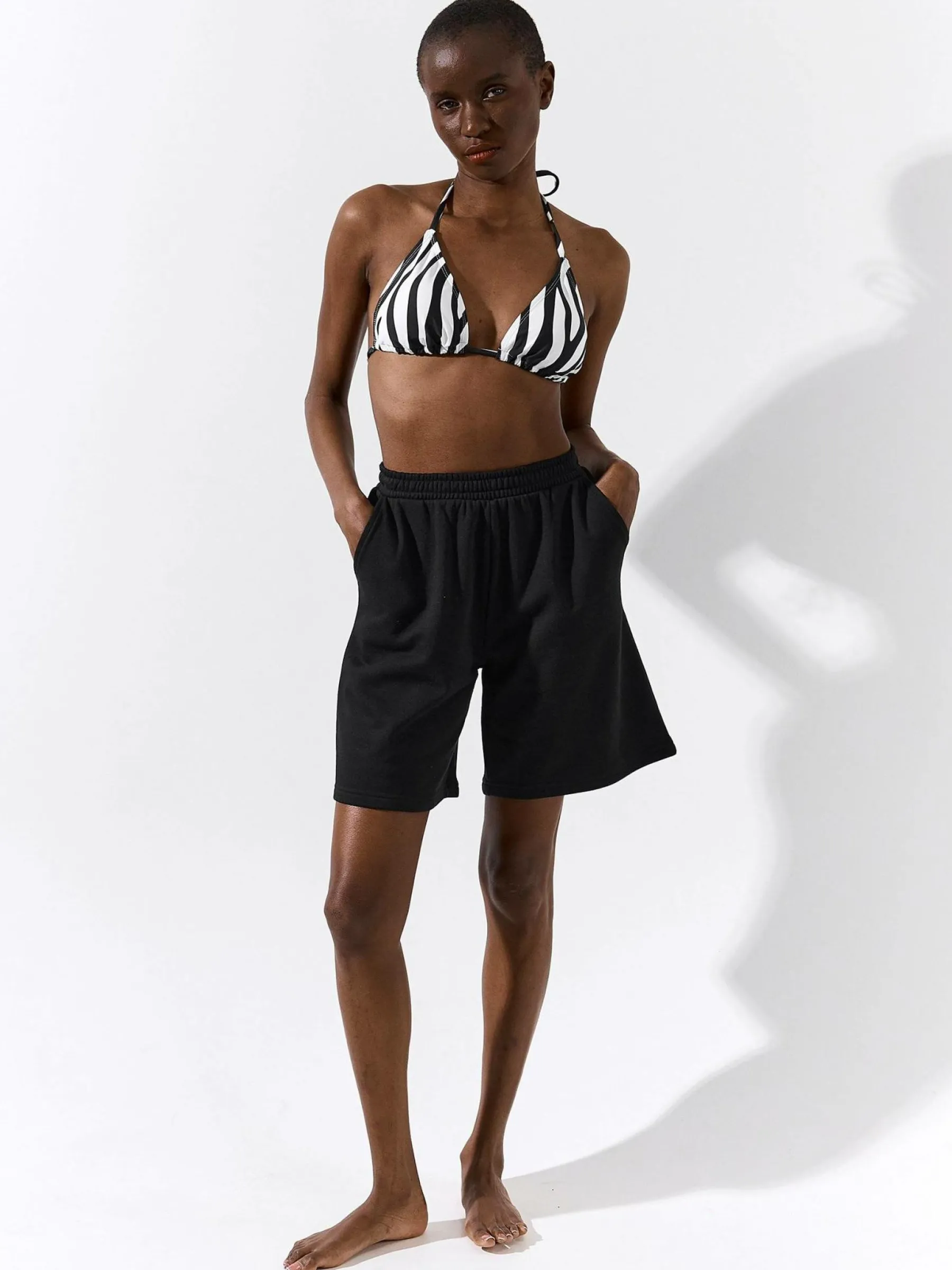 Kolor: czarnyKrój: regularTyp: spodenkiDługość: krótkiPattern style: pojedynczy kolorDetal: z elastyczną opaską, …