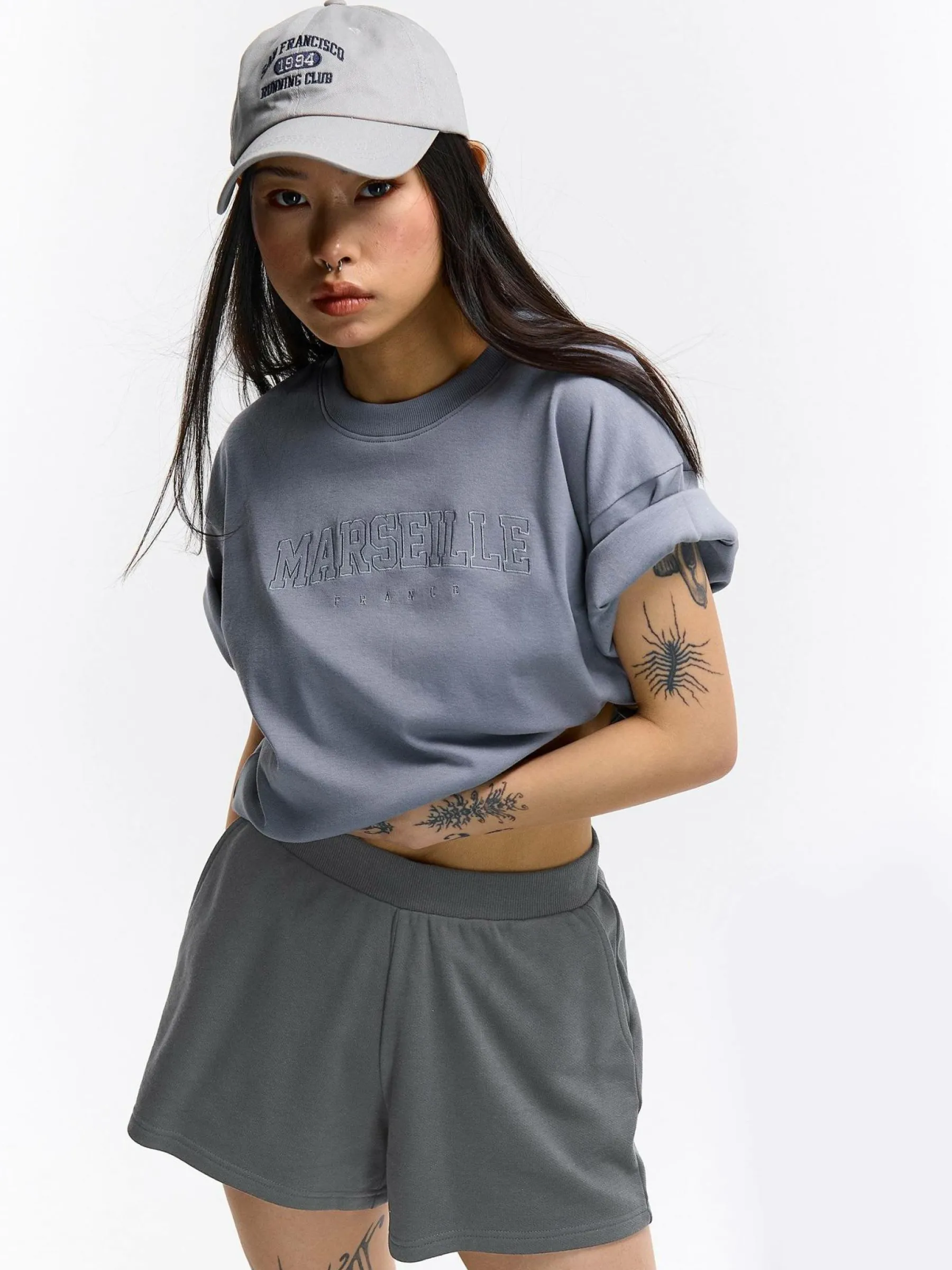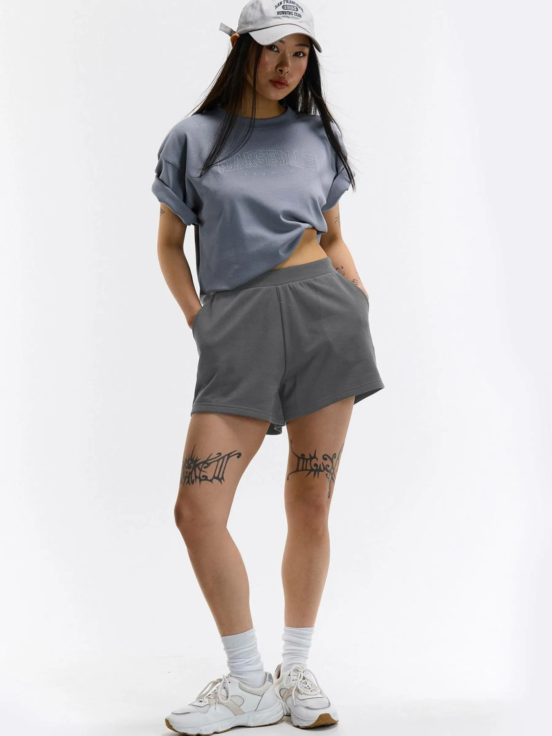 Kolor: szaryKrój: straightTyp: spodenkiDługość: krótkiPattern style: pojedynczy kolorDetal: z elastyczną opaską, …