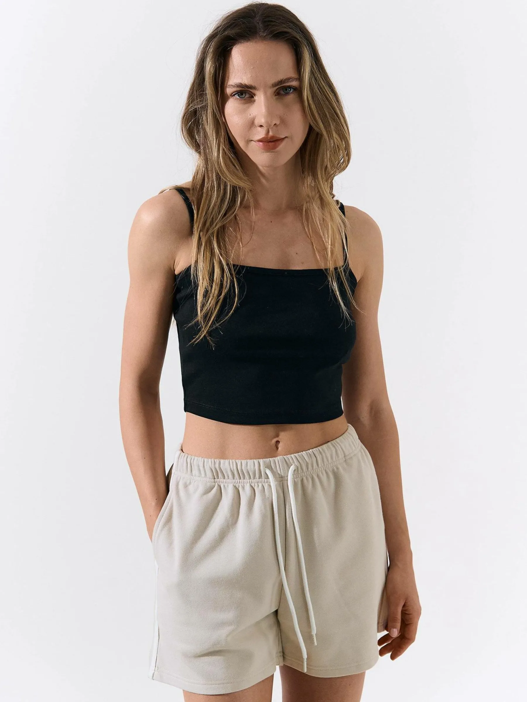 Kolor: beżowyKrój: straightTyp: spodenkiDługość: krótkiPattern style: pojedynczy kolorDetal: ze sznurowaniem, z pa…
