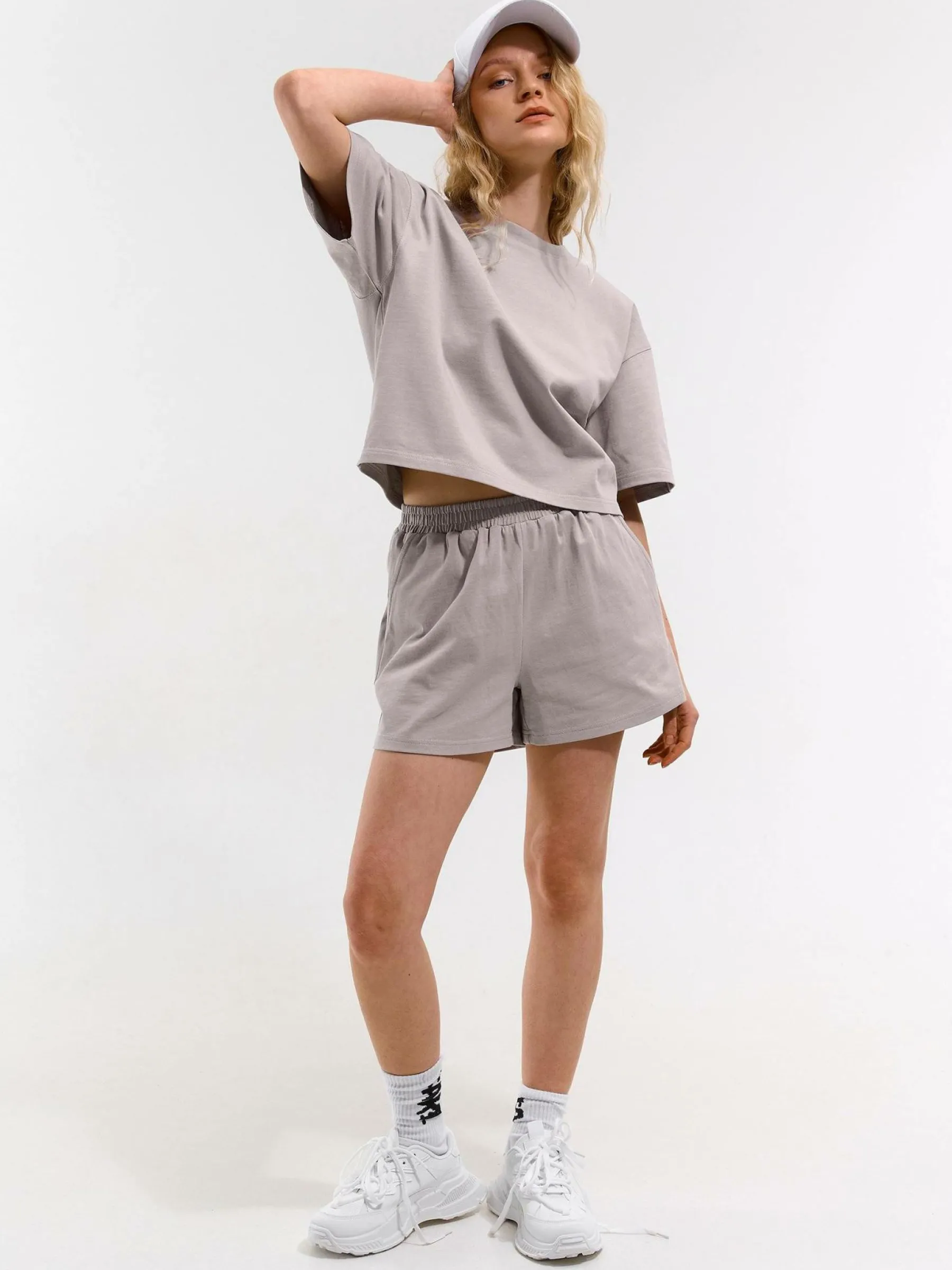 Zdjęcia z modelką mogą nie odpowiadać rzeczywistemu kolorowi produktu.Kolor: szaryKrój: straightTyp: spodenkiDługo…