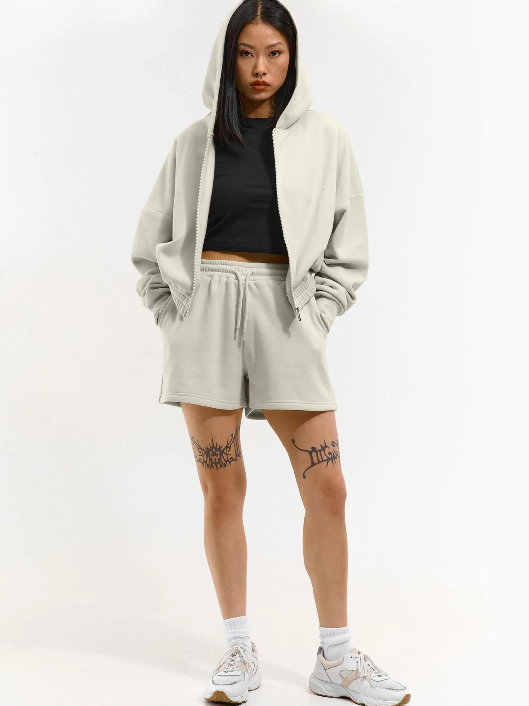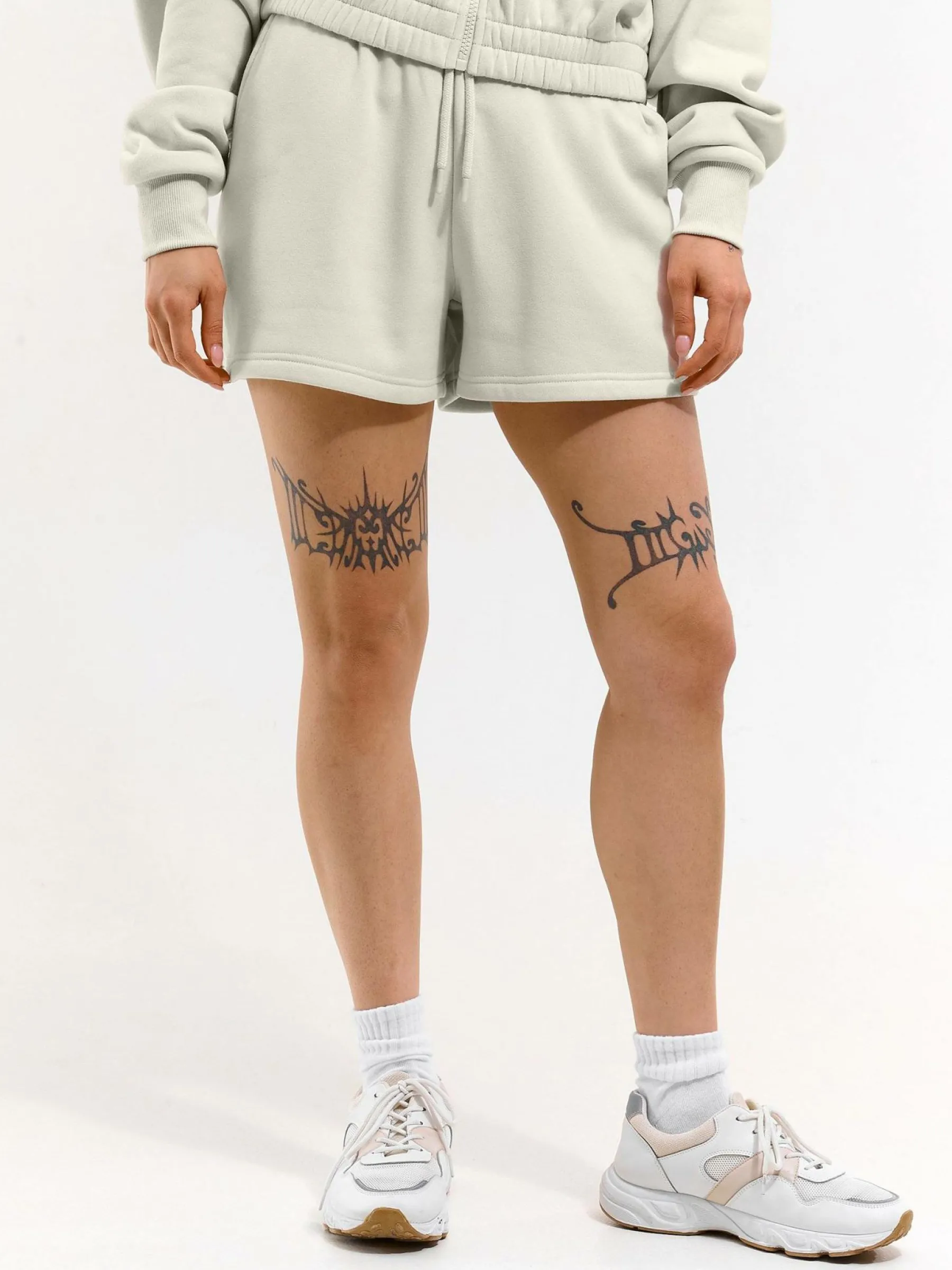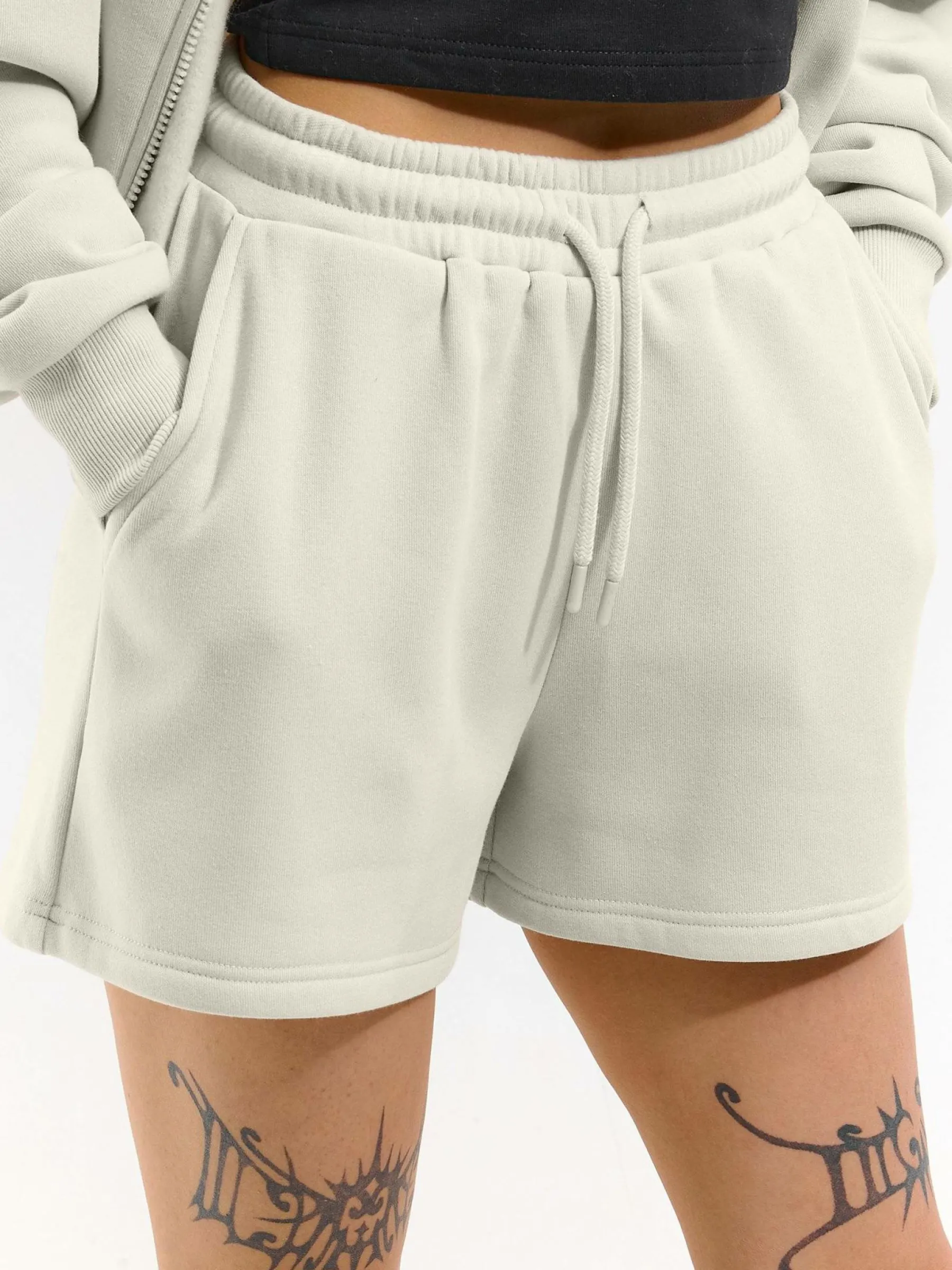 Kolor: beżowyKrój: straightTyp: spodenkiDługość: krótkiPattern style: pojedynczy kolorDetal: ze sznurowaniem, z ki…