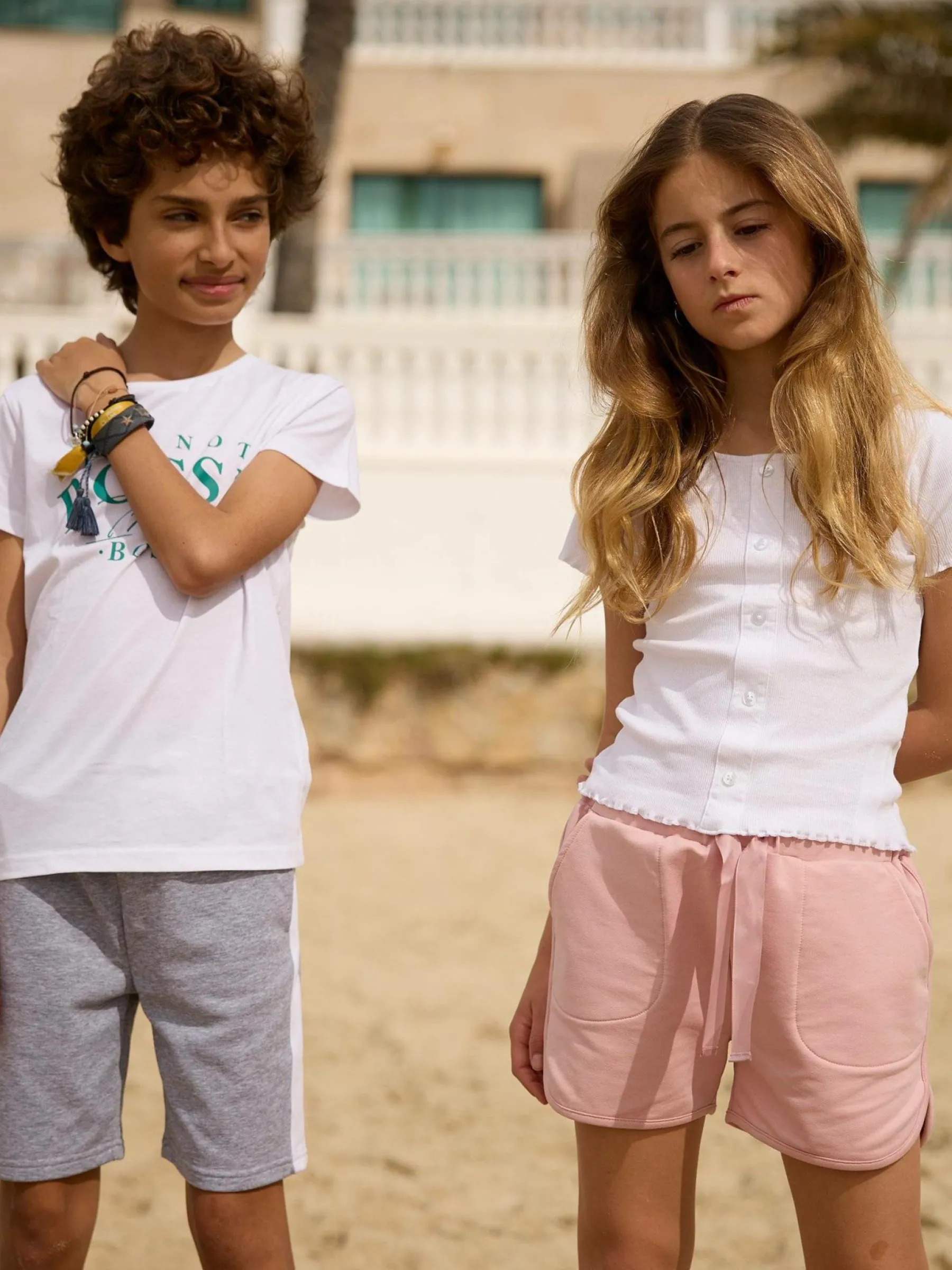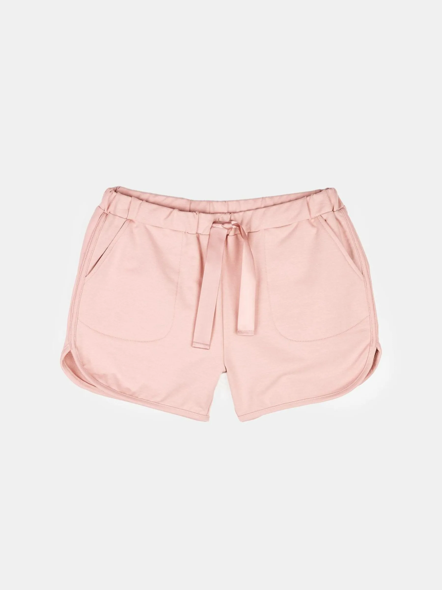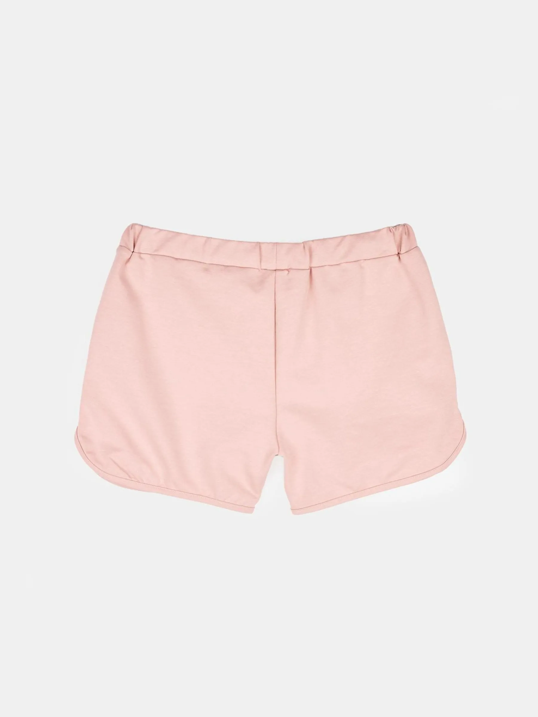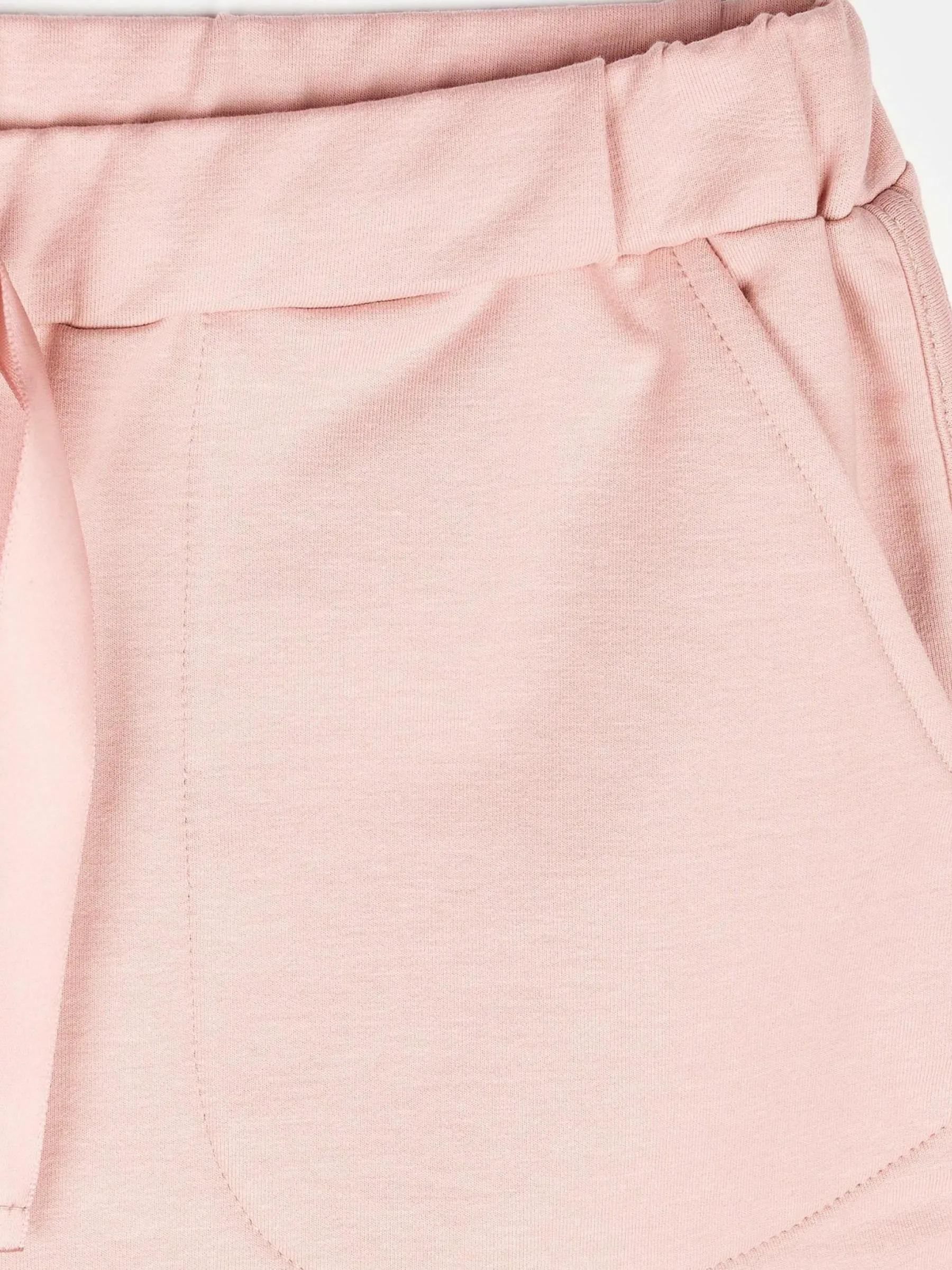 Kolor: różowyKrój: straightTyp: spodenkiDługość: krótkiPattern style: pojedynczy kolorDetal: ze sznurowaniemMater…
