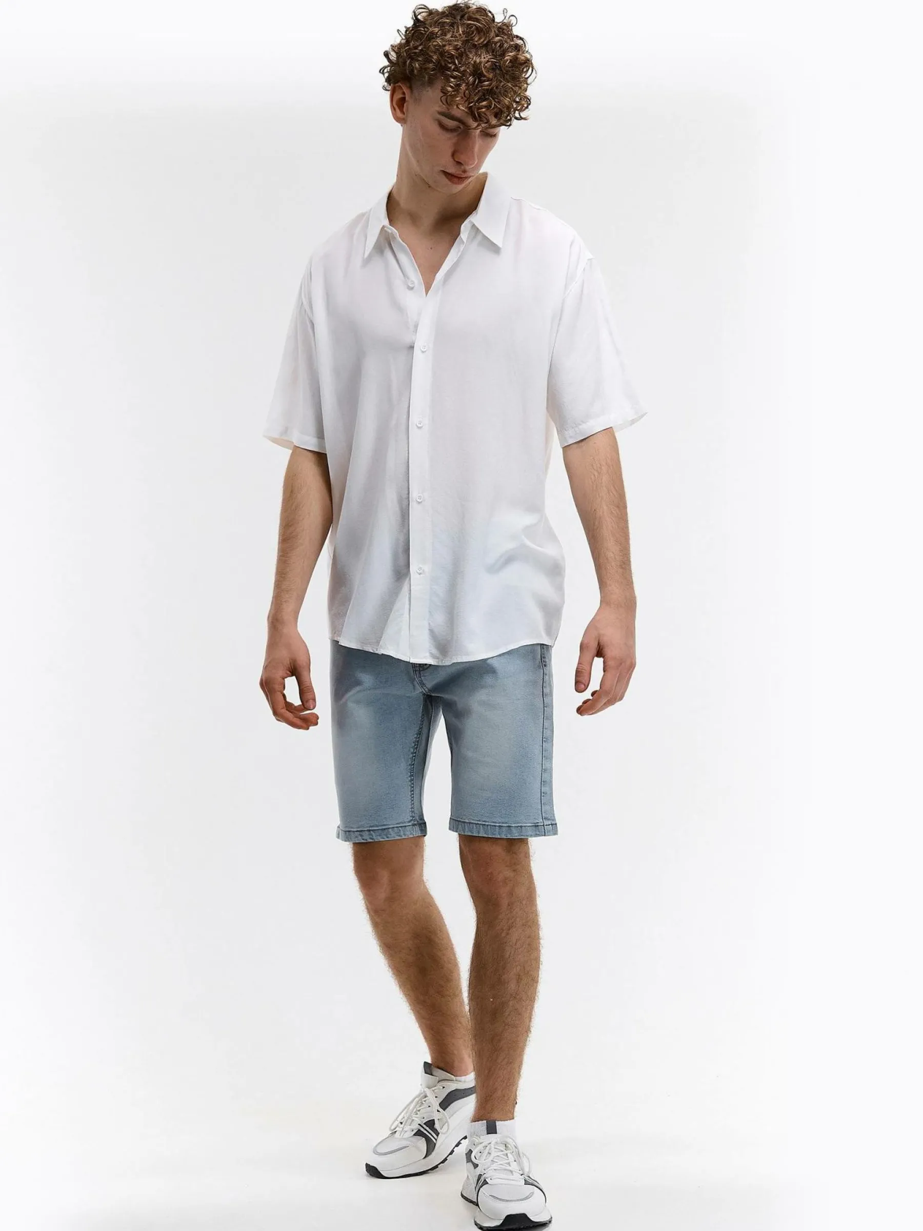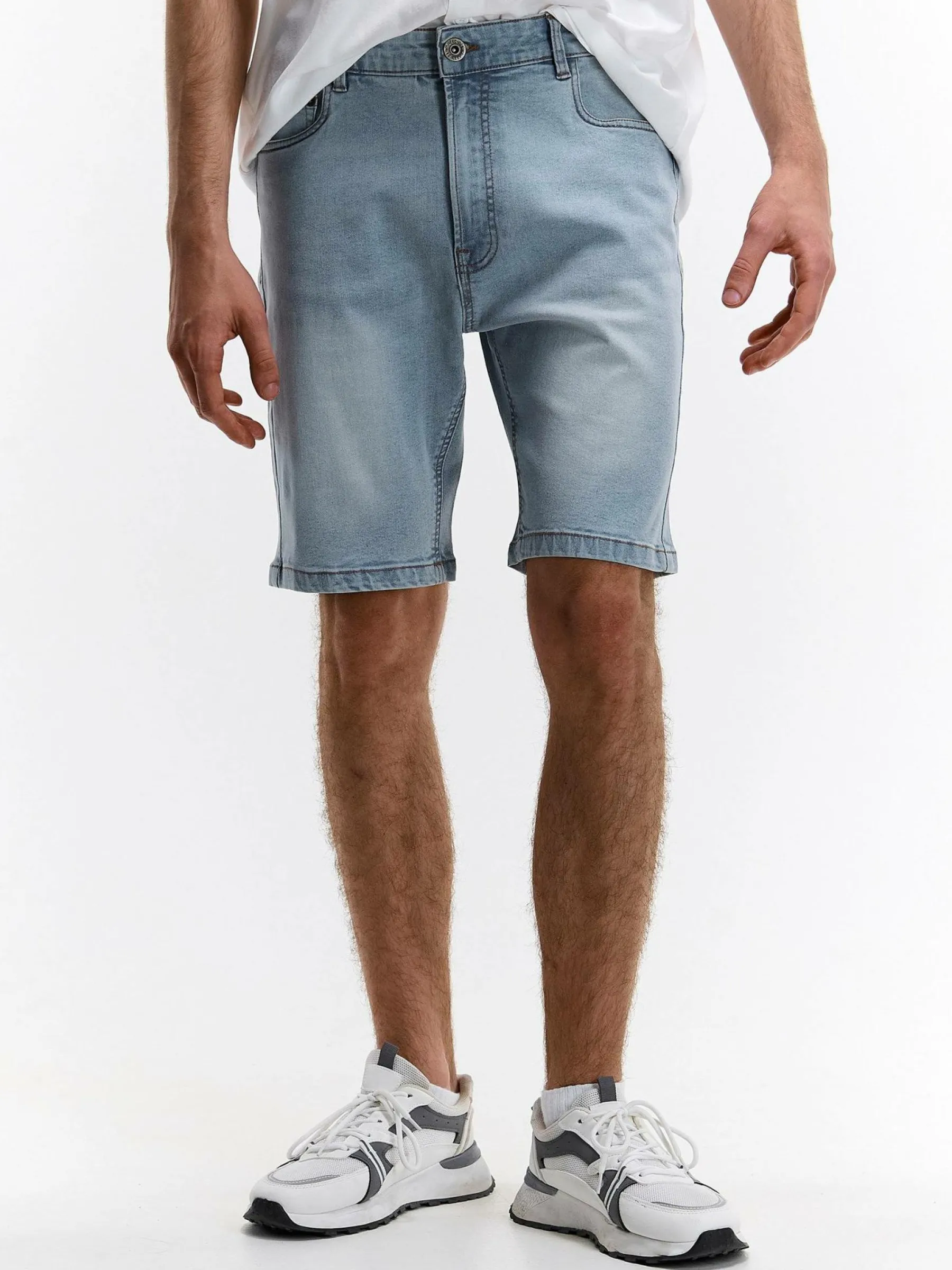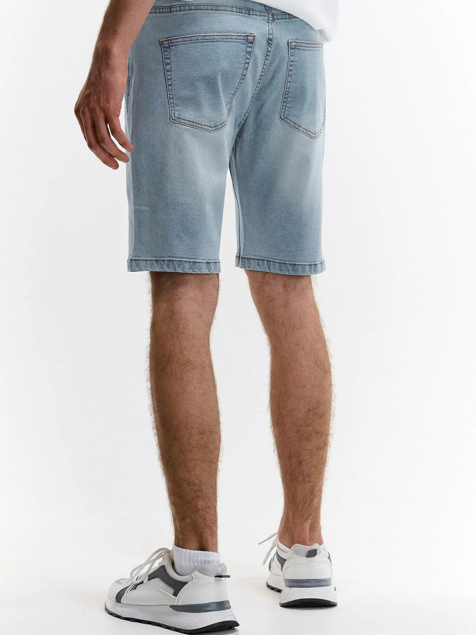 Kolor: niebieskiKrój: straightTyp: spodenkiDługość: krótkiPattern style: pojedynczy kolorDetal: na zamek, z kieszen…