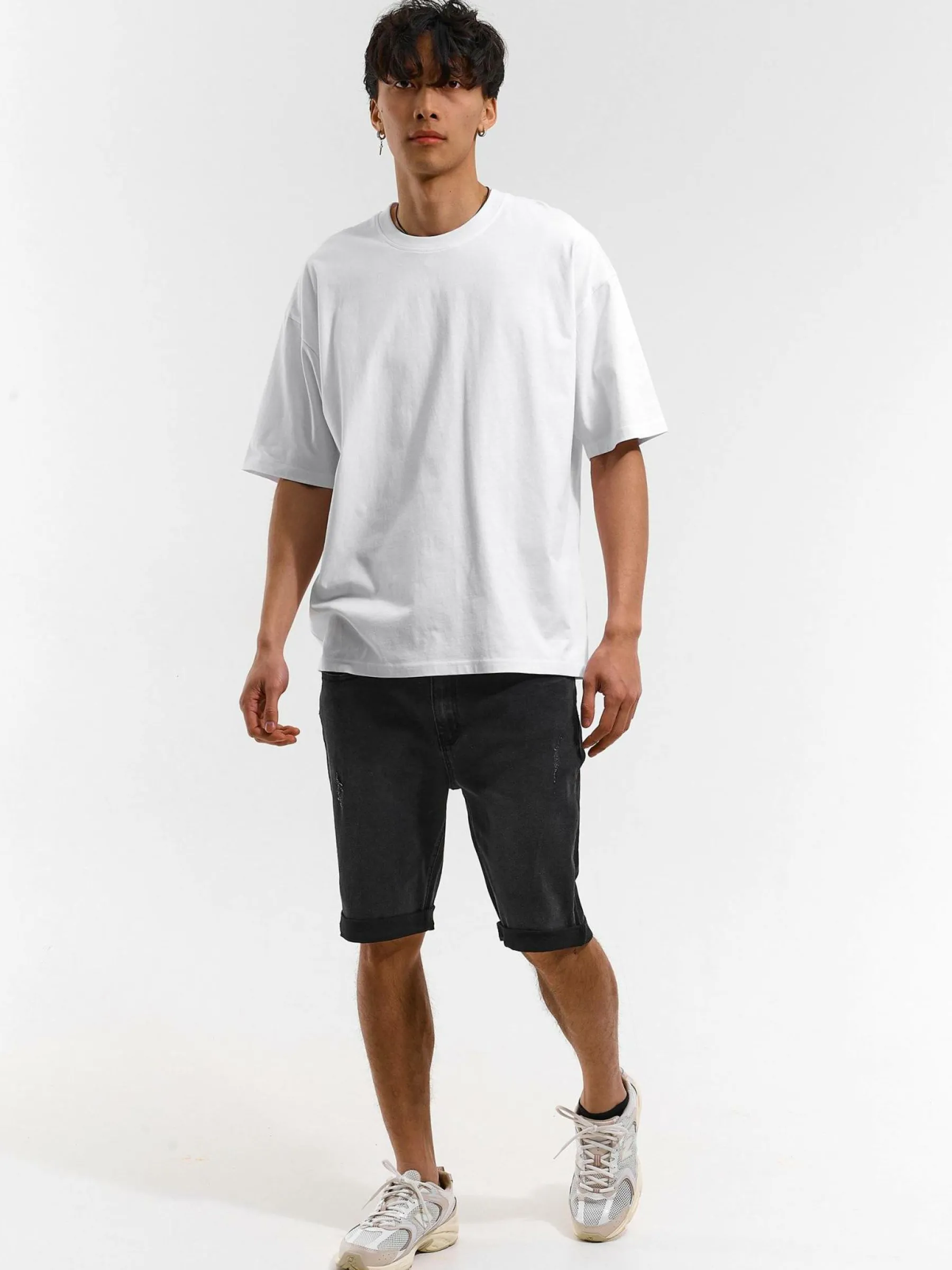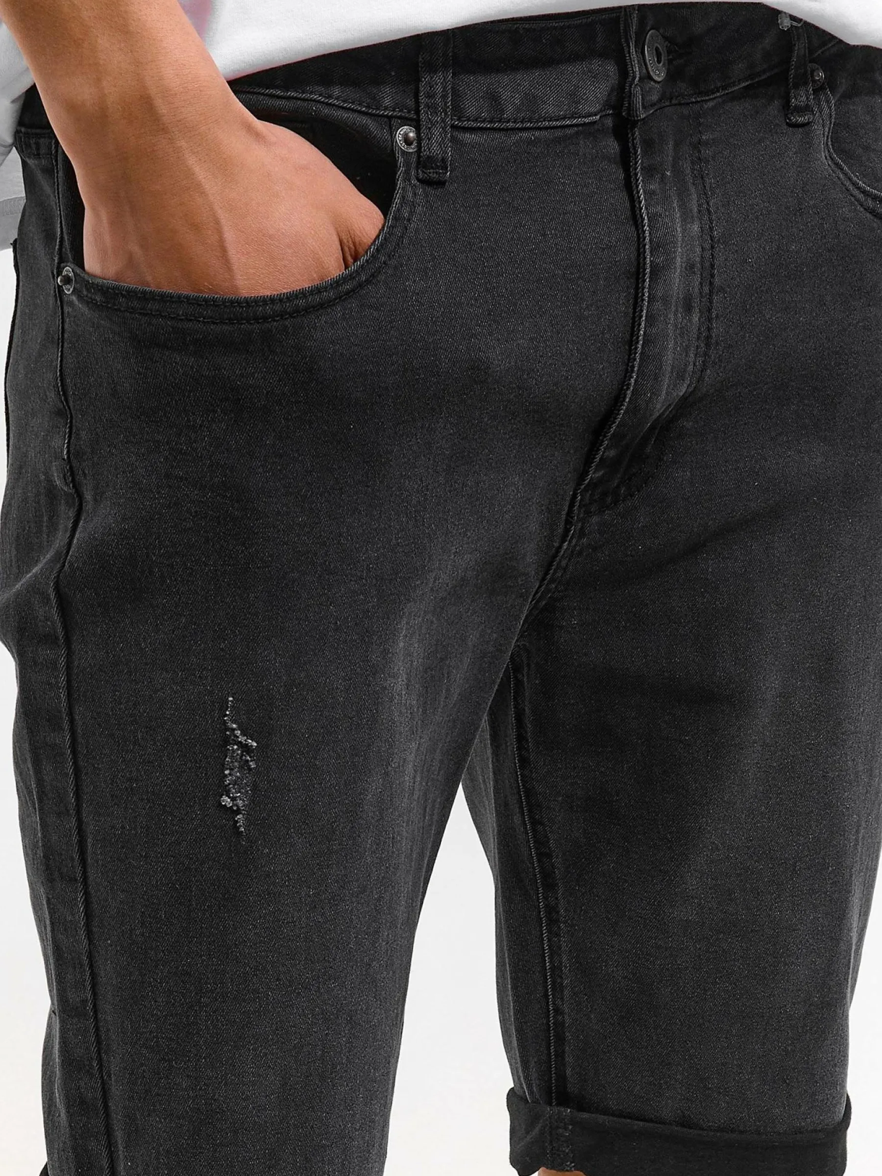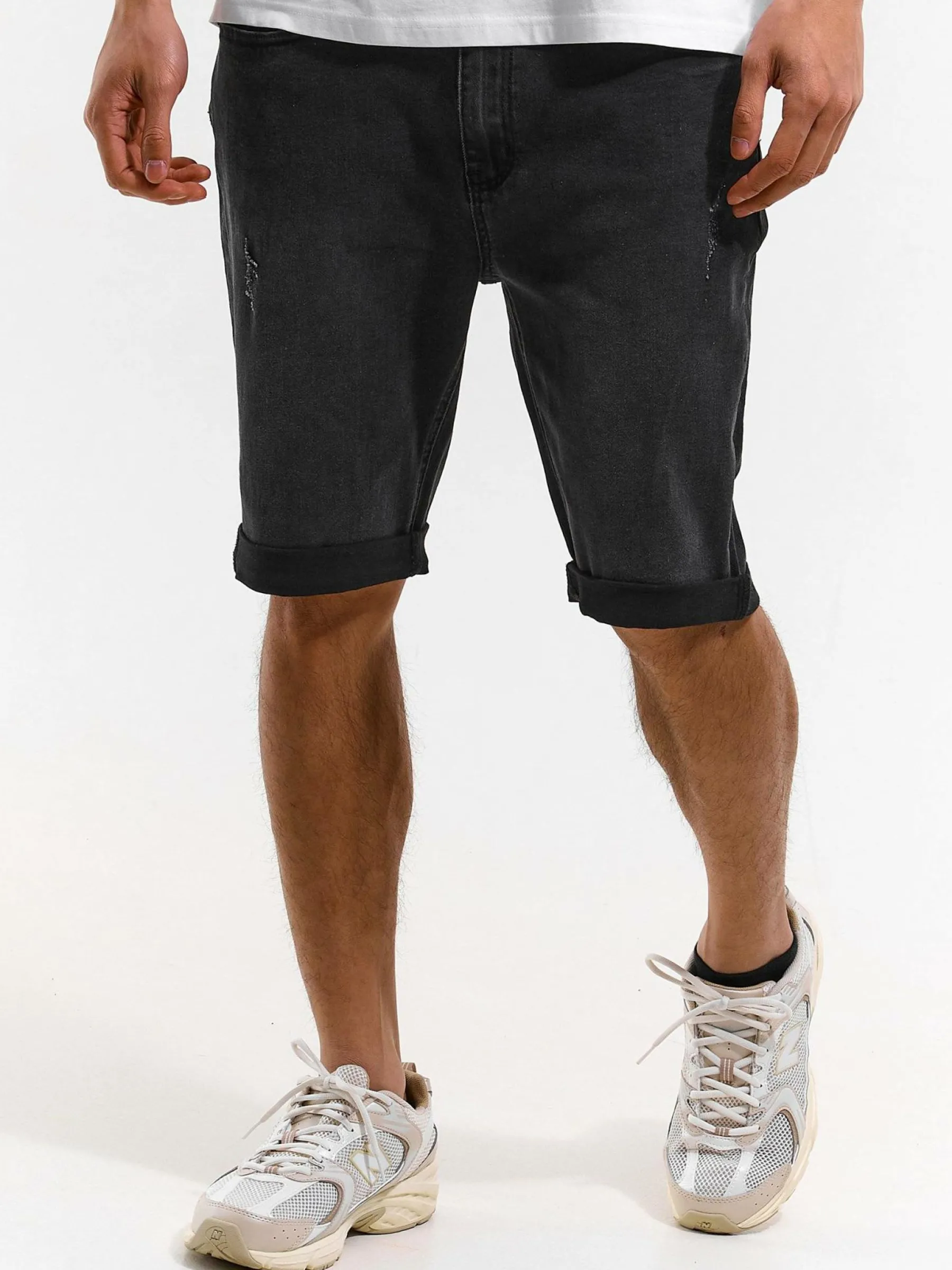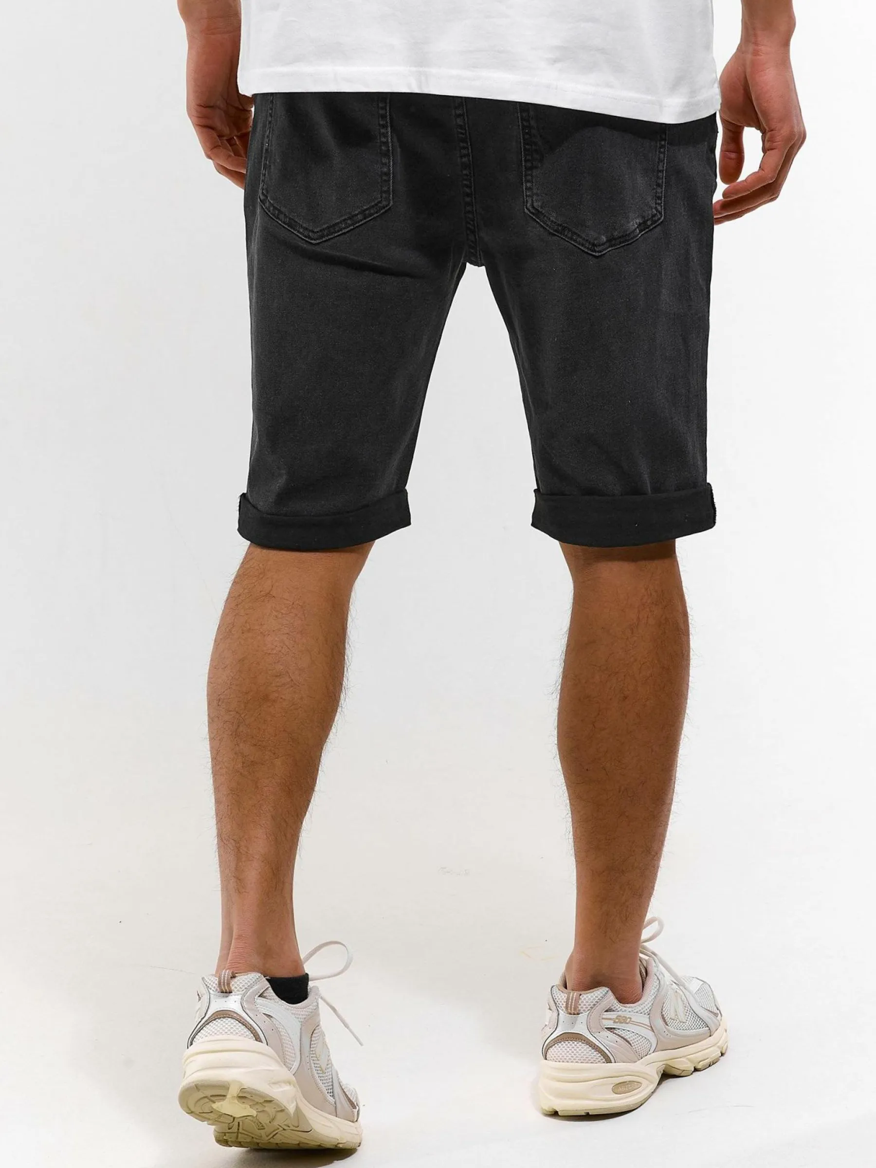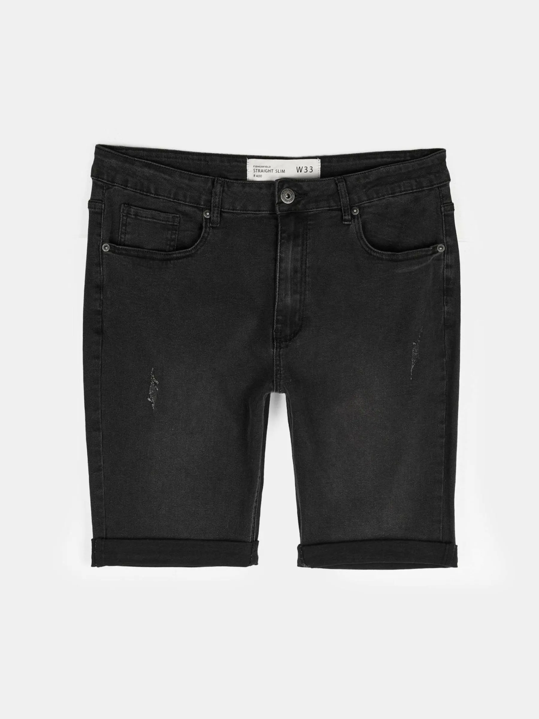 Kolor: czarnyKrój: prosty slimTyp: spodenkiDługość: krótkiPattern style: pojedynczy kolorDetal: na zamekMateriał: …