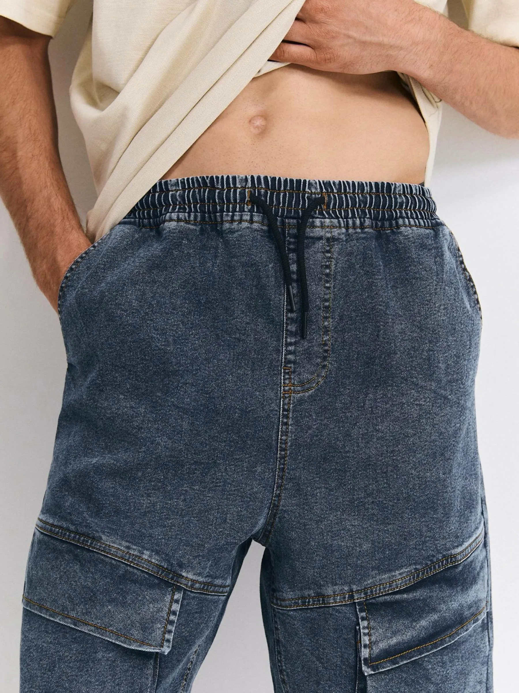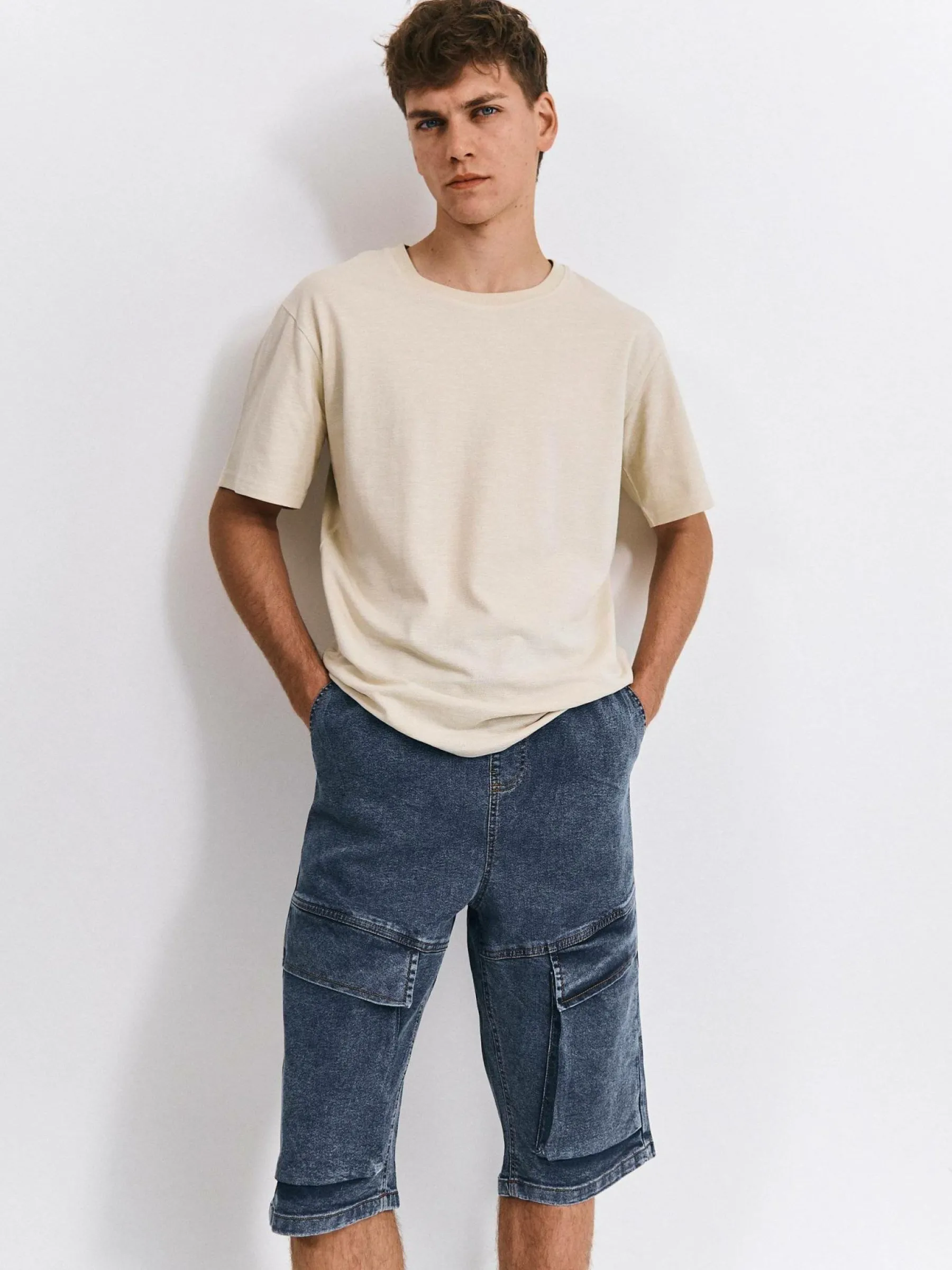 Kolor: granatowyTyp: spodenkiDługość: krótkiPattern style: pojedynczy kolorDetal: z kieszeniami, ze sznurowaniemMate…