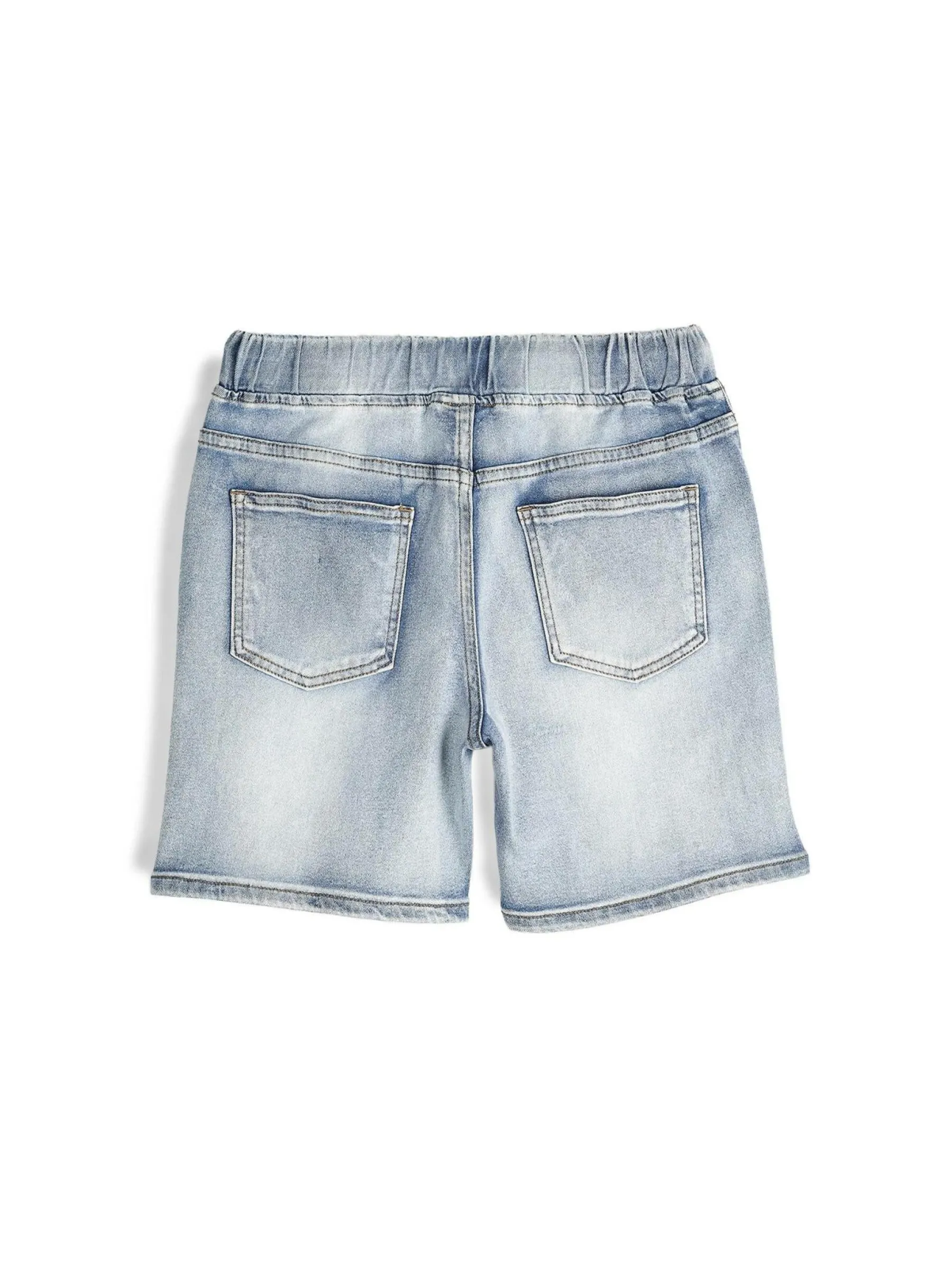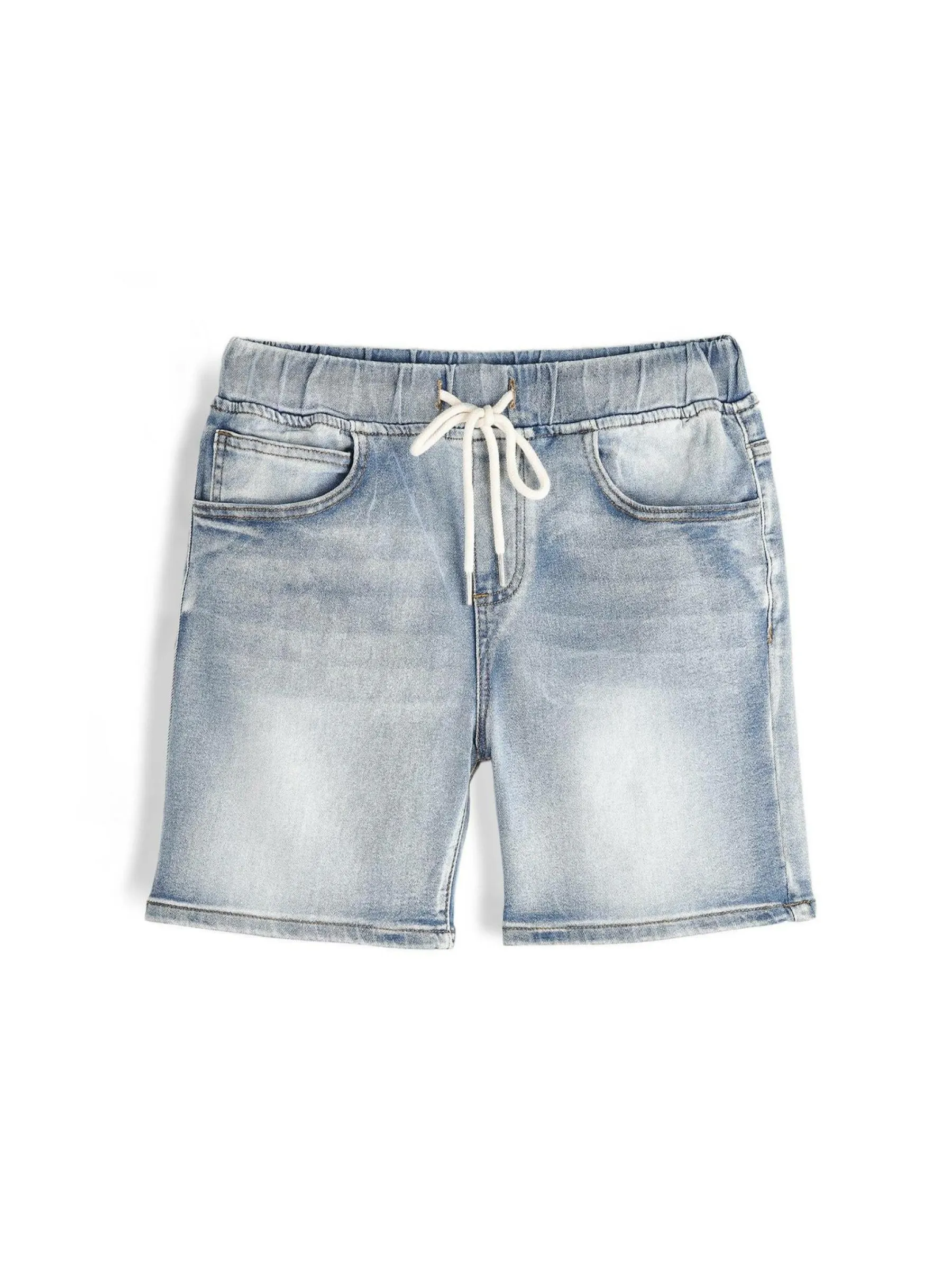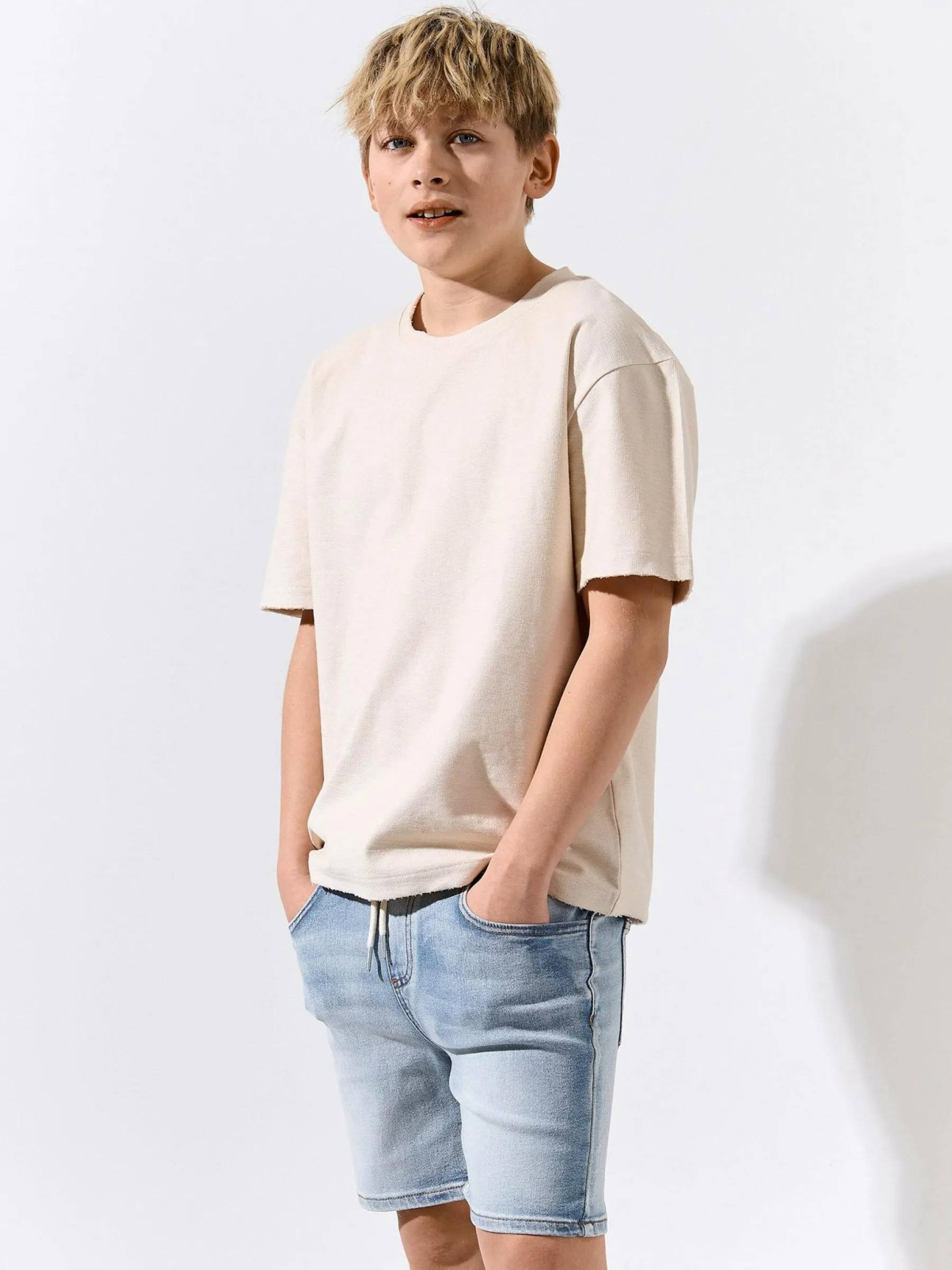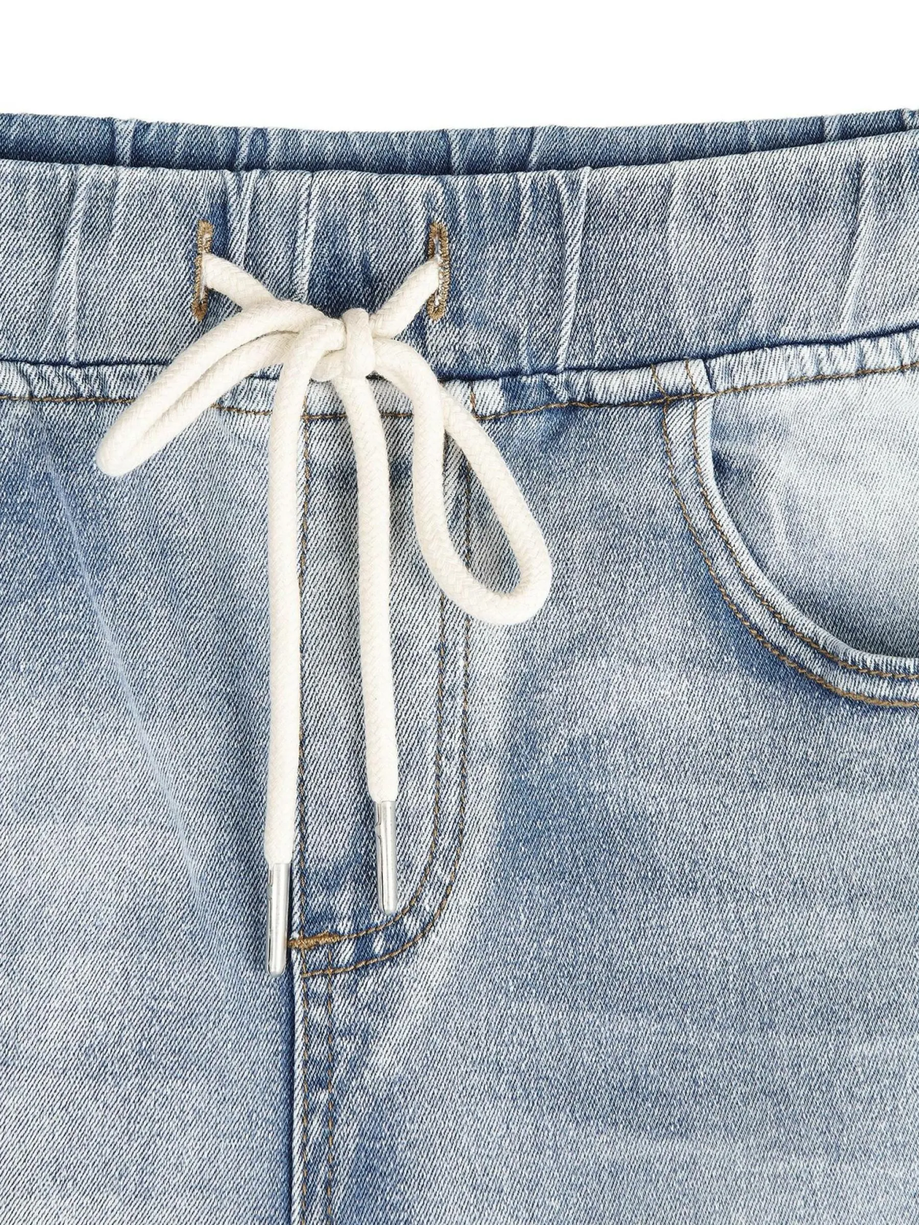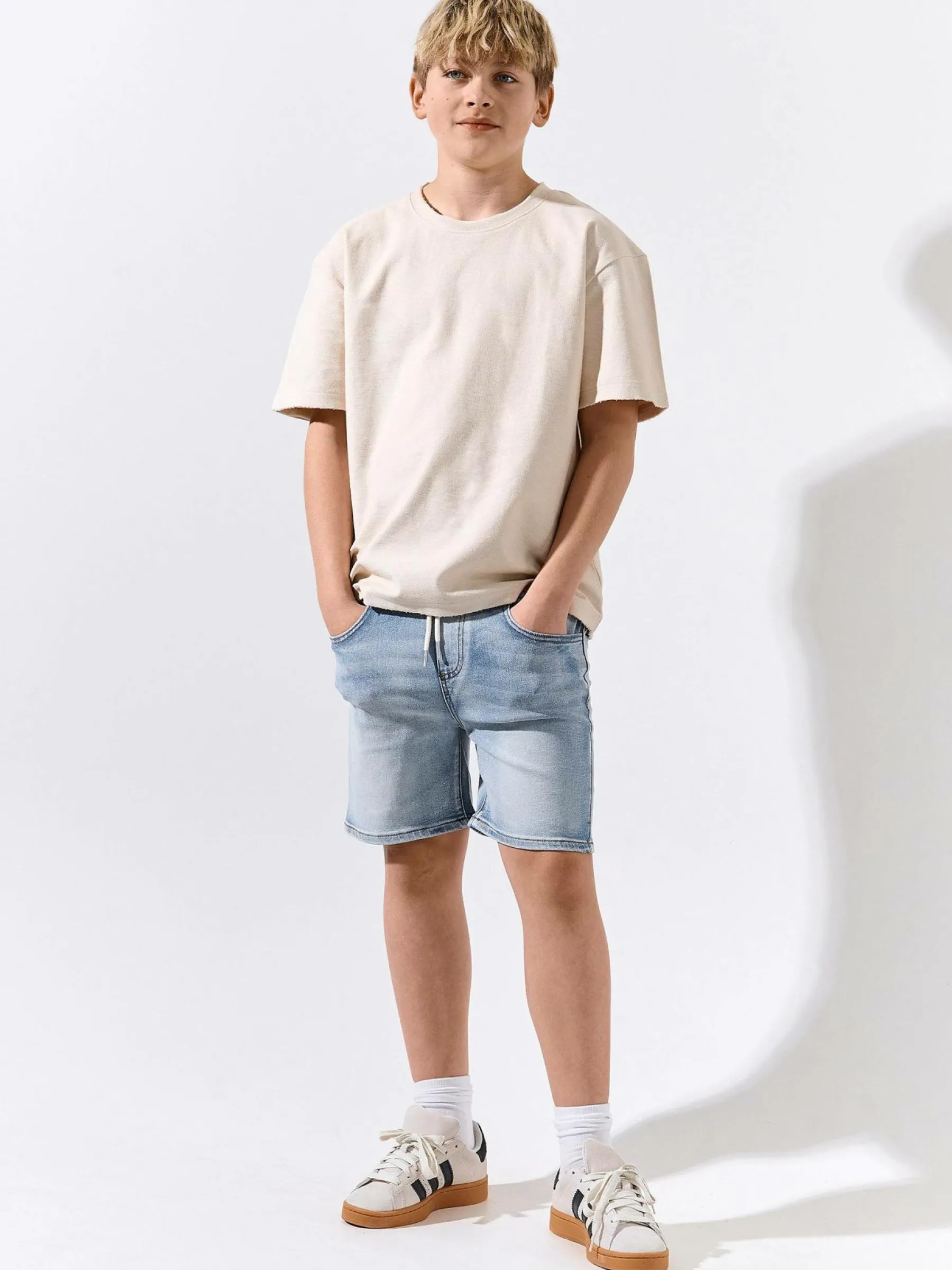 Kolor: niebieskiKrój: straightTyp: spodenkiDługość: krótkiPattern style: pojedynczy kolorDetal: ze sznurowaniem, z …
