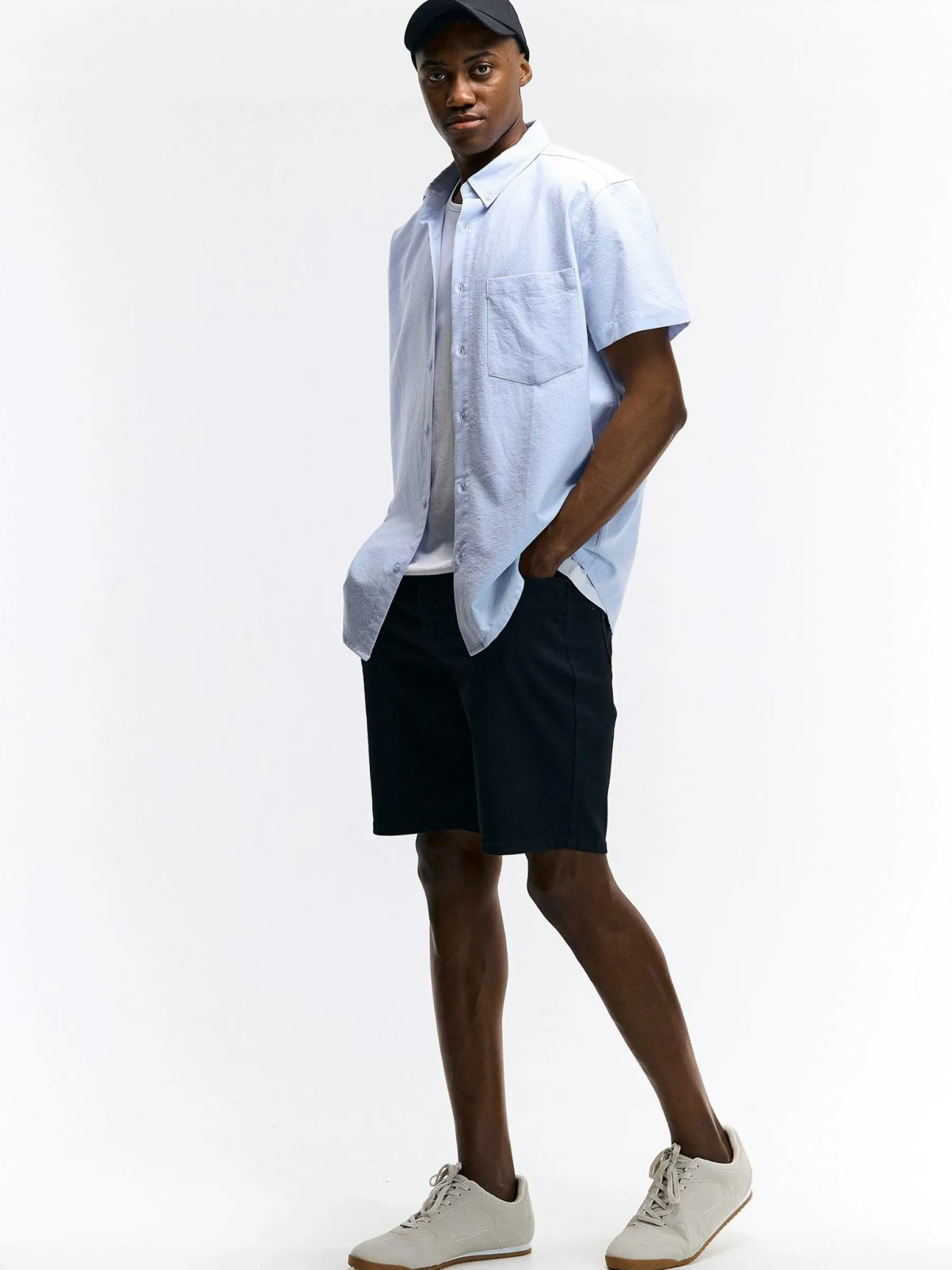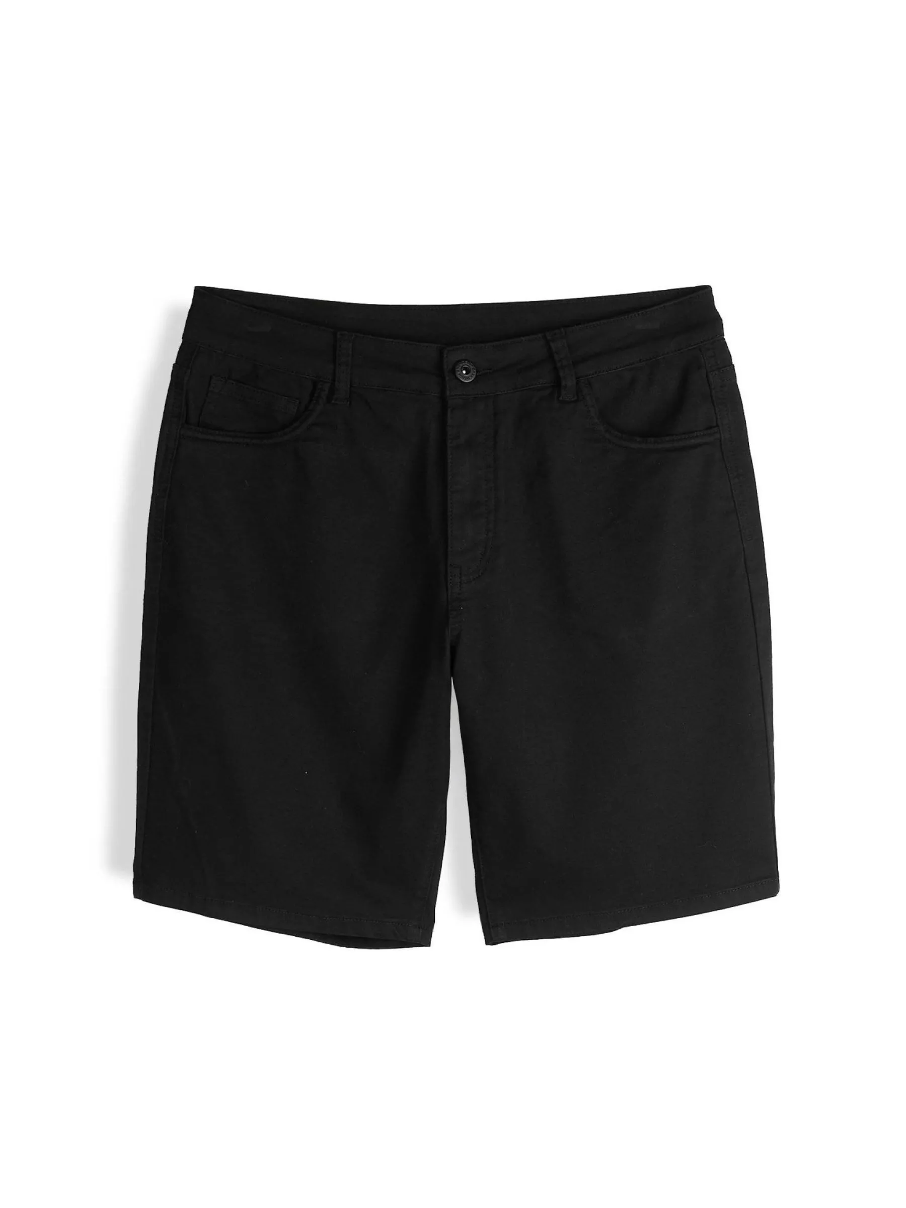 Kolor: czarnyKrój: straightTyp: spodenkiDługość: krótkiPattern style: pojedynczy kolorDetal: na zamek, z kieszeniam…