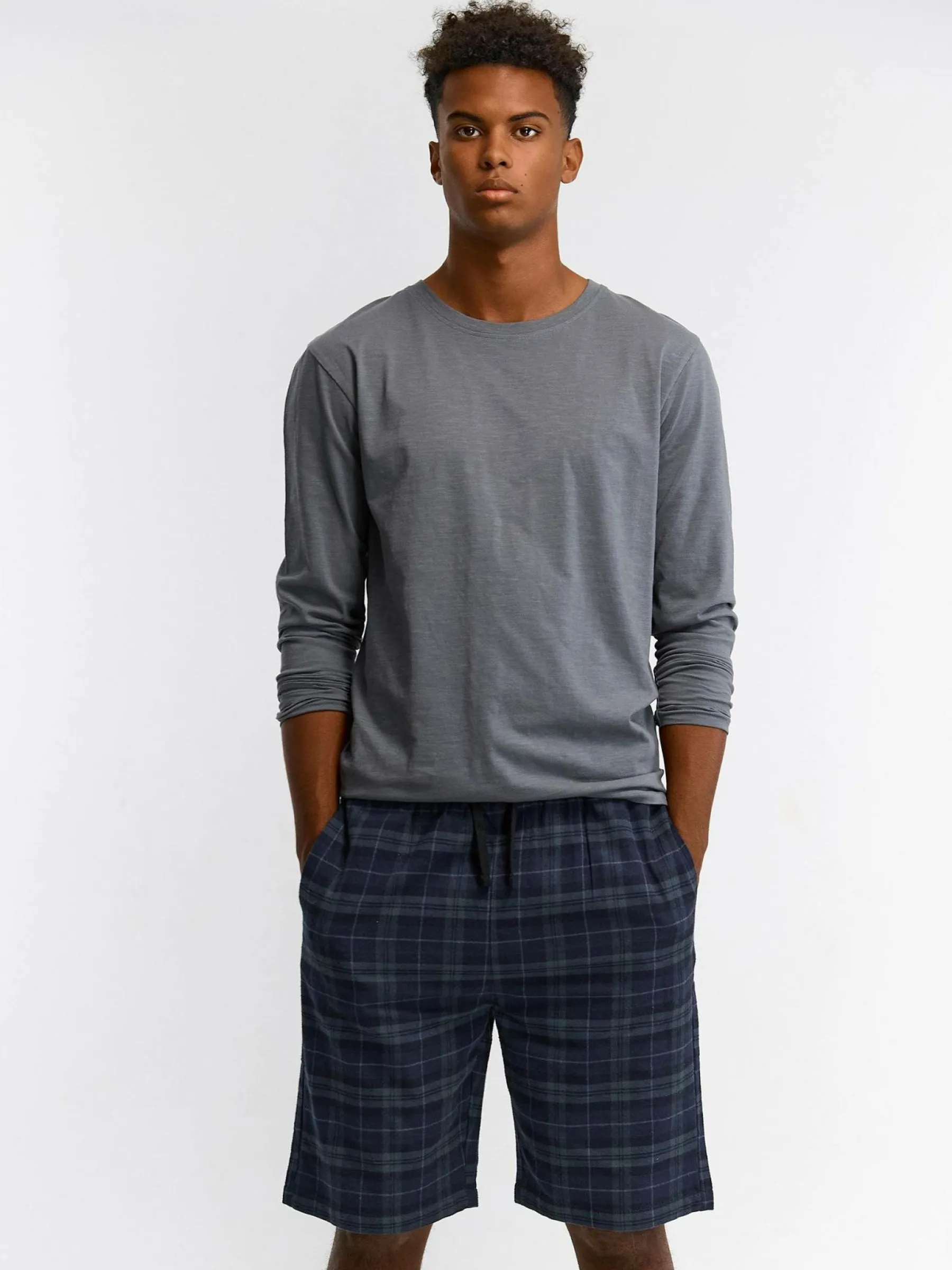Kolor: granatowyKrój: regularTyp: piżamaDługość: krótkiPattern style: w krateDetal: ze sznurowaniem, z kieszeniami…