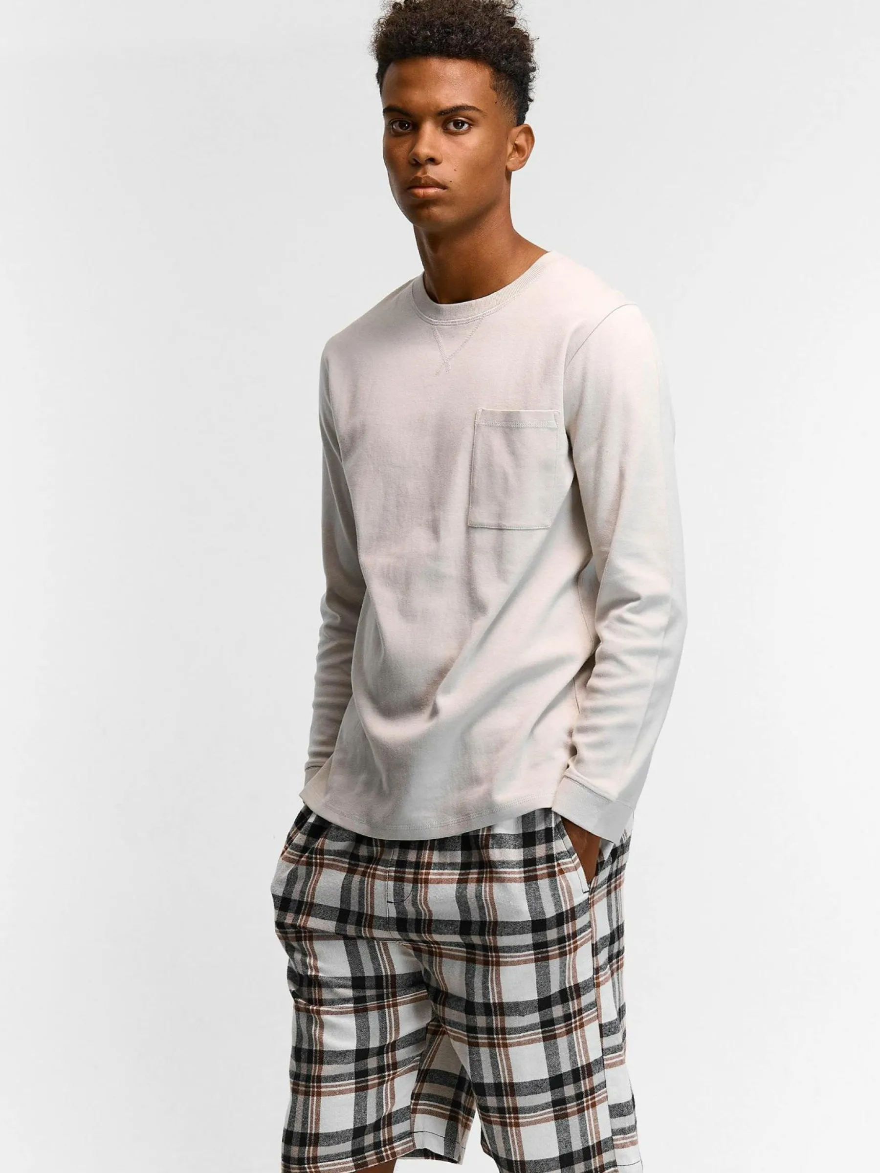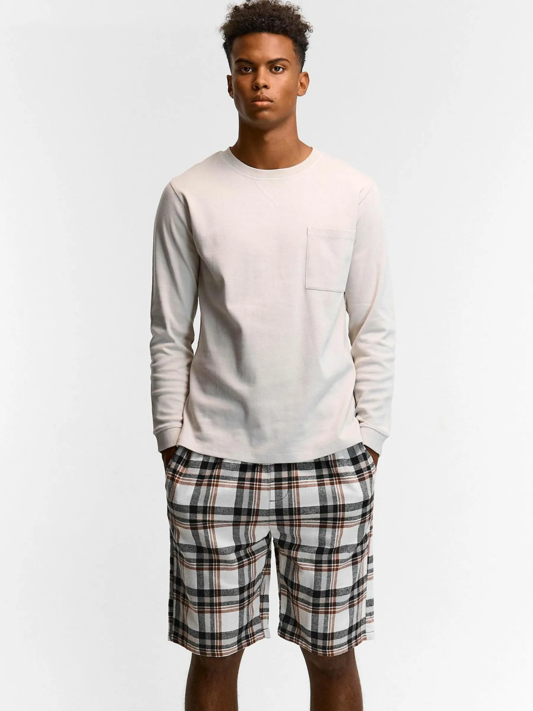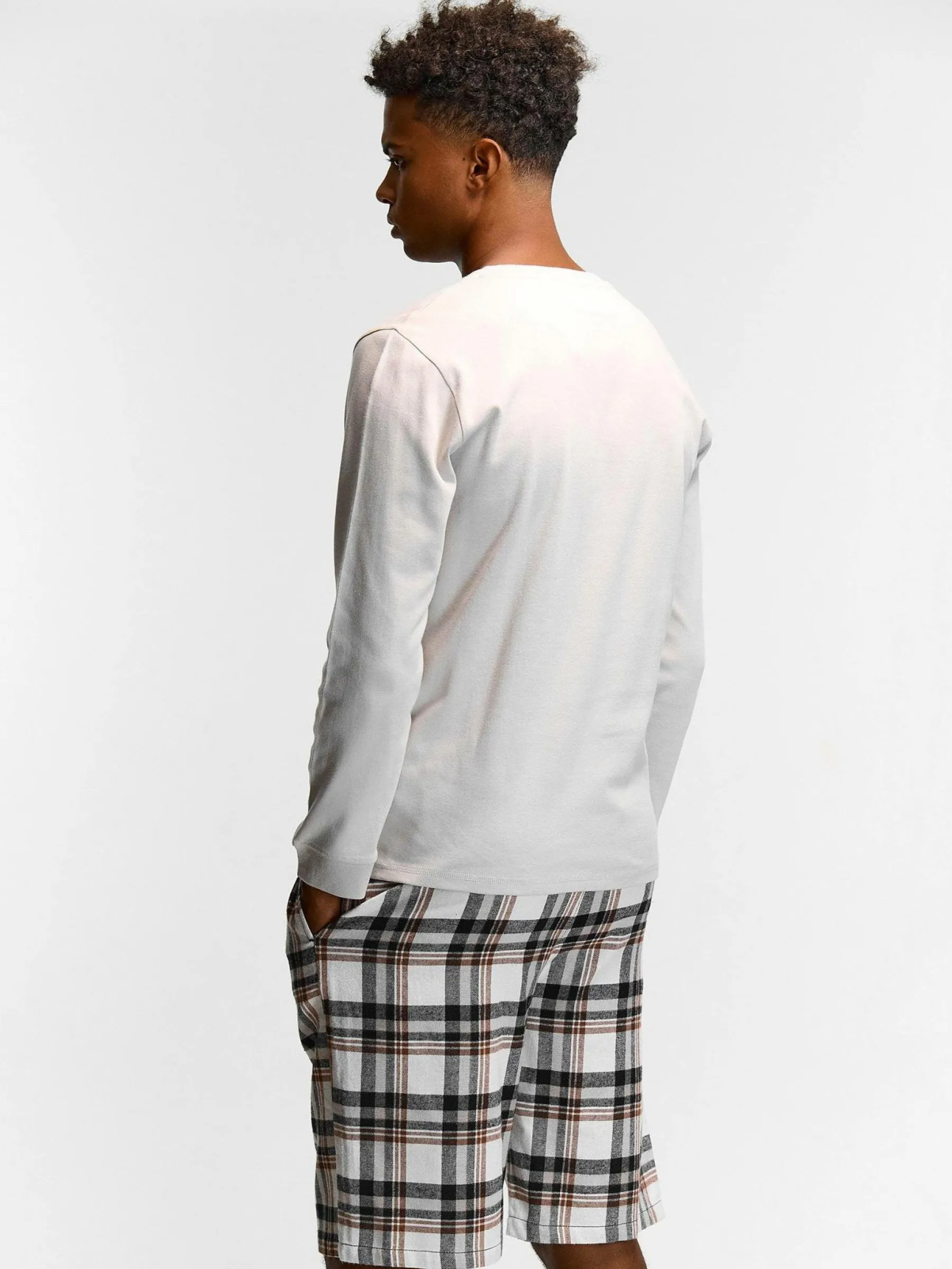 Kolor: białyKrój: regularTyp: piżamaDługość: krótkiPattern style: w krateDetal: ze sznurowaniem, z kieszeniamiMat…