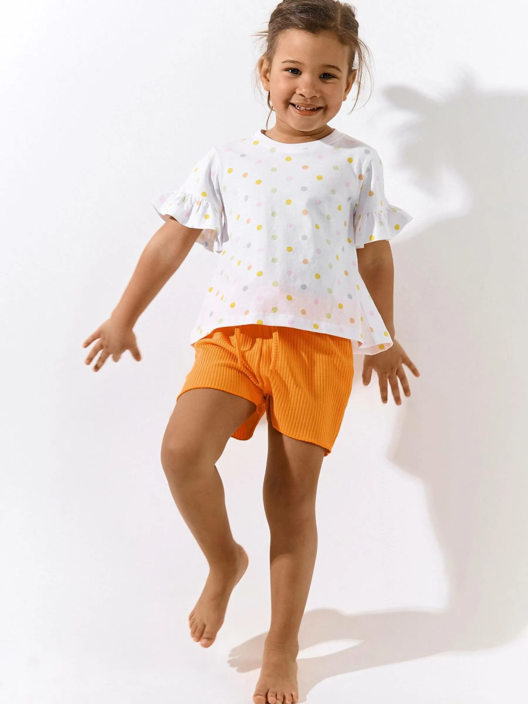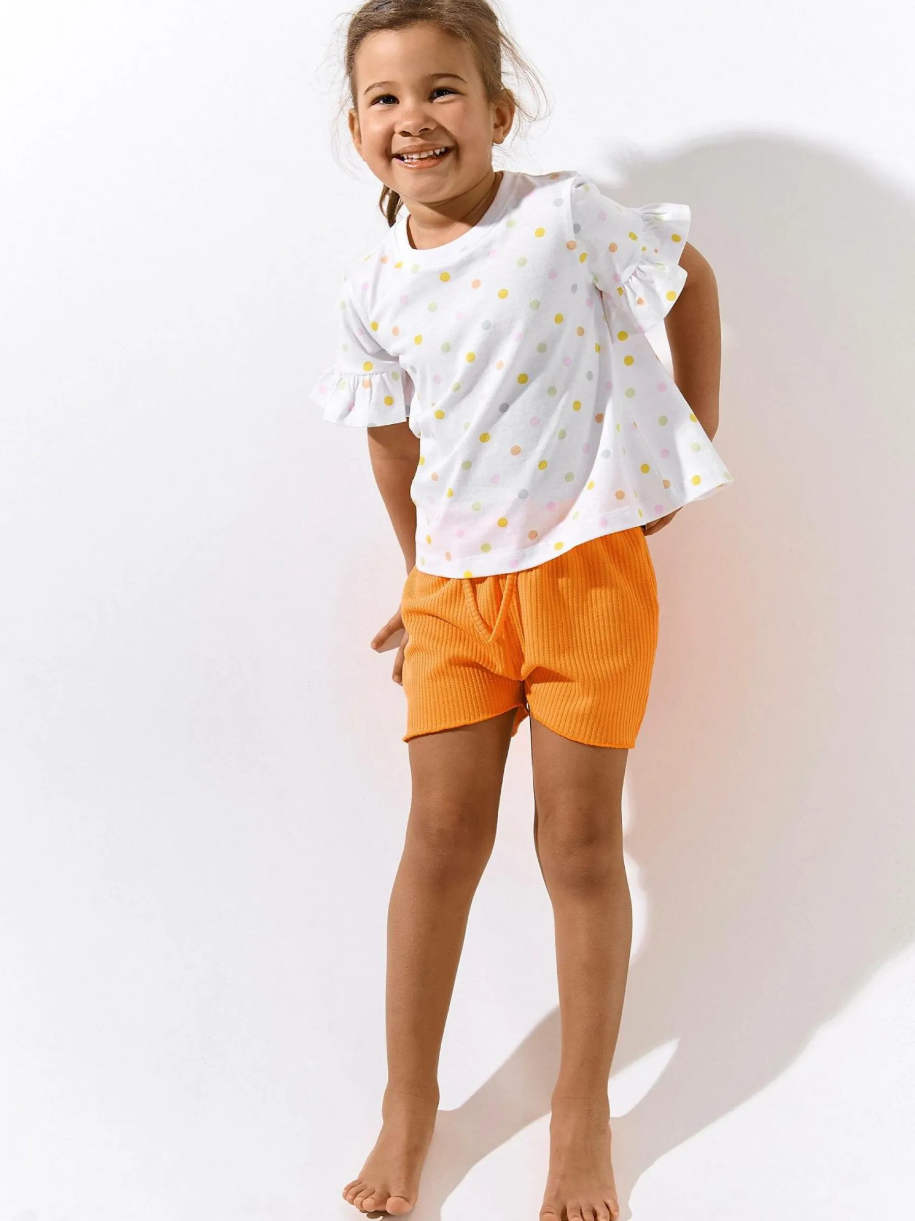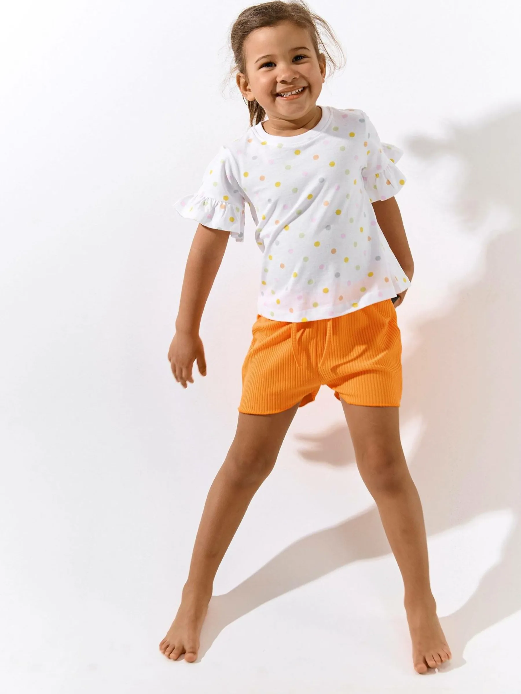 Kolor: pomarańczowyKrój: straightTyp: spodenkiDługość: krótkiPattern style: pojedynczy kolor, żebrowanyDetal: ze …
