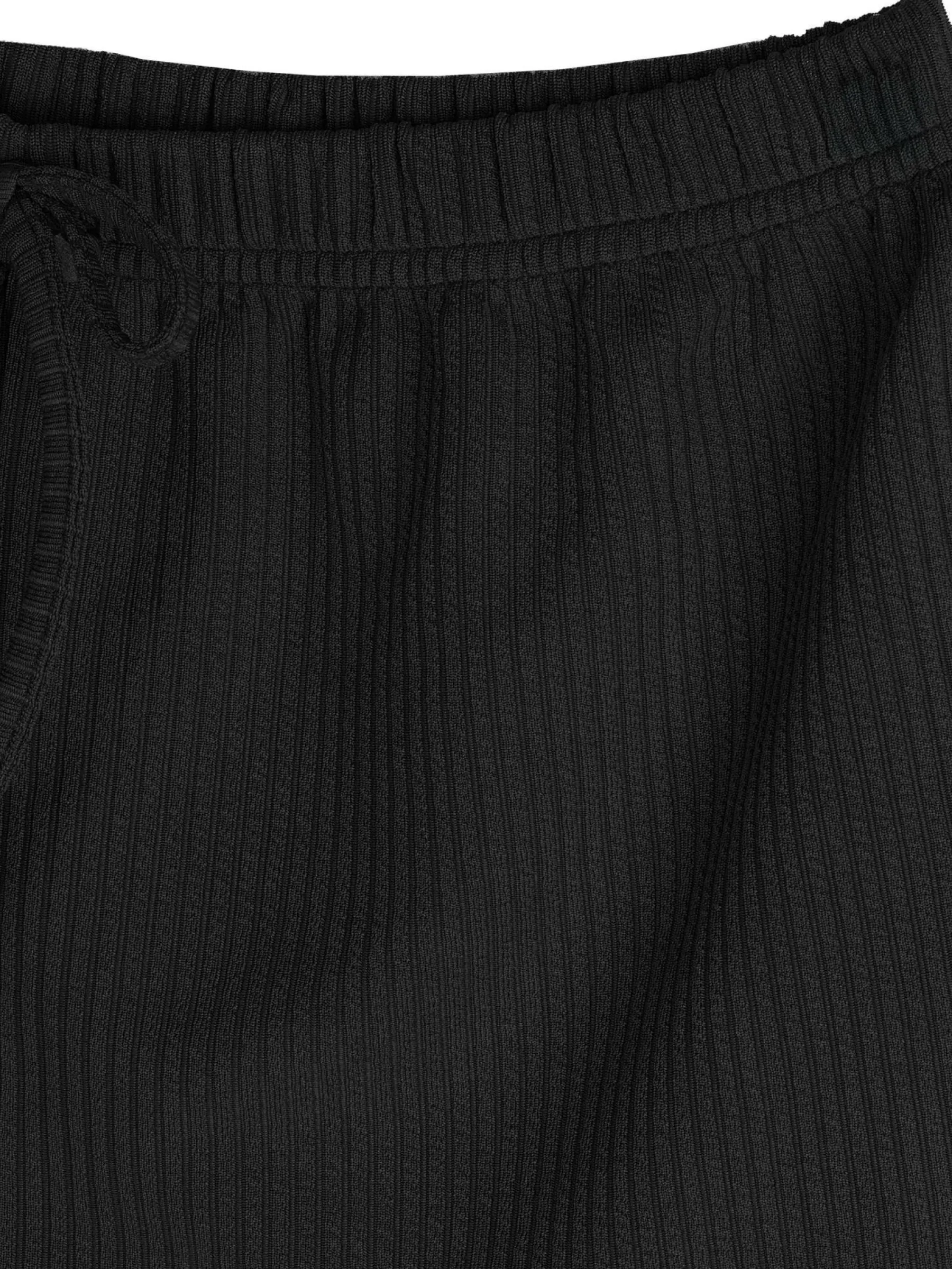 Kolor: czarnyKrój: straightTyp: spodenkiDługość: krótkiPattern style: pojedynczy kolor, żebrowanyDetal: ze sznurow…