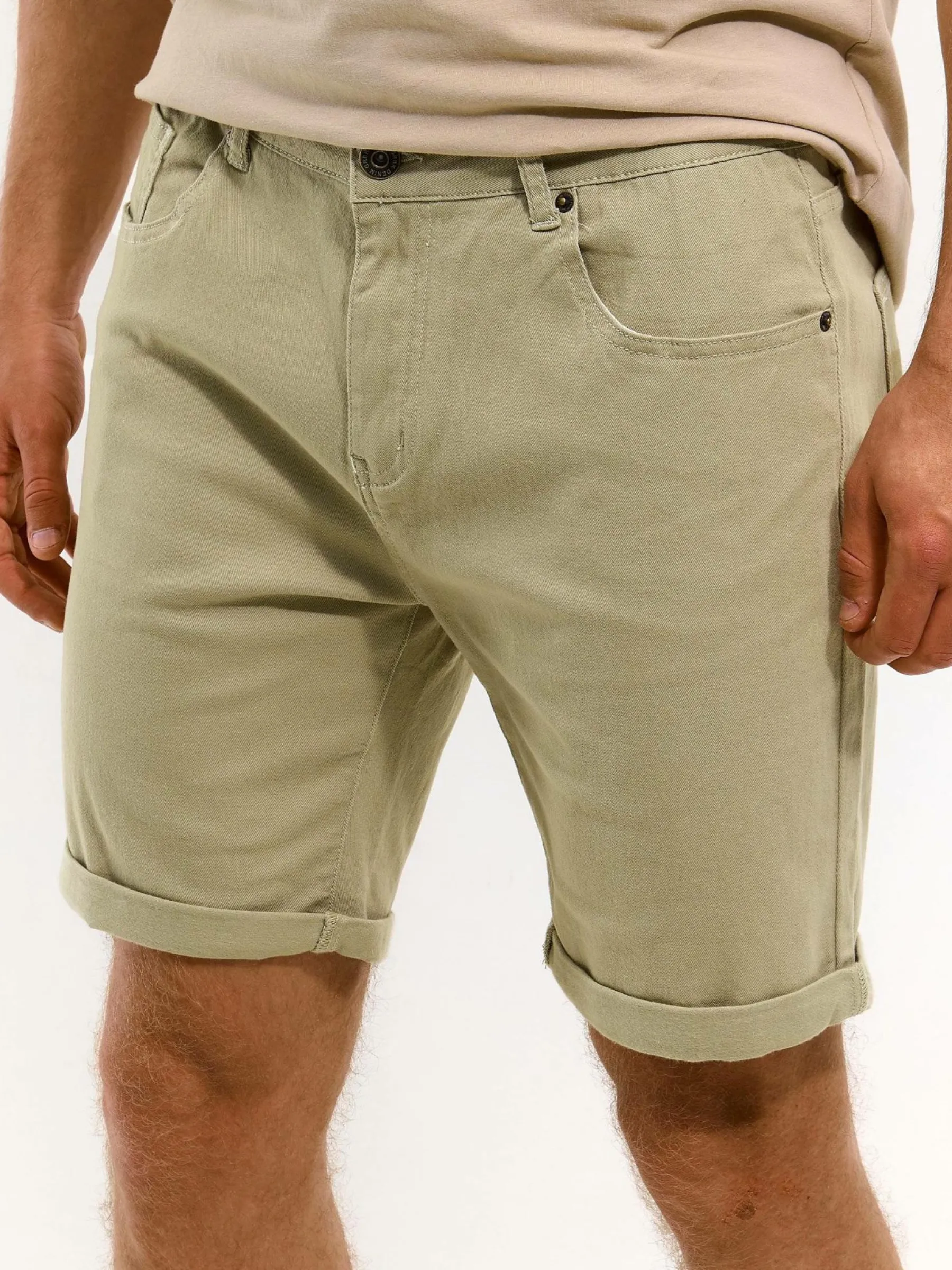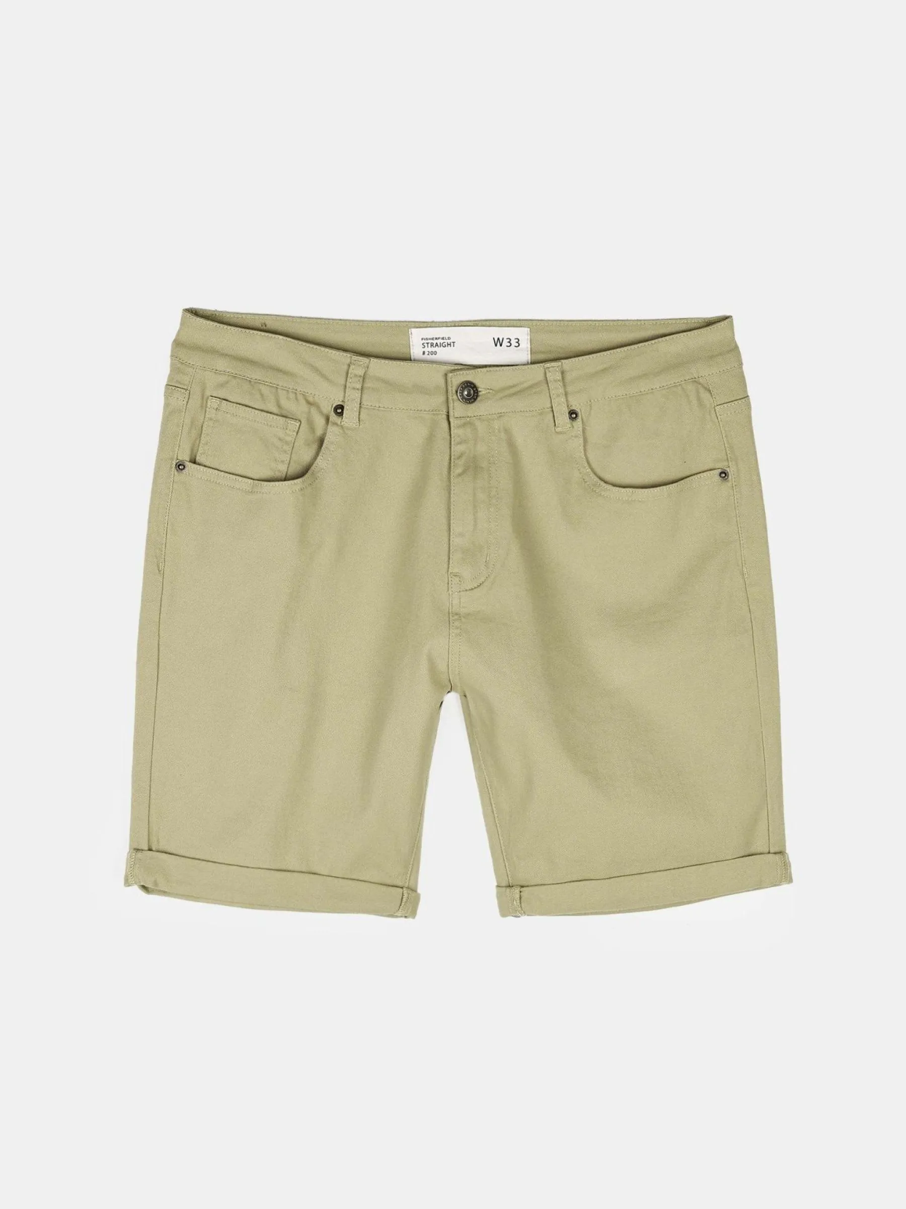 Kolor: zielonyKrój: straightTyp: spodenkiDługość: krótkiPattern style: pojedynczy kolorDetal: z kieszeniami, na zam…