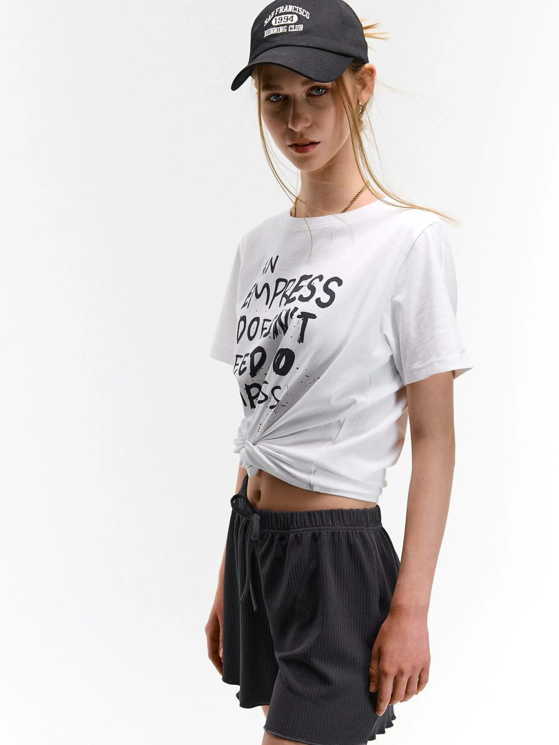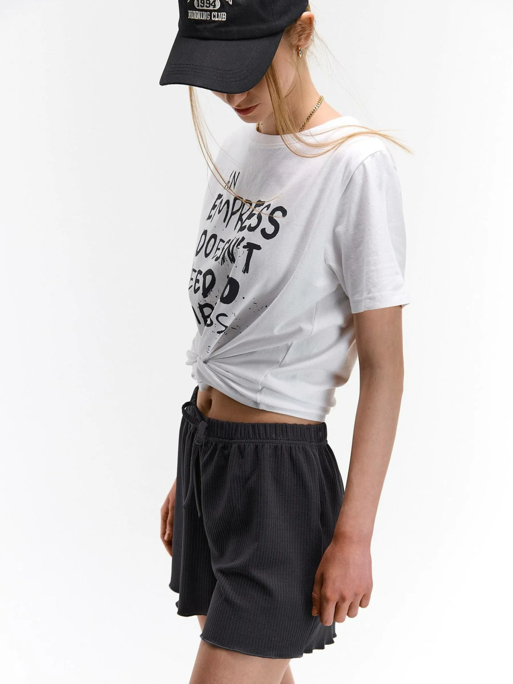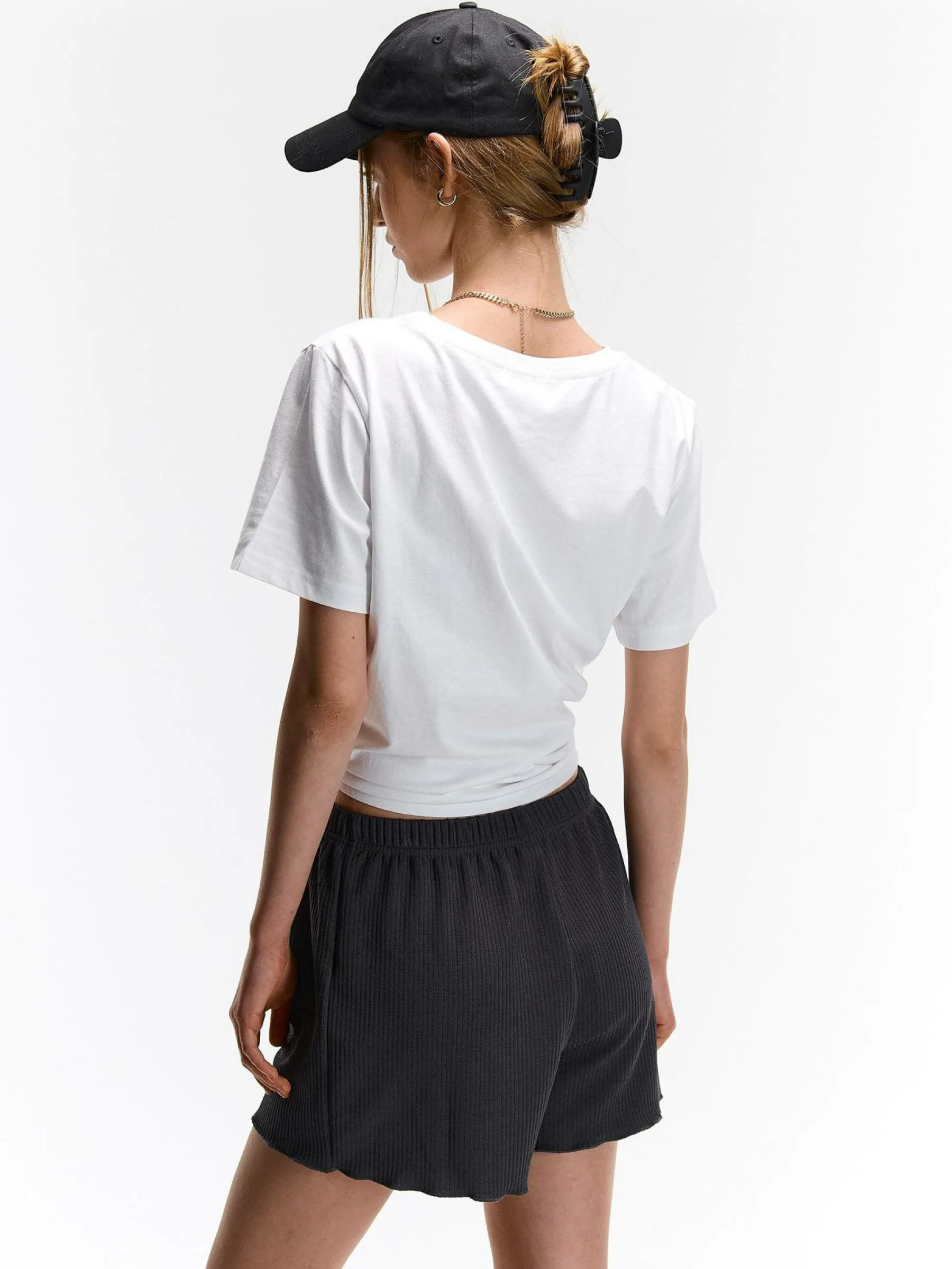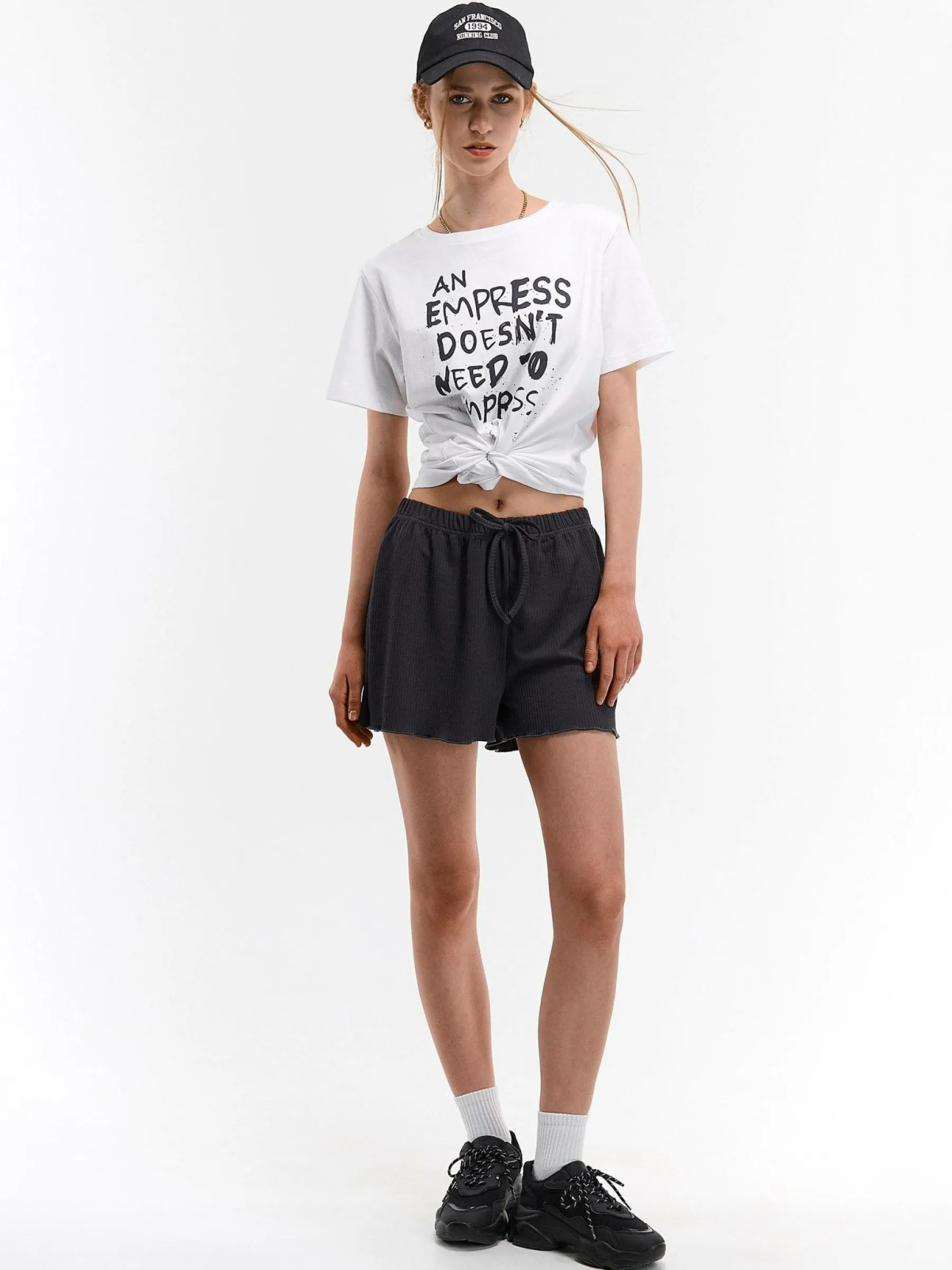 Kolor: szaryKrój: straightTyp: spodenkiDługość: krótkiPattern style: pojedynczy kolor, żebrowanyDetal: ze sznurowa…
