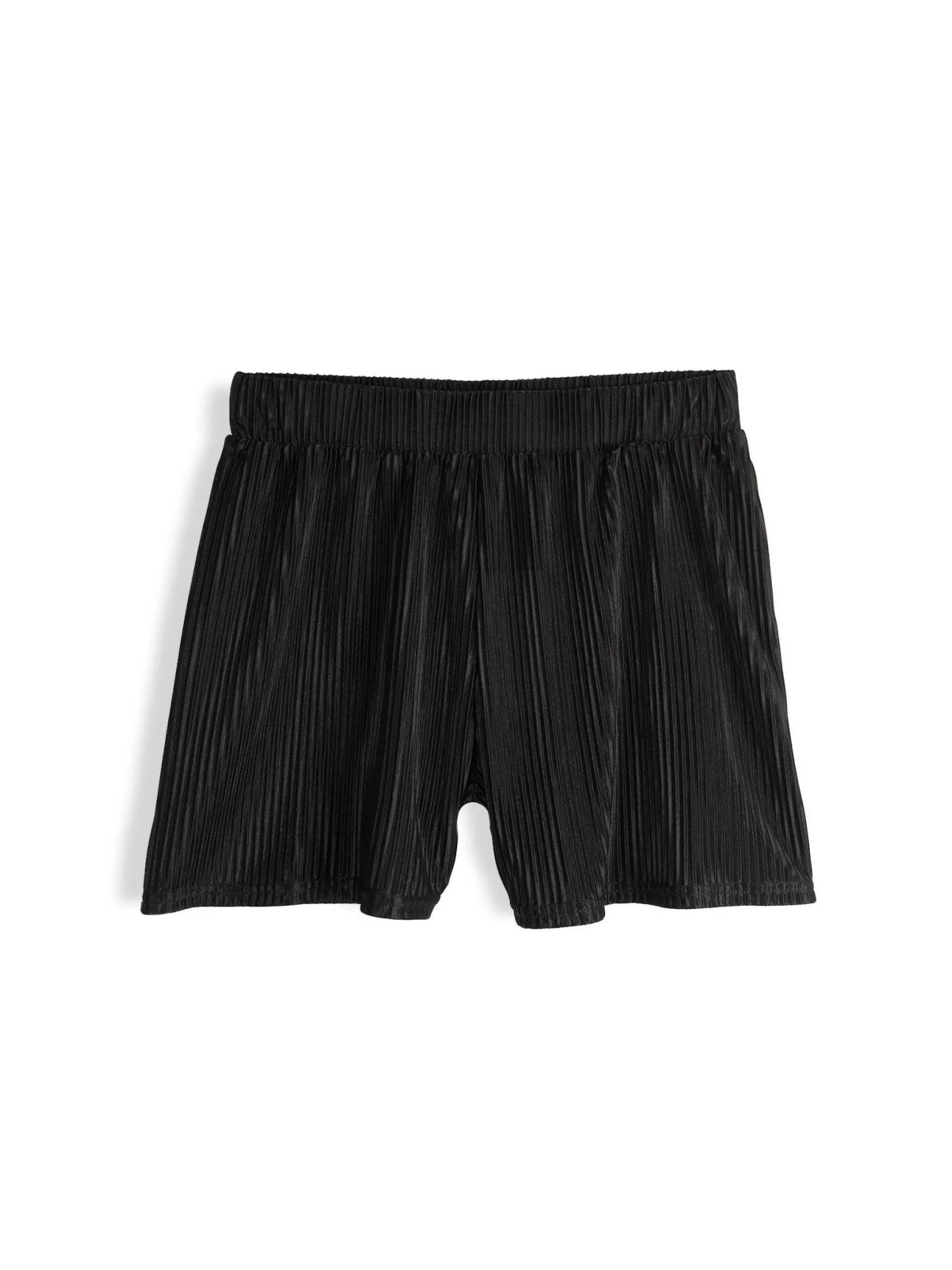 Kolor: czarnyKrój: straightTyp: spodenkiDługość: krótkiPattern style: pojedynczy kolor, żebrowanyDetal: z elastycz…