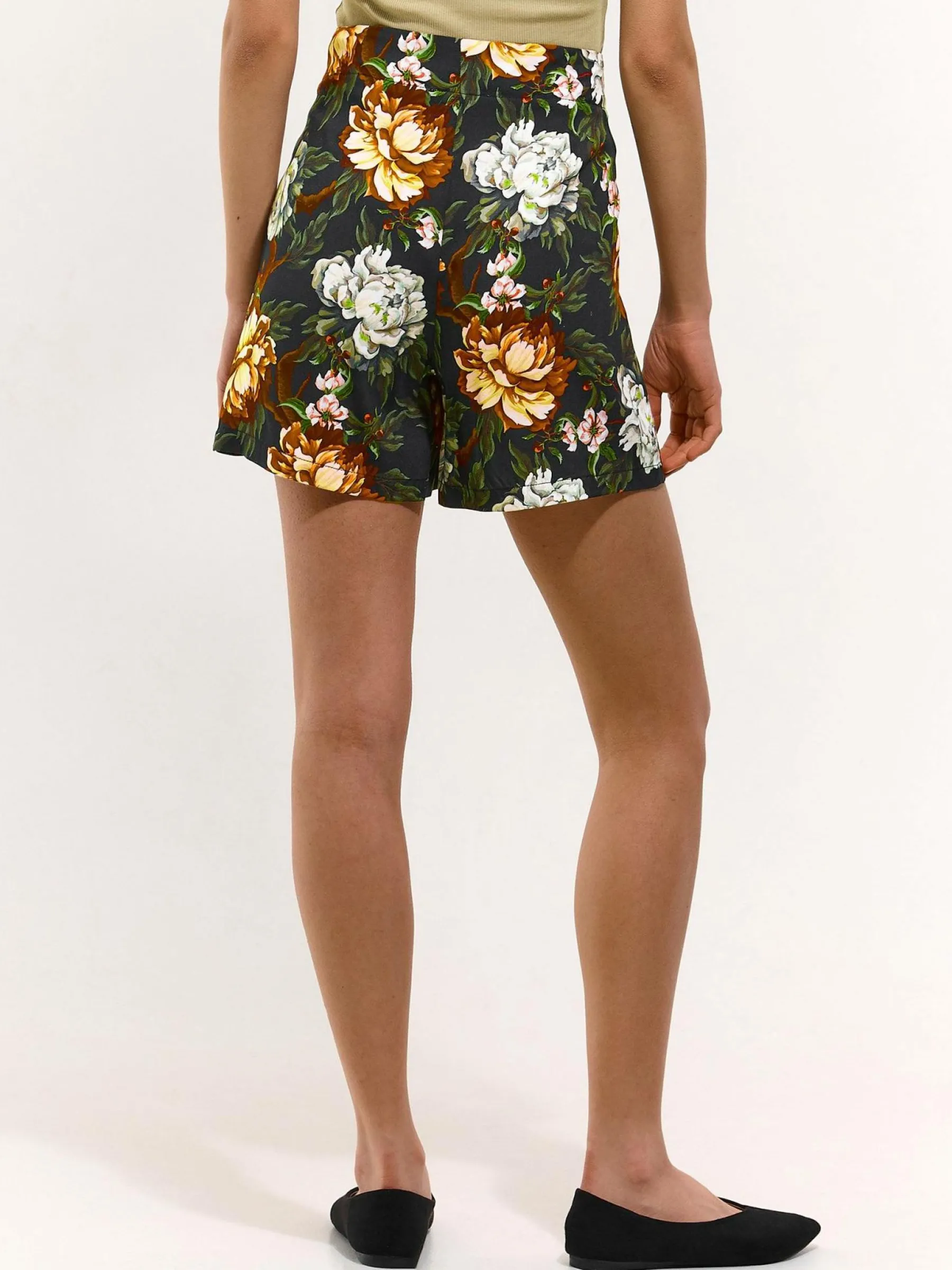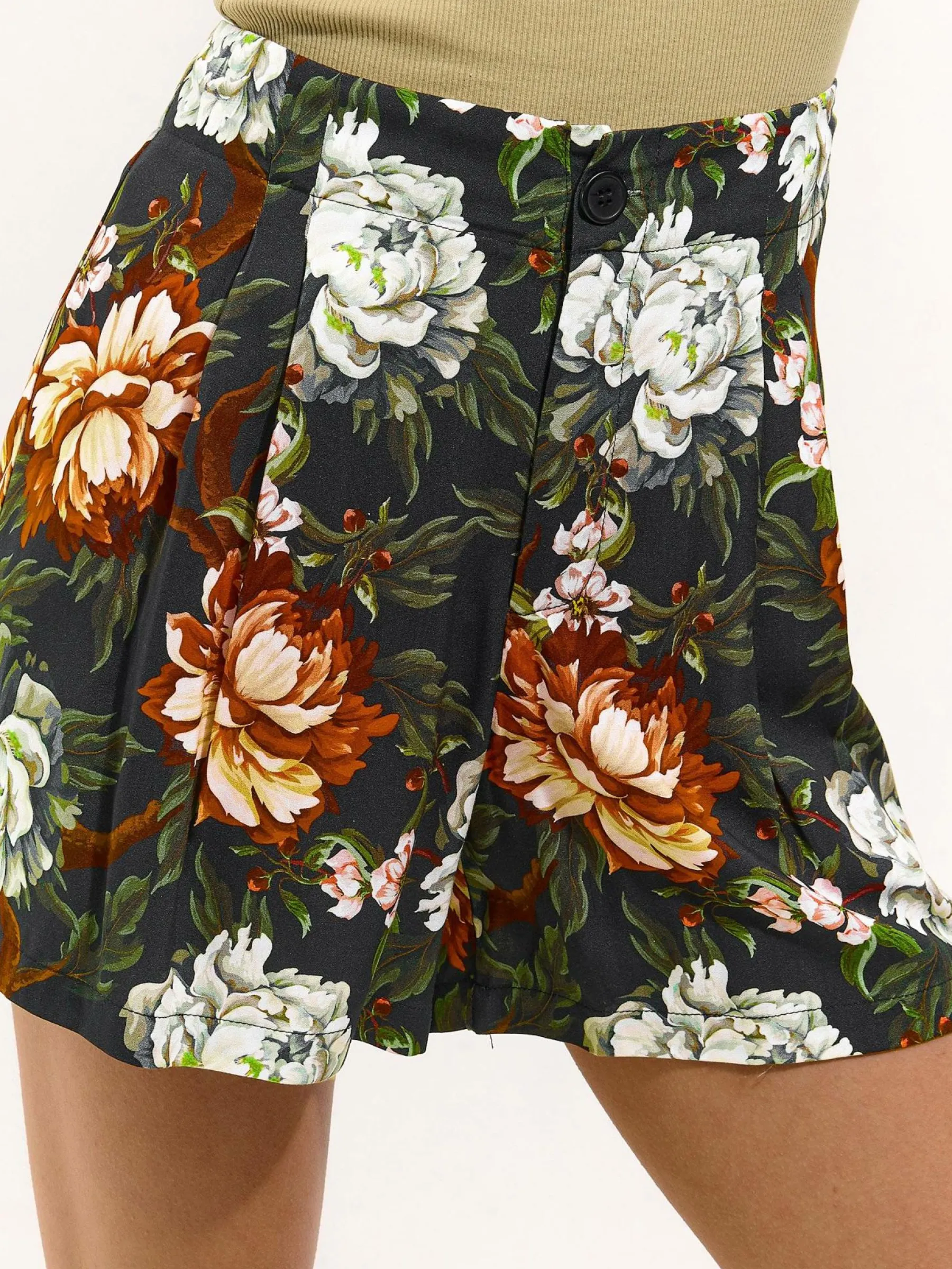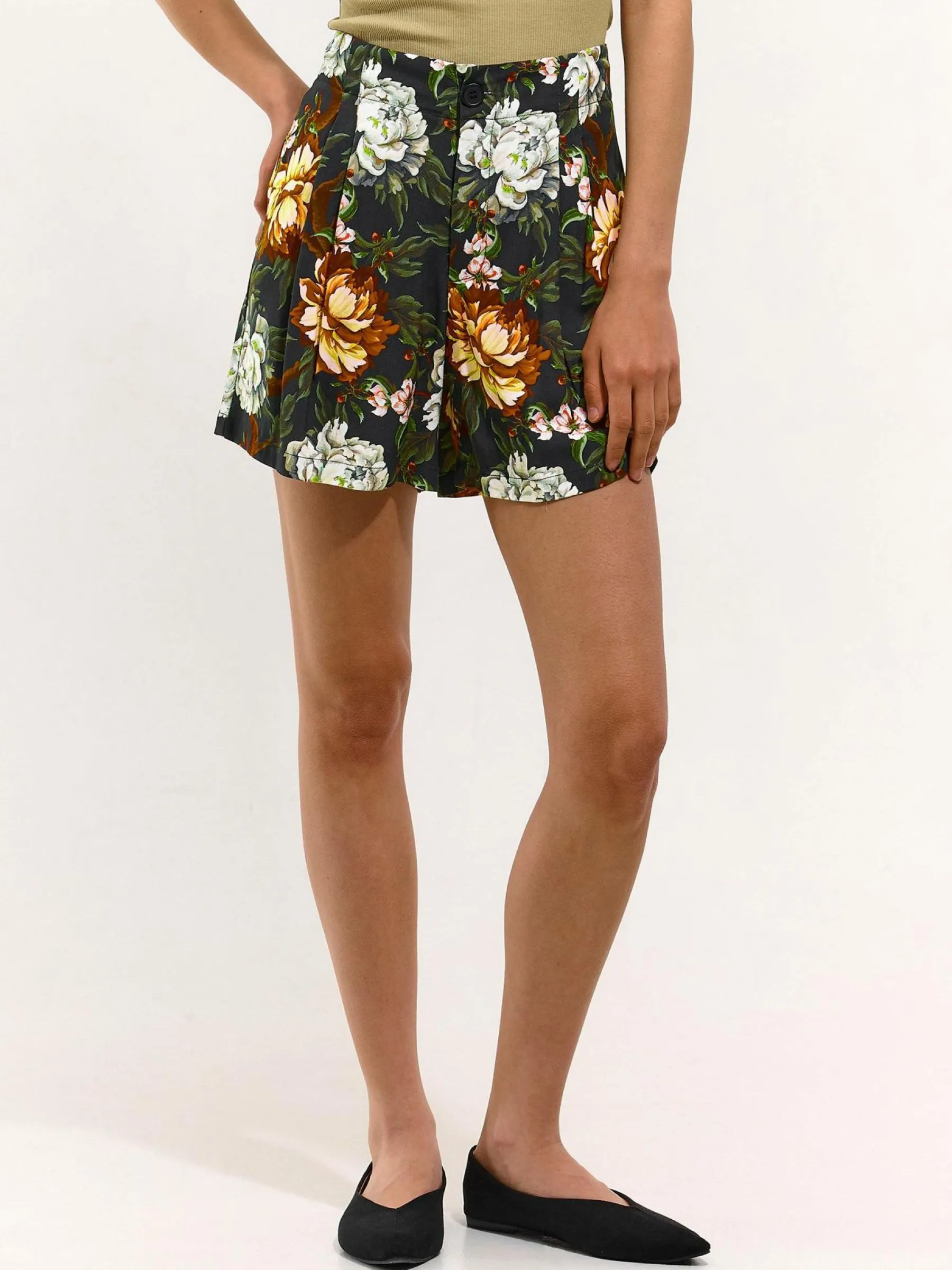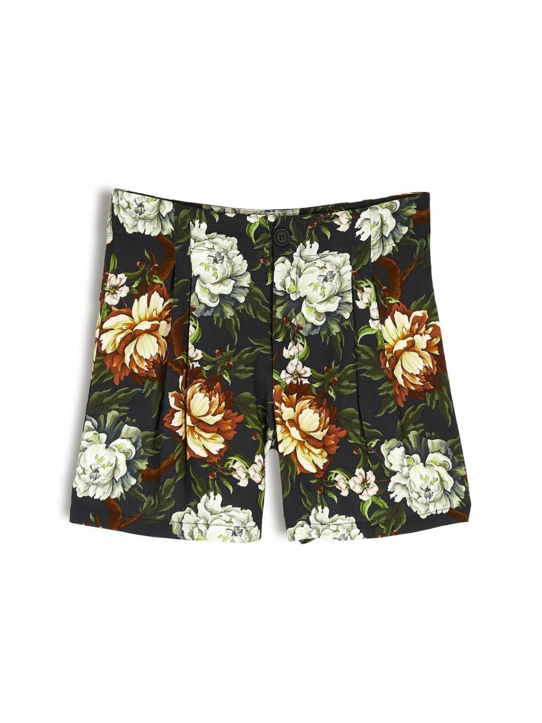 Kolor: czarnyKrój: z wysokim stanemTyp: spodenkiDługość: krótkiPattern style: z nadrukiem, kwiatoweDetal: na zamekM…
