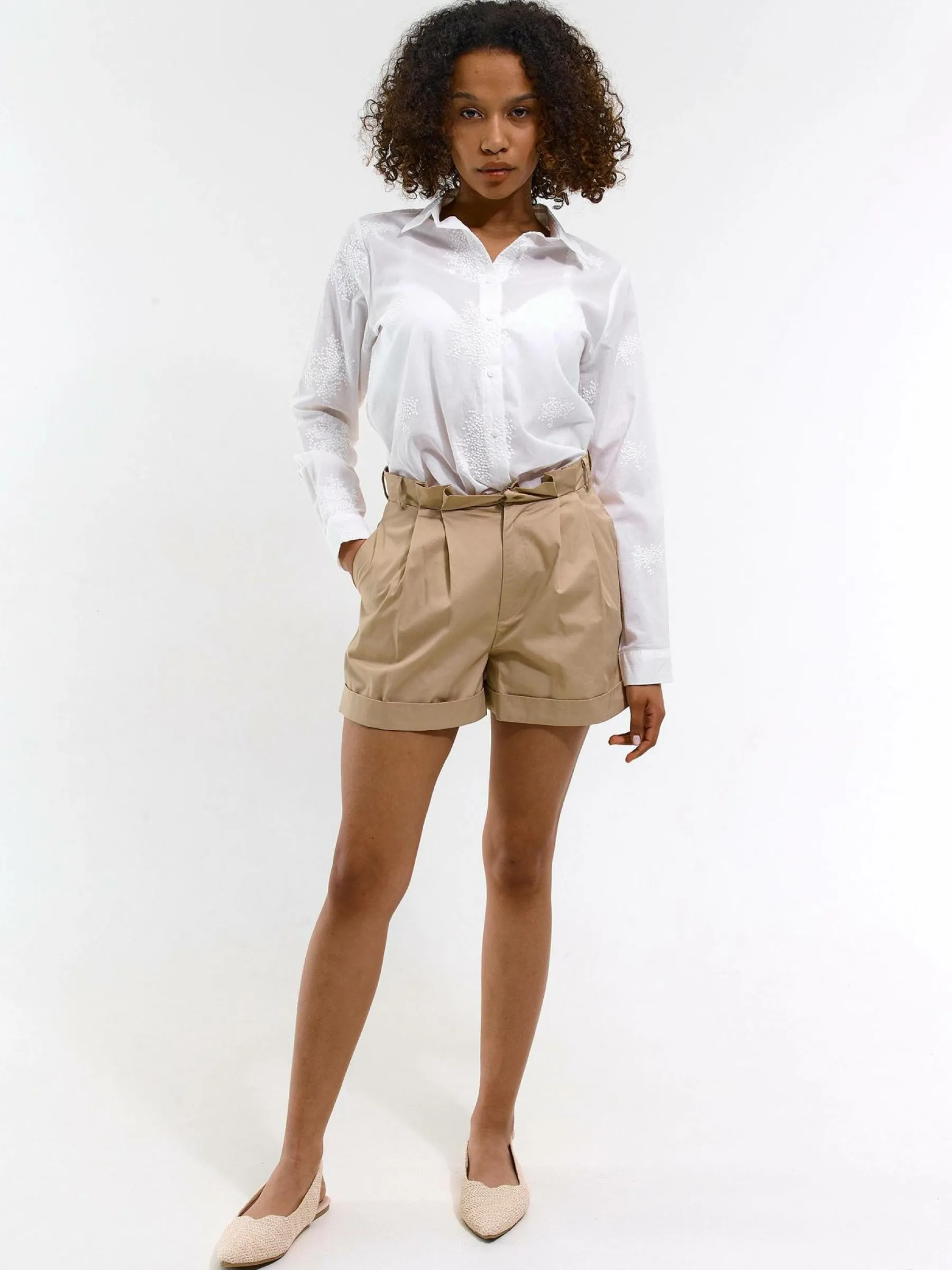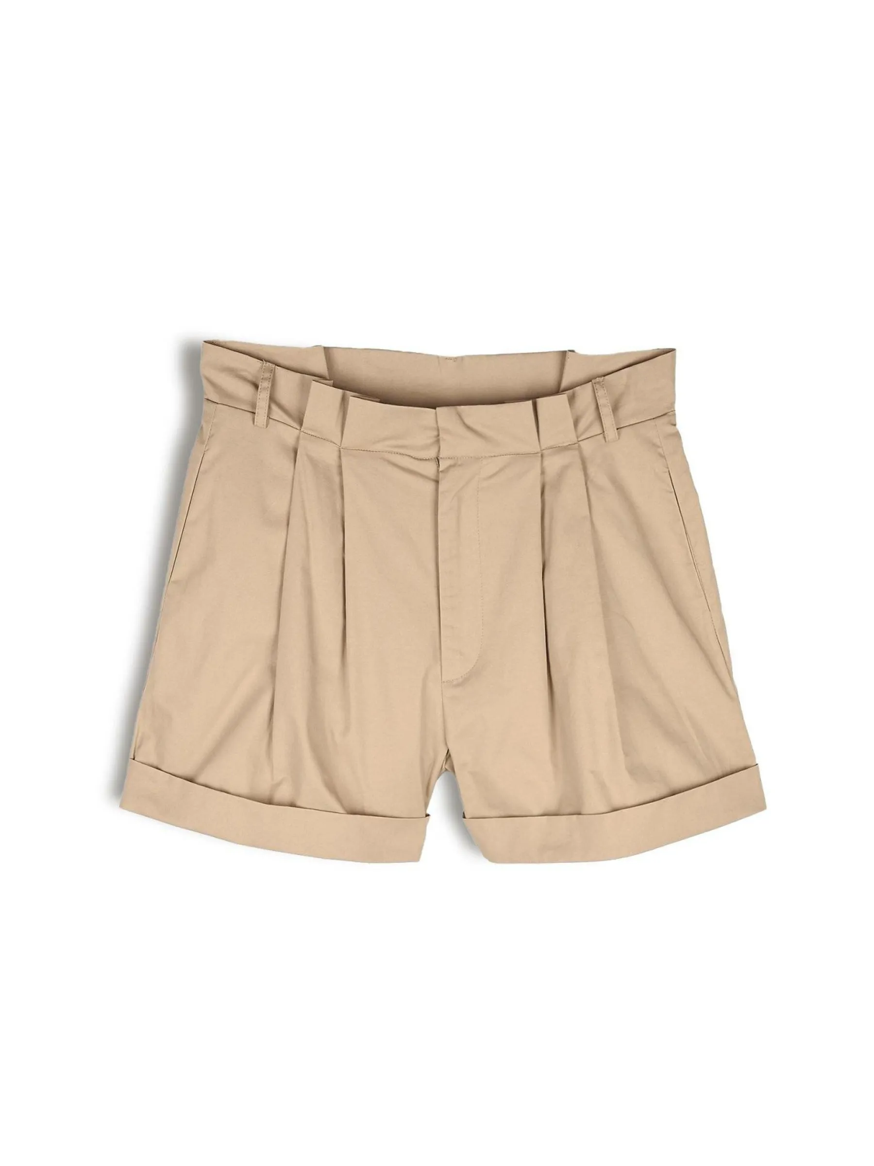 Kolor: beżowy, brązowyKrój: straightTyp: spodenkiDługość: krótkiPattern style: pojedynczy kolorDetal: na zamek, z…
